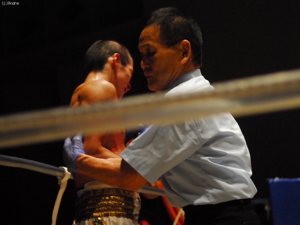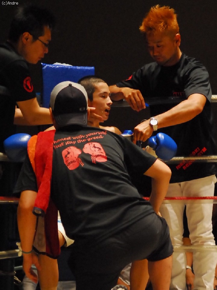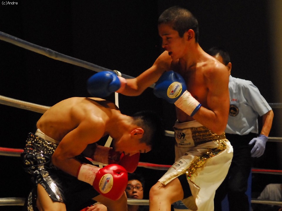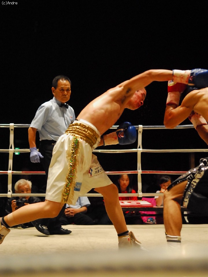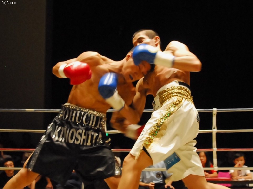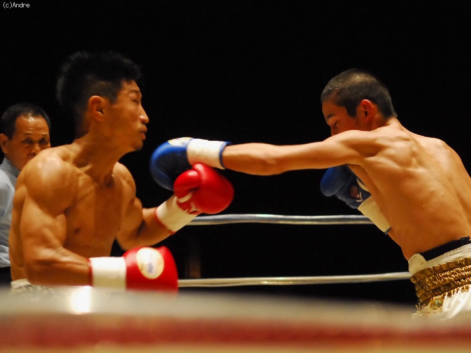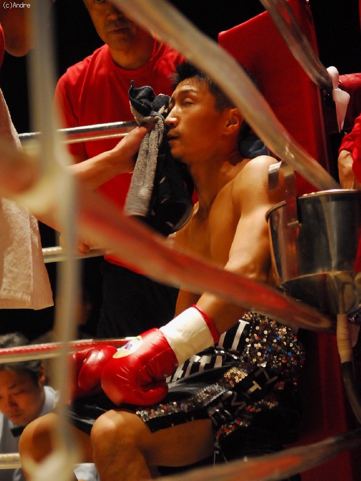 試合:スピードのある両者。上久保は足を使いジャブで距離をはかると左ボディをあてる。対して、東洋太平洋ランカーの大内は上久保の打ち終わりに右のオーバーハンドで応戦する。3R、大内の右ストレートが決まり上久保は膝を揺らすもこのラウンドを凌ぐ。4R終盤、逆に上久保の放った右アッパーが決まり大内の膝が揺れるもここは大内が距離を詰めラウンドをしのぐ。すると7R終盤、大内の右がヒット、上久保がロープを背にするとラッシュを仕掛けレフェリーストップを呼び込む。