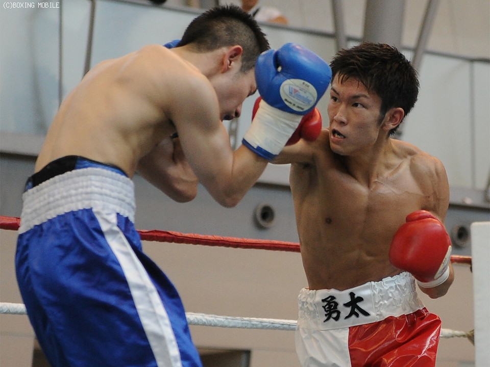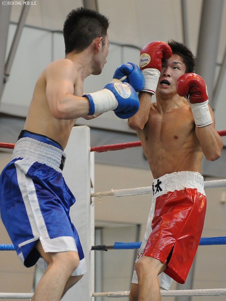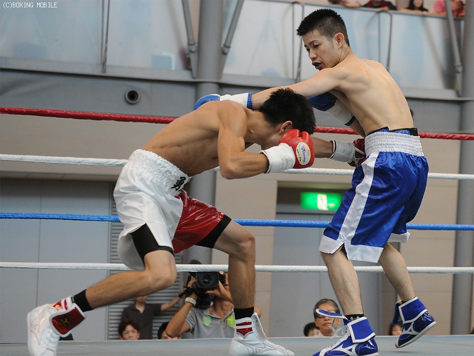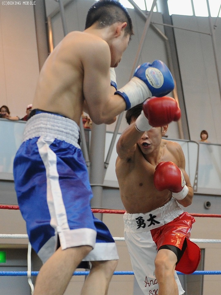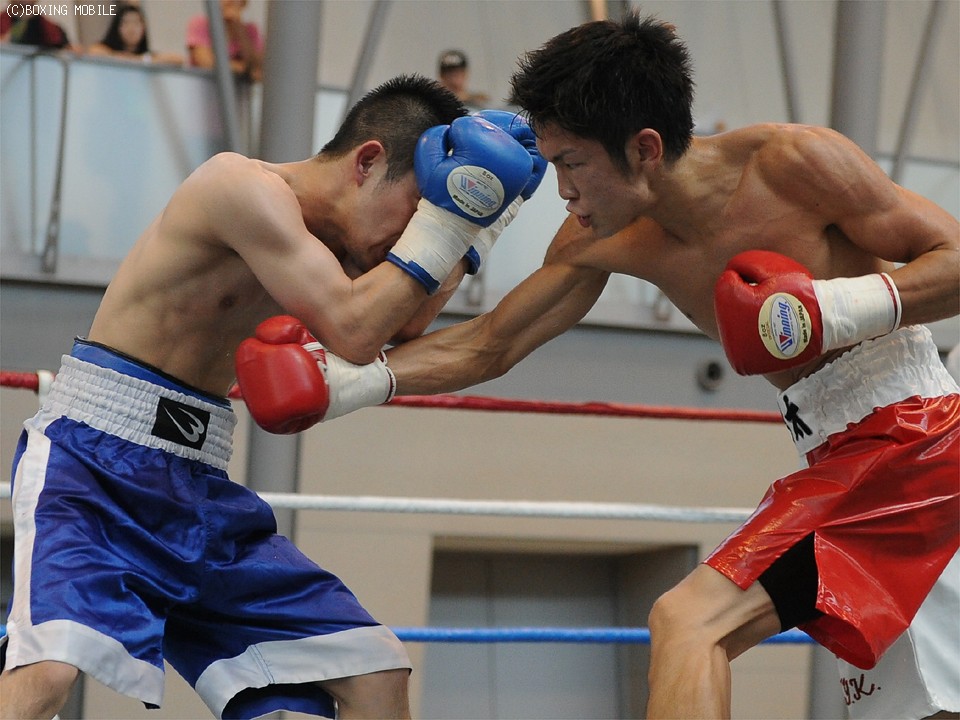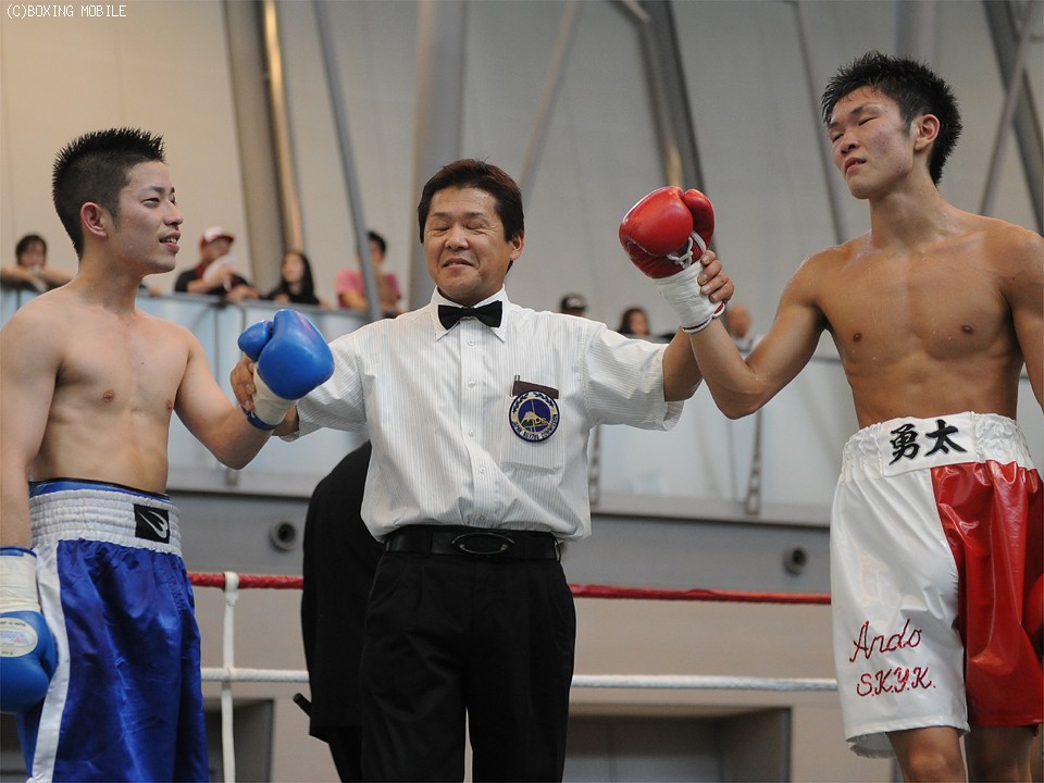 試合:ジャブからの繋がりが良い安藤が立ち上がりのペースを握る。右を狙いすぎの感のある矢成も左での入り方を変えてはプレスをかけ、3Rにはカウンターで流れを引き寄せたが、決定的なチャンスは作れず。最終R、勝負を掛けたい両者だが、見すぎてしまい手数が足りず。結果はドローながら、安藤が優勢点をものにした。