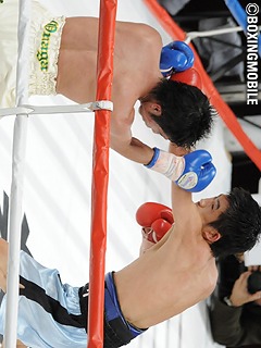 試合:序盤、鄭がワンツーで攻めるが頭から入る事が多い。翁長は鄭の攻めをサイドに捌きながら、左右ボディ・ワンツーフックをヒットさせる。中盤、鄭のバッティングで翁長が左側頭部をカット。鄭は度々頭から入ってしまい、5Rにバッティングで減点1。翁長は左右ボディ・左アッパーで攻め込むも、6Rに頭部負傷が悪化し試合はストップ。判定3-0で翁長が勝利した。