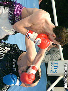 試合:世界ランク4位18戦無敗のサーシャ・バクティンに挑むは、日本同級1位・元日本ライトフライ級王者の本田秀伸。試合は世界挑戦の経験もあるサウスポー本田が、序盤からサーシャ得意の高速ジャブを受けてしまい、中に入ったところに右ストレートを当てられるなど苦しい立ち上がり。3Rにはサーシャの連打で赤コーナーに釘付けにされてしまう。4R、本田もジャブから上下にパンチをまとめるが、今や世界トップレベルのスピードと技術を持つサーシャにはやはり及ばず。その後はサーシャ有利の展開が続き、7Rにサーシャの右ストレートが入り本田はダウン。レフェリーがカウントを数える中、これ以上危険と見た本田陣営がタオルを投入した。