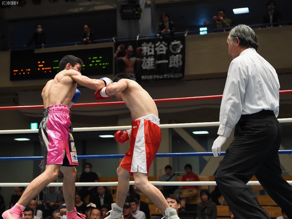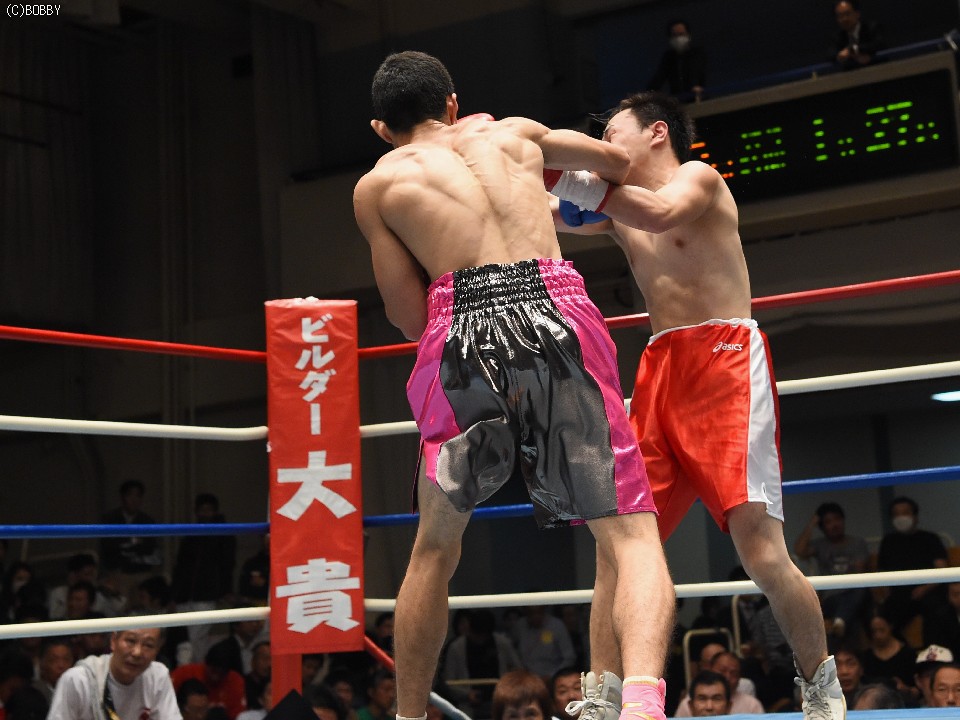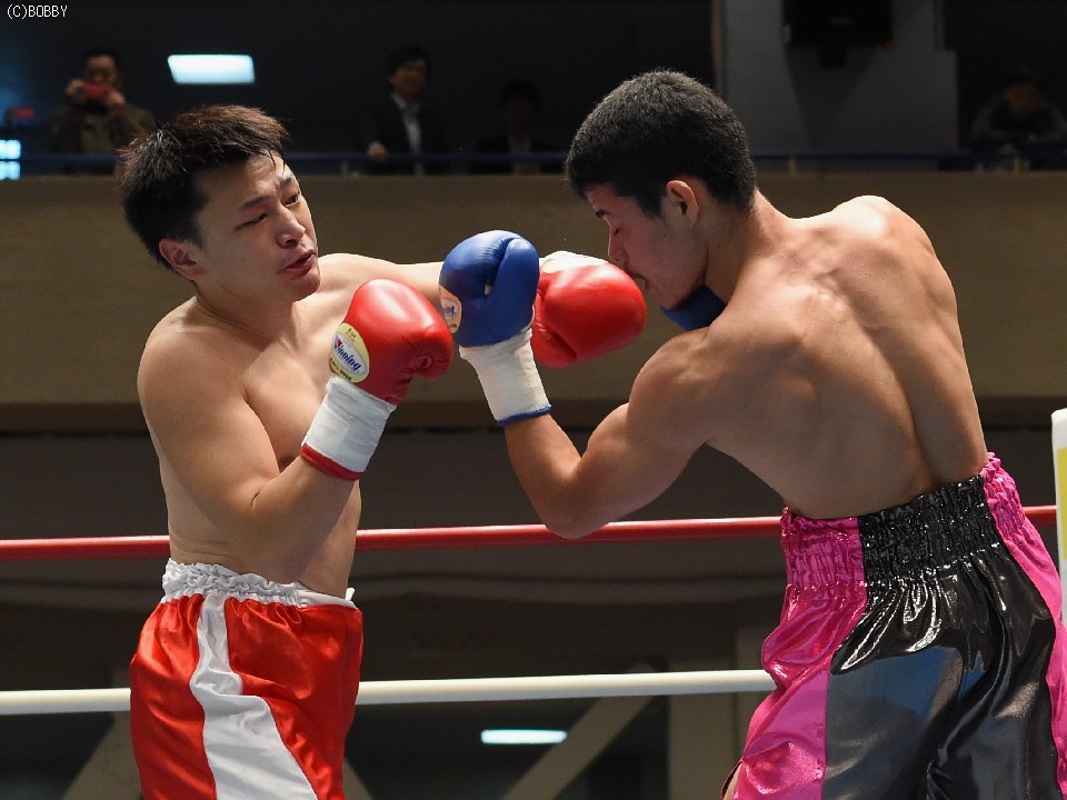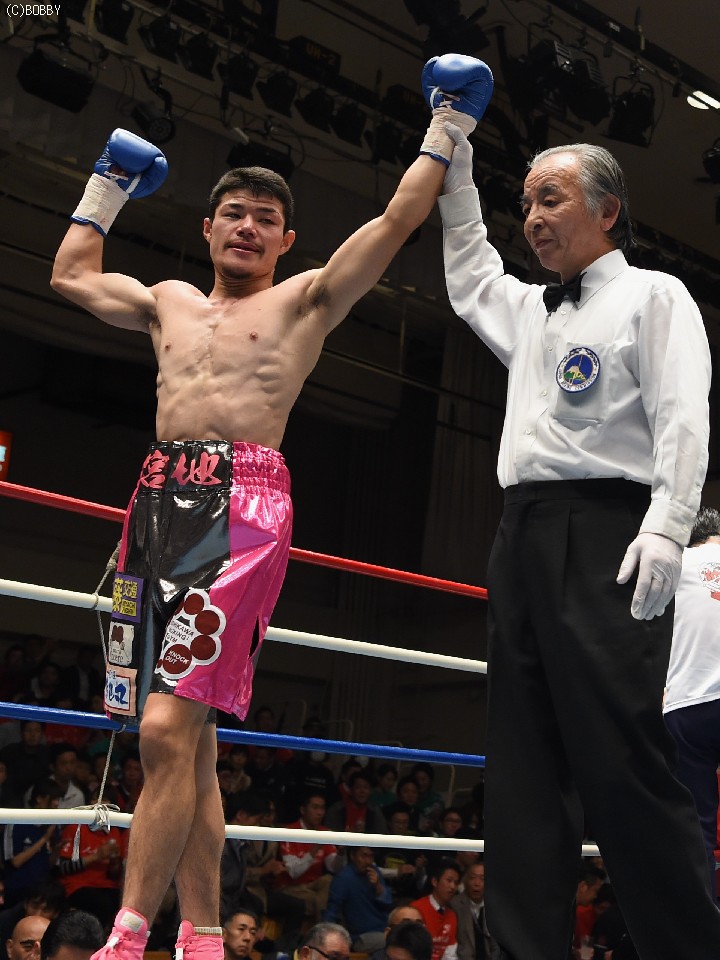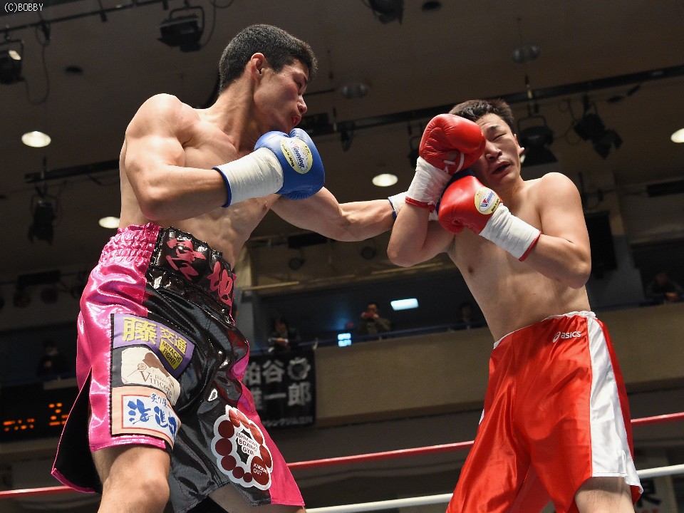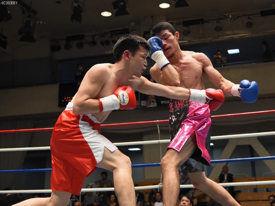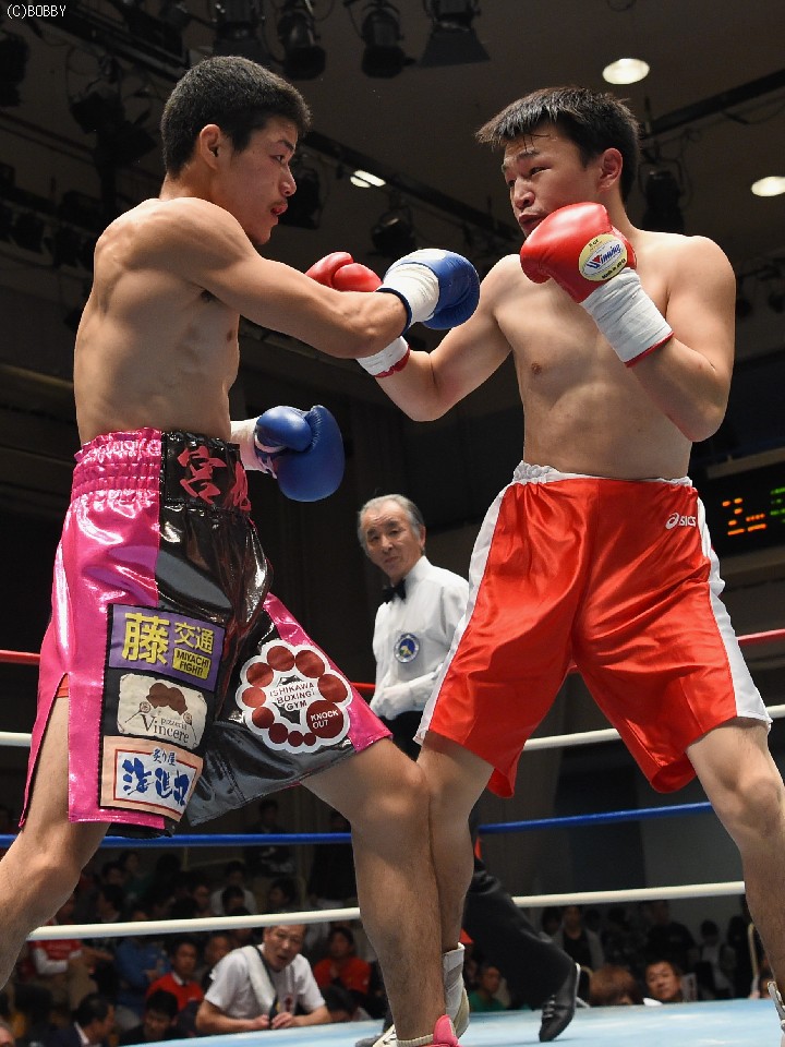 試合:サウスポー佐藤が前進してワンツーを繰り出すが、宮地の冷静な対処にパンチは空を切ってしまう。2R、宮地のワンツーが当たるが、佐藤も負けん気の強さを発揮して打ち返す。3R、中間の距離でのパンチの交換となるが、宮地のパンチが正確さで上回りダメージを与えていく。1分30秒を過ぎた頃、宮地の右ストレートが顔を弾くと一気に詰めて最後は左フックでフィニッシュに持ち込んだ。