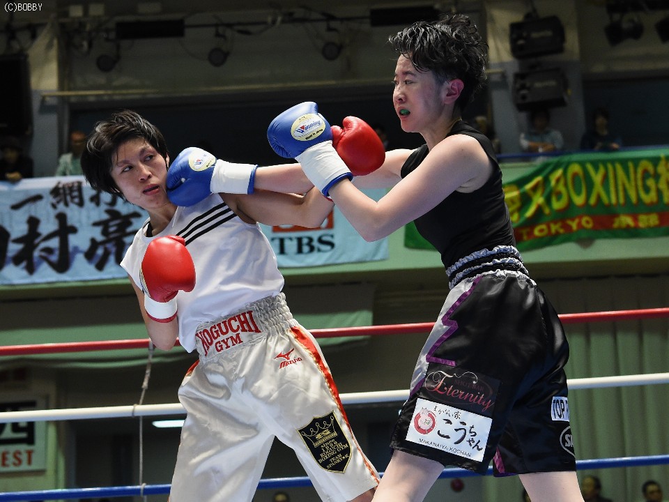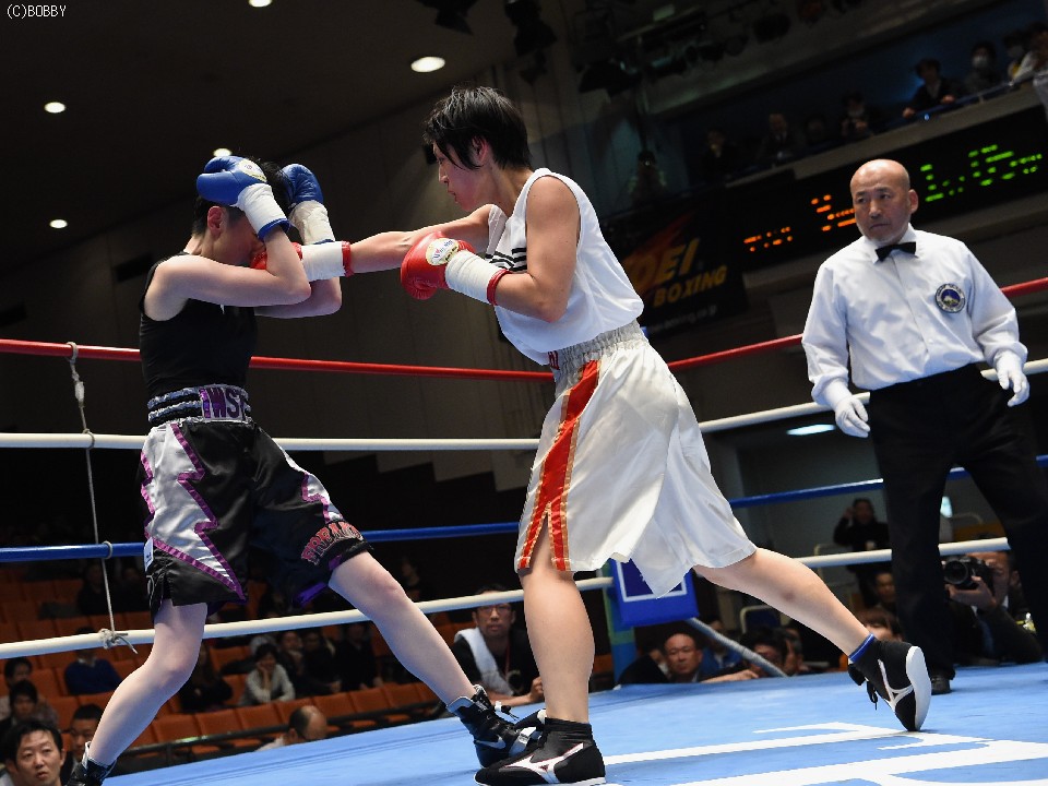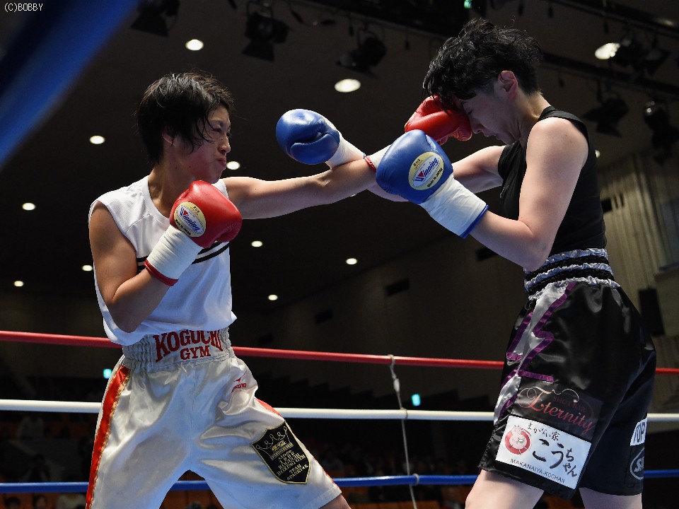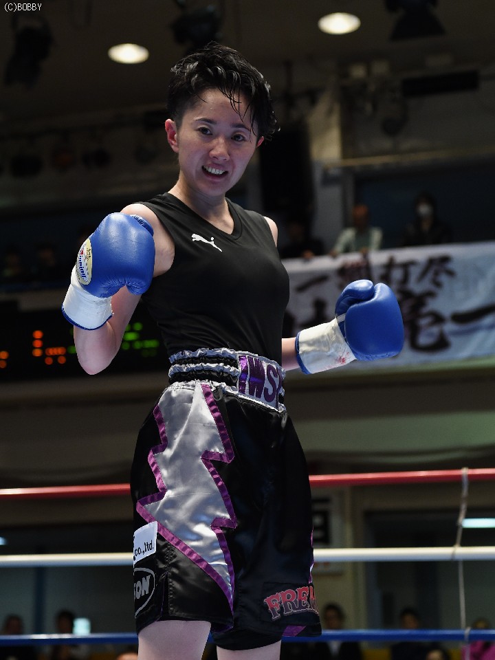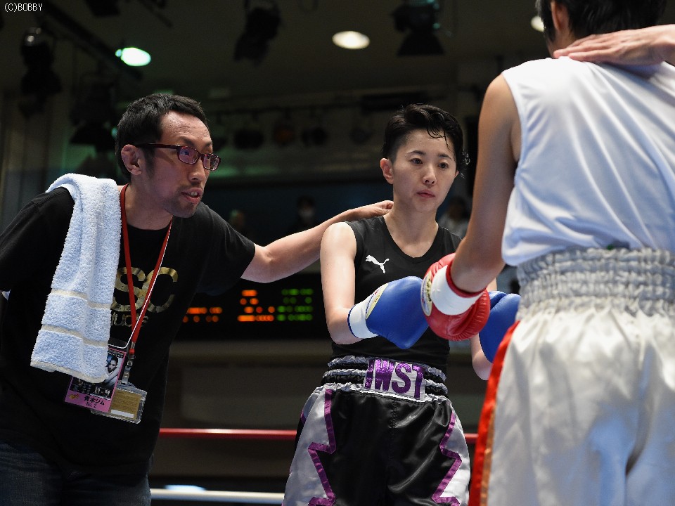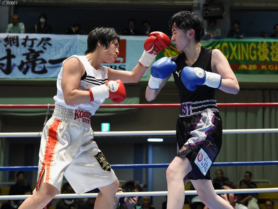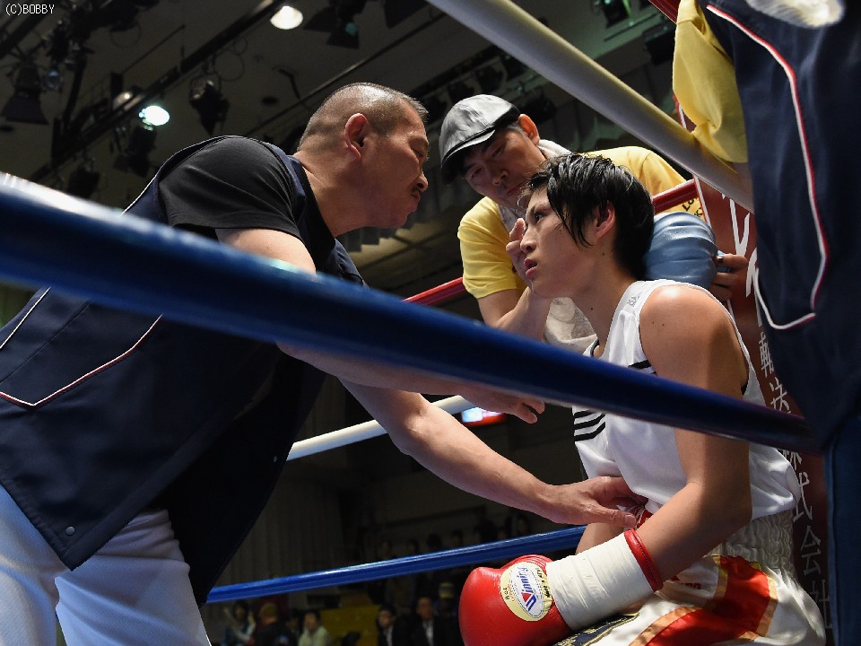 試合:デビュー戦の川村が前に出てのワンツーで先に仕掛ける。プレスに苦しむ岩下も距離を取ってはジャブを突き攻撃を断ち切ると、2Rには右ストレートを合わせ徐々にリズムを取り戻した。後半は果敢に打ち合いワンツーで押し返し、ポイント勝ち。