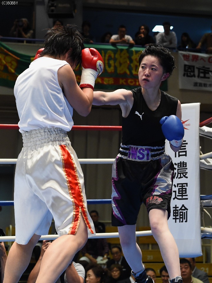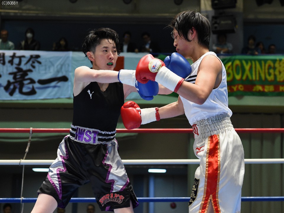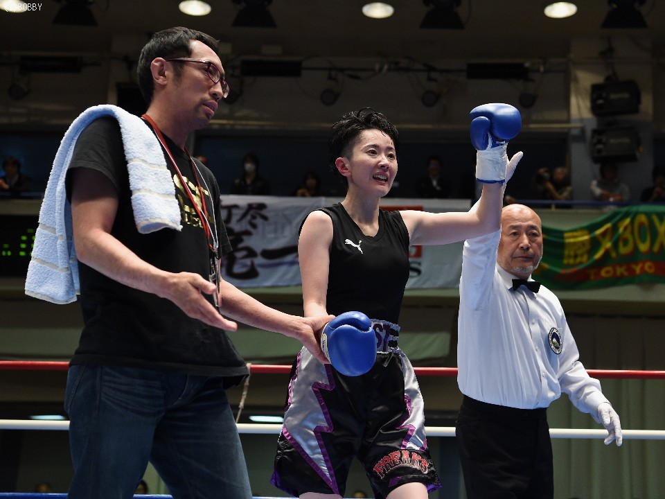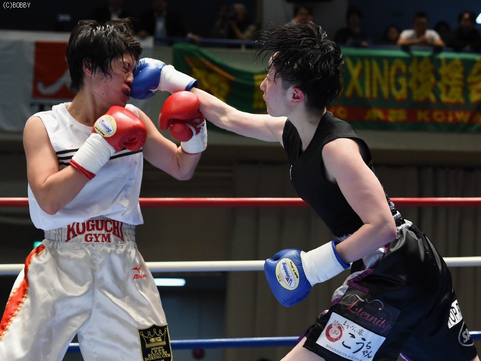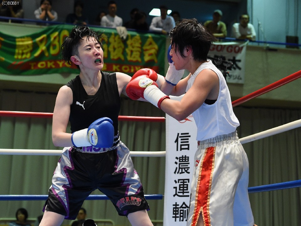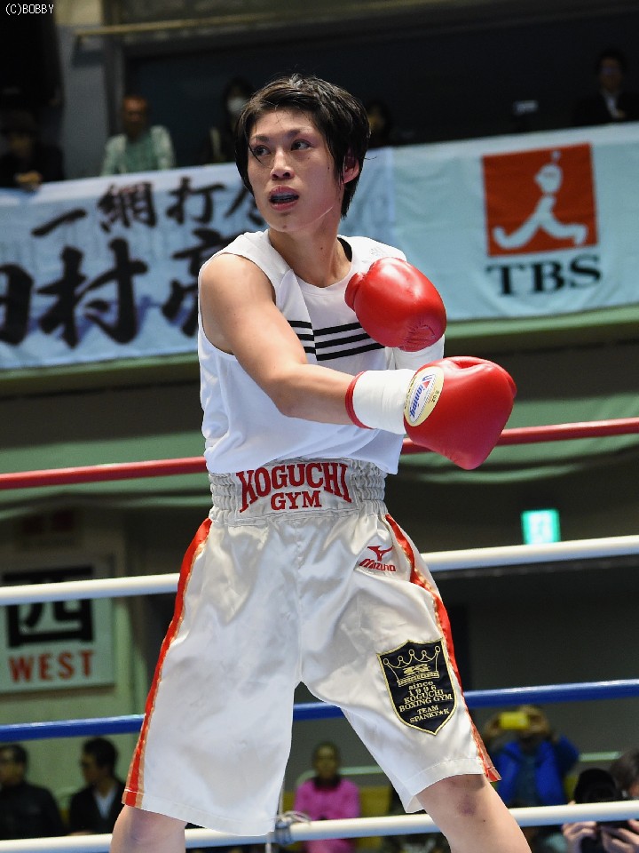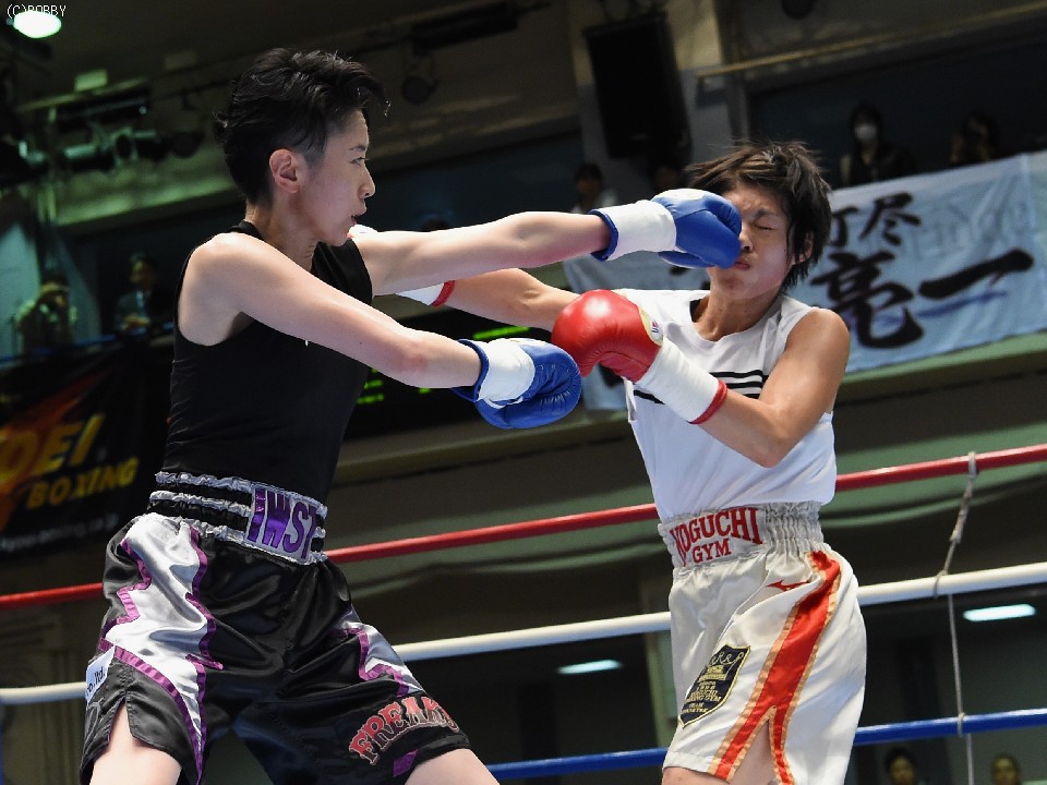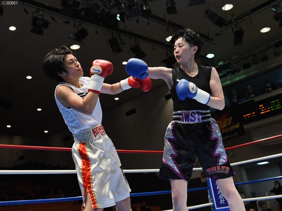 試合:デビュー戦の川村が前に出てのワンツーで先に仕掛ける。プレスに苦しむ岩下も距離を取ってはジャブを突き攻撃を断ち切ると、2Rには右ストレートを合わせ徐々にリズムを取り戻した。後半は果敢に打ち合いワンツーで押し返し、ポイント勝ち。