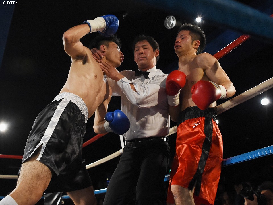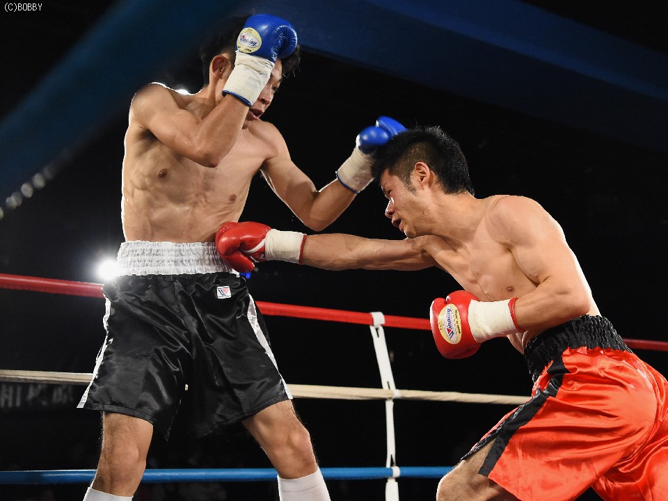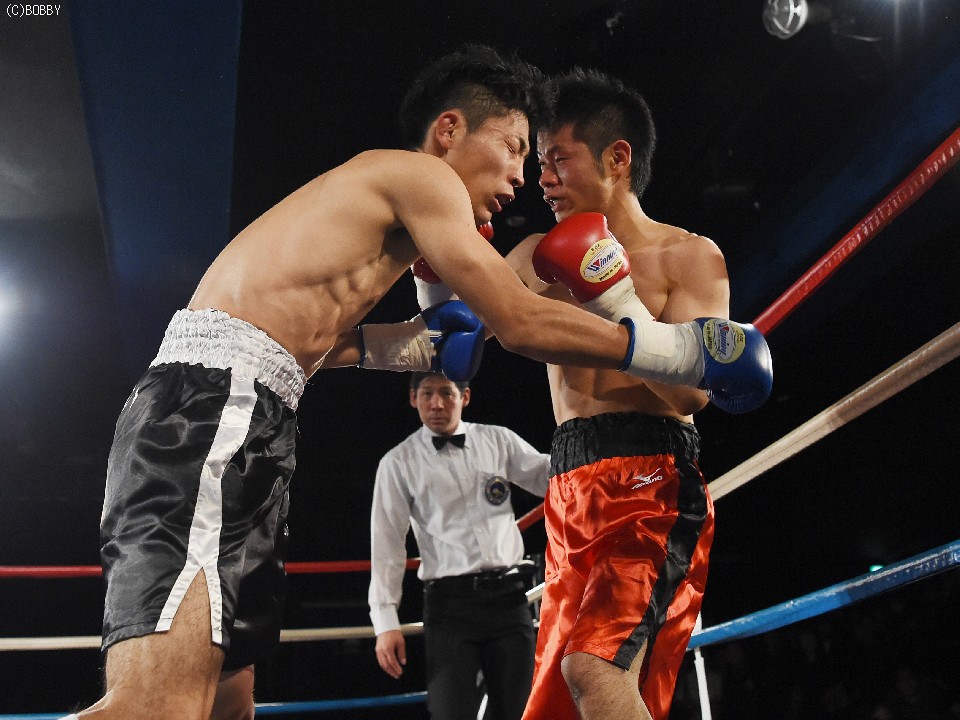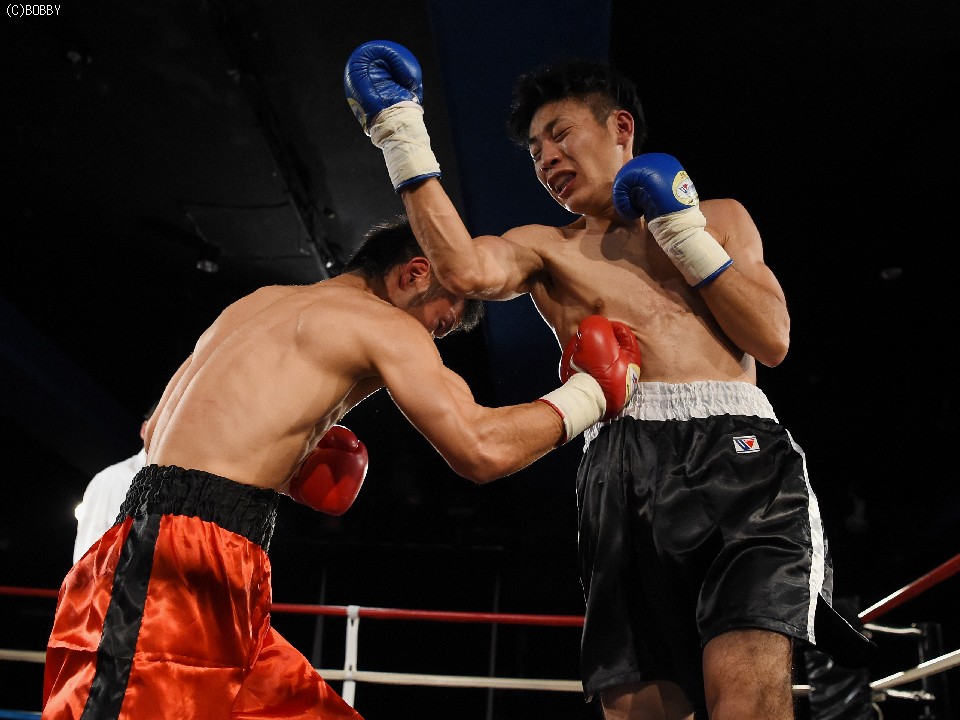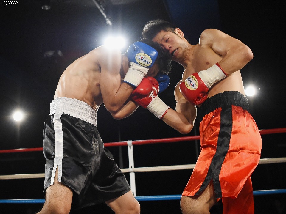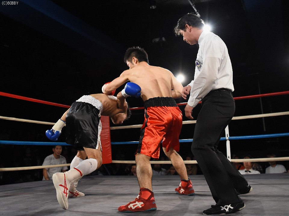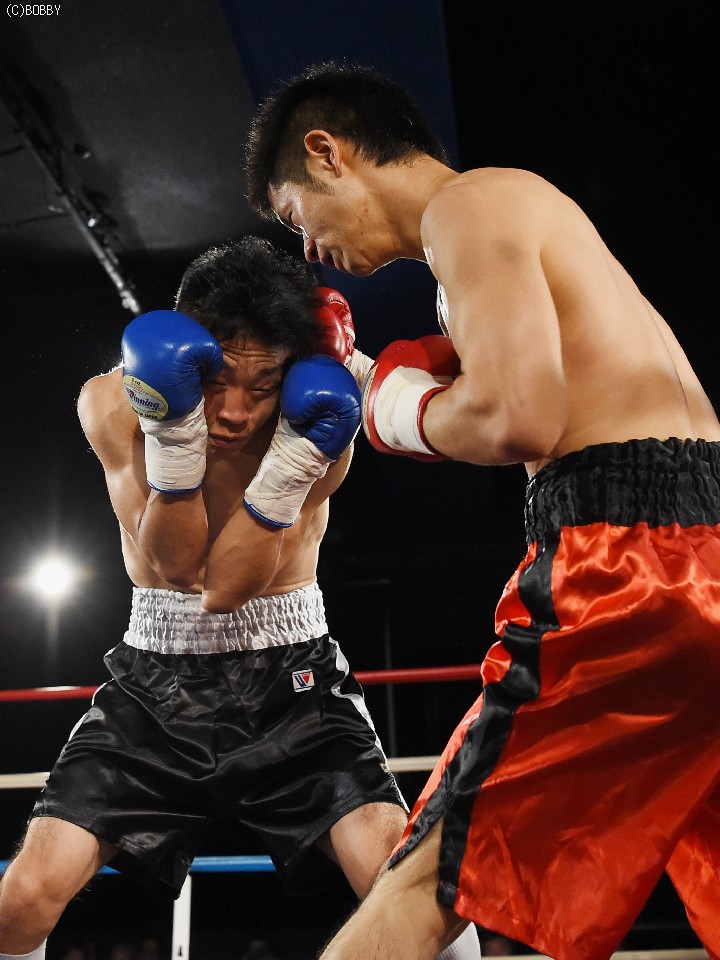 試合:前に出てジャブとアッパーから仕掛ける鈴木に対して身長で勝る小川は2R、右フックを受けてバランスを崩すが追撃を逃れた。マウスピースを入れ直した小川だが鈴木の右を顔面に受けると腰から砕けてレフェリーが試合を止めた。