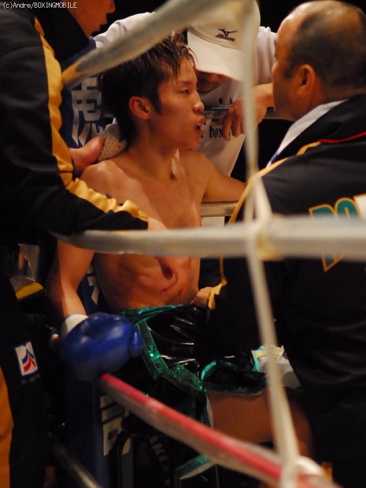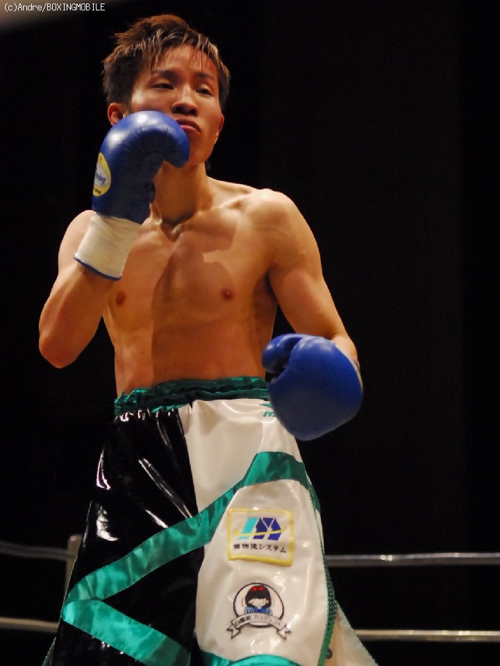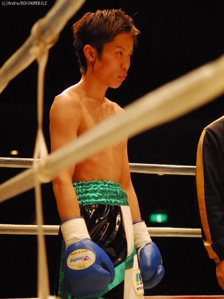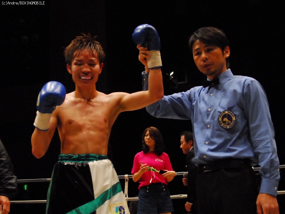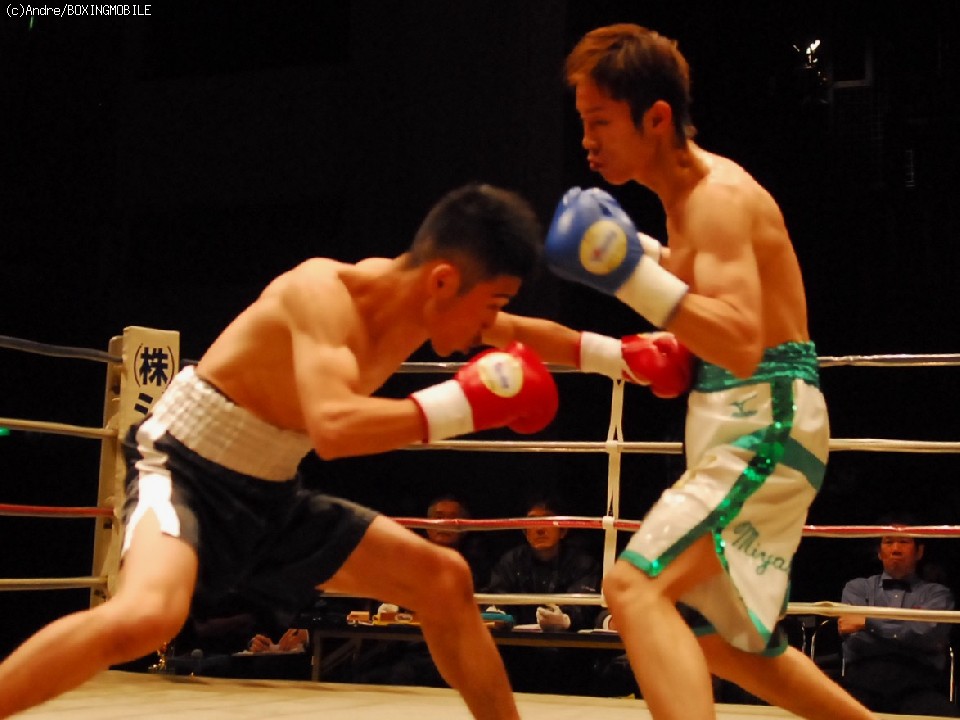 試合: 岡は踏み込んでワンツーをあてていく。対して、寺田は接近すると左ジャブから左フックで応戦。ラウンドの前半岡が攻勢をかけるが後半は寺田の手数が勝る。最終ラウンド、両者頭おつけて打ちあうも決定打には恵まれず、判定で寺田が勝利。