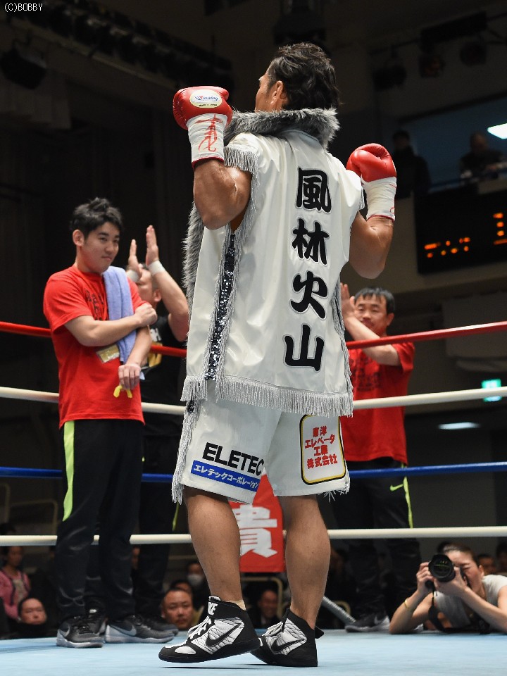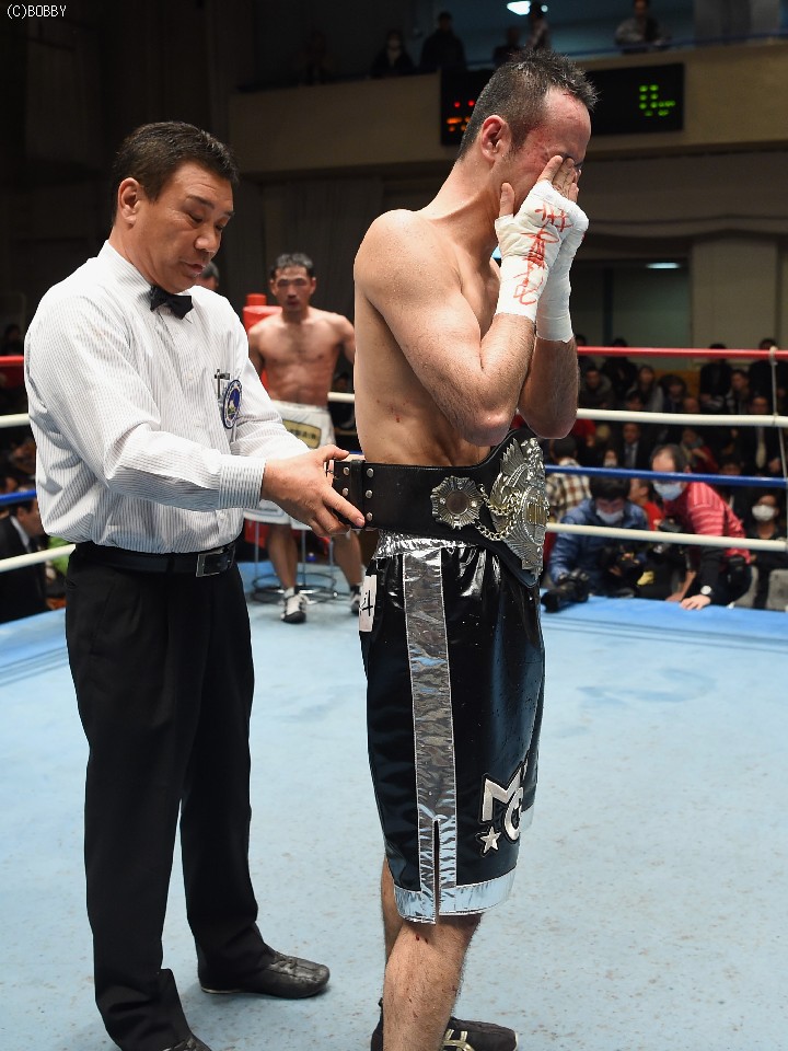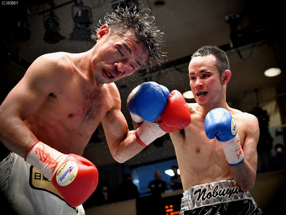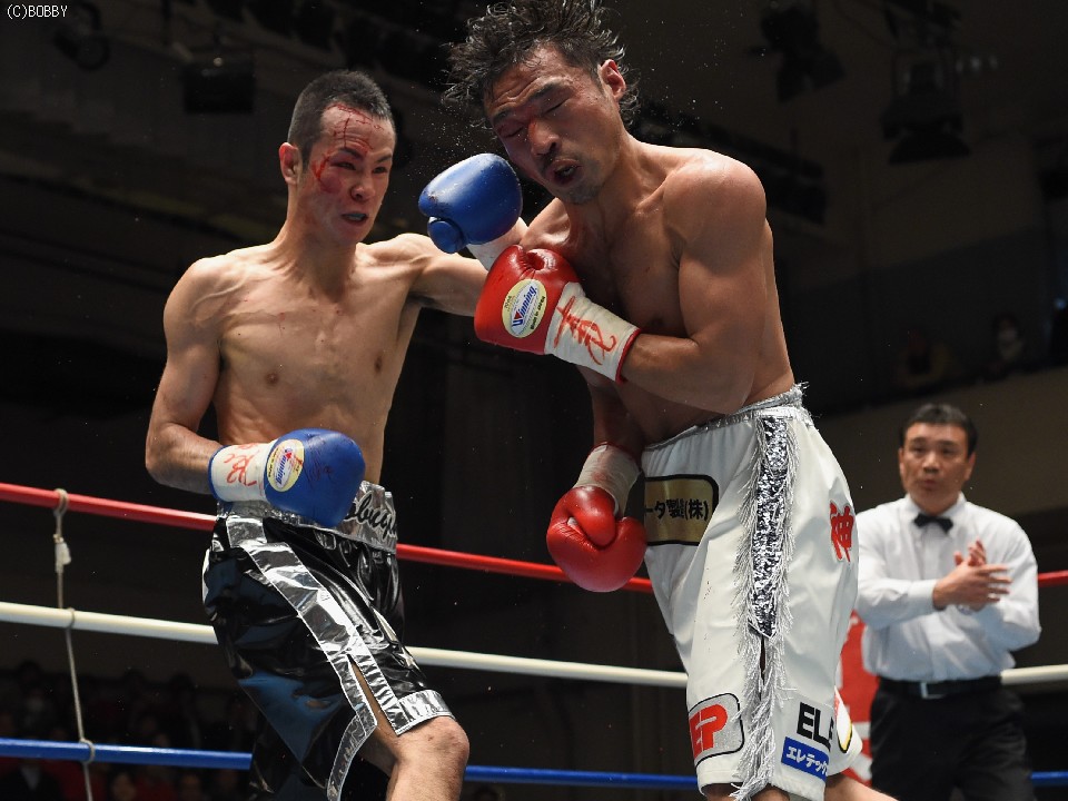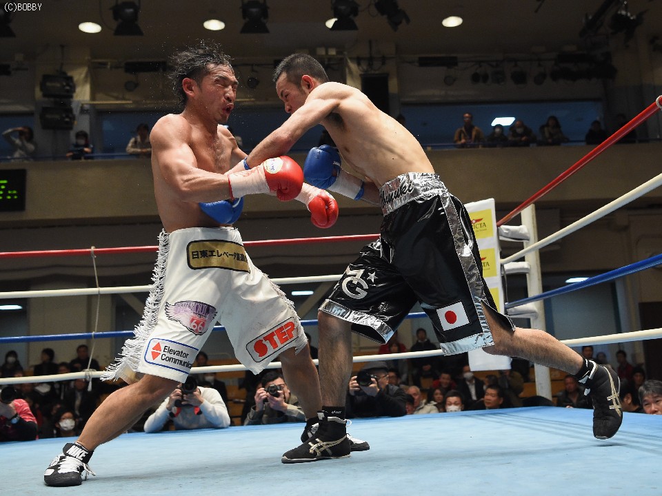 試合:タイトル初挑戦の大川と2度目の挑戦となるサウスポー新藤の王座決定戦。割れんばかりの歓声でリングインした両者は、大川がゴングと同時に低い姿勢で飛び出しスタート。長身の新藤の懐を早くも脅かし、右へと繋げた。新藤も圧されながら長い腕を折りたたみコンパクトな左右を繰り出したが、勢いはブランクからの再起後、5連勝中の大川。2Rには右ボディ、ジャブの連打で新藤のバランスを崩した。新藤も3Rには丁寧にジャブを突き、打ち終わりを狙い左を合わせるが、流れを引き寄せるには至らず。新藤がポイントを取りに出た4Rには両者の頭が当たり、大川は右目上を新藤は頭部を負傷。新藤は接近戦を避け、再び距離を取り始めたが、大川はこれを許さず。ロープを背負わせてはボディにダメージを与えた。5R終了時の採点は、1者が49-46で大川、2者が49-47、49-46と新藤を支持し折り返した。この採点を聞いて動きに精彩さが増した新藤だが、大川もしつこく追い続け、後半は両者の意地が激突する壮絶な打ち合いに発展。しかし、終盤は気持ちで前へ前へと出る大川に対し、新藤の足が上回る。最終10R、大川の右が何度か新藤の顔面を捉え完全に腰を落すが、新藤も打ち返しダウンは回避。逃げ切りに成功した新藤が新チャンピオンに輝いた。