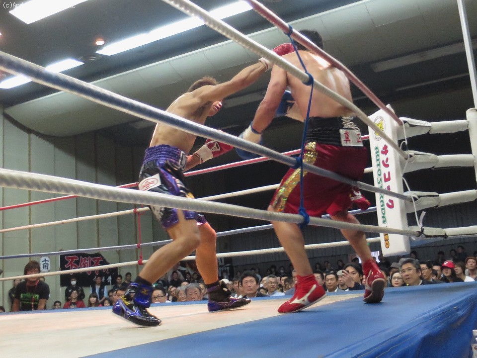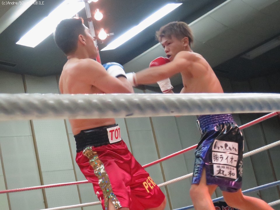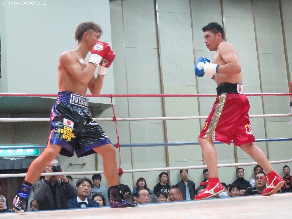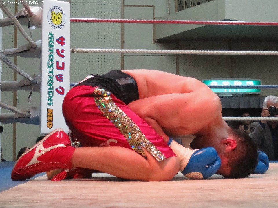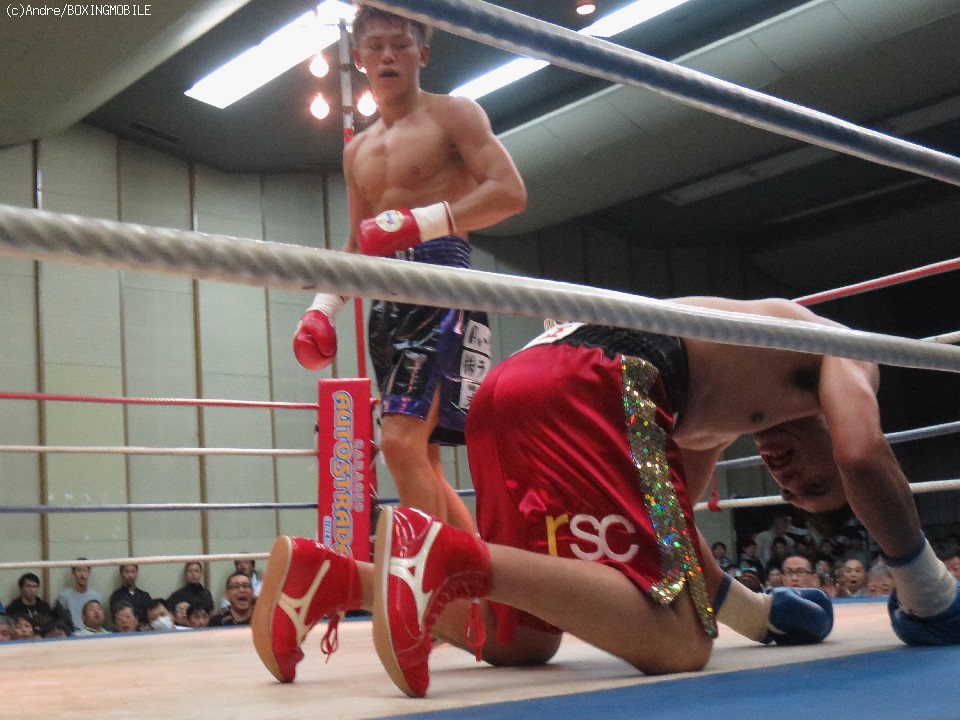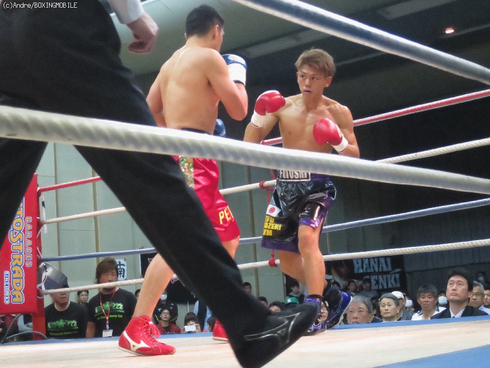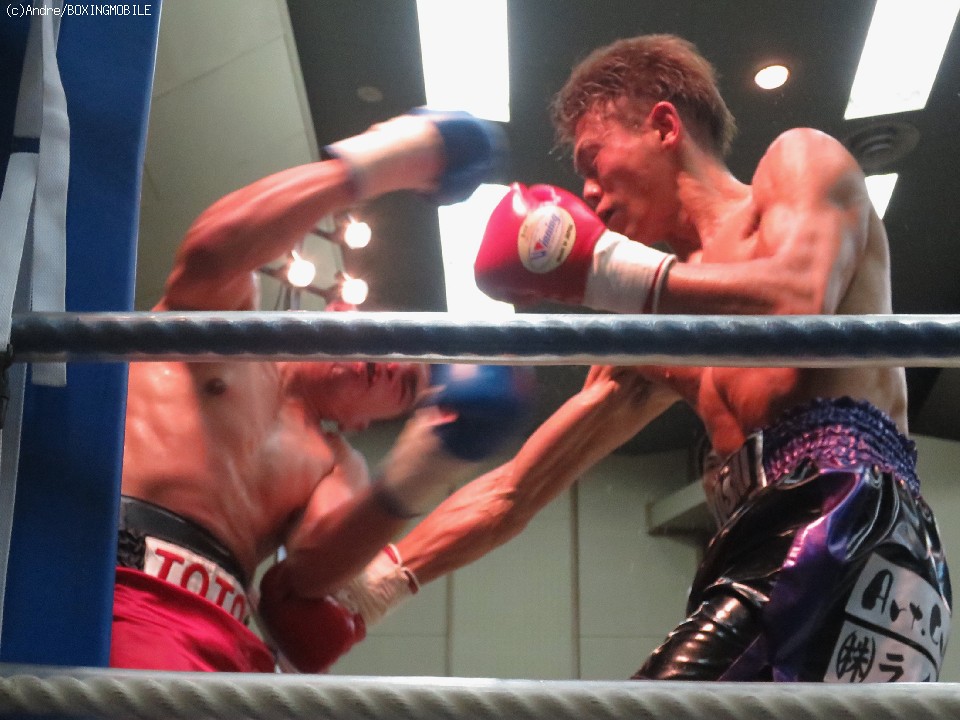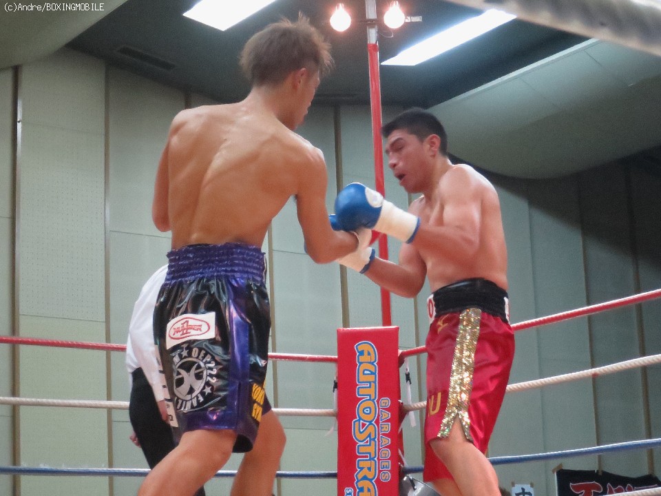 試合: 怪我から1年4ヶ月ぶりの復帰戦となった宇佐美は前に出る伊波の出端に右を合わせる。対して、伊波はジャブで宇佐美との距離をはかると踏み込んで右を振るう。中盤、パワーの伊波に対してスピード溢れるコンビネーションをあてる宇佐美がやや優勢に試合を進める。すると3ラウンド終盤、宇佐美のワンツーが決まり伊波が膝をおりダウン。立ち上がった伊波はゴングに救われる。しかし、6ラウンド、宇佐美の左ボディが伊波のレバーをえぐり伊波が再度ダウン。これ以上の試合続行は不可能とみた伊波陣営がタオルを投入。宇佐美は1年4ヶ月ぶりにTKOで復帰戦を飾る。
