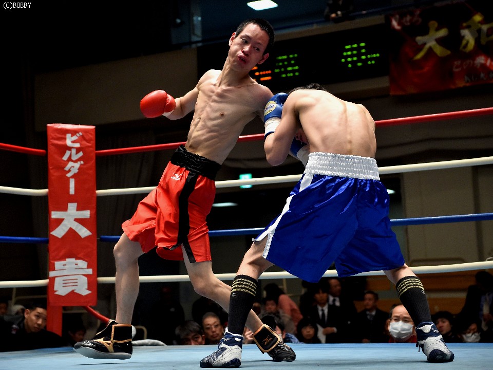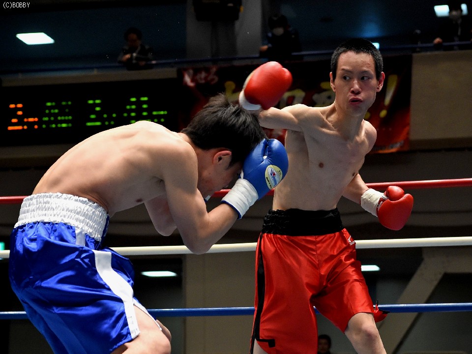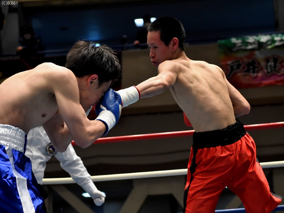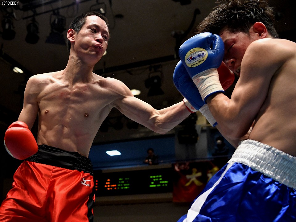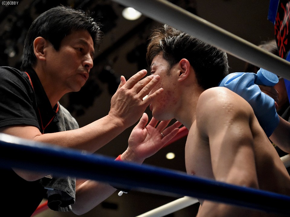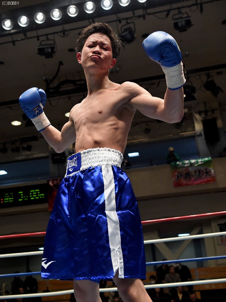 試合:ガードを固めた百田が突進するも、長身の篠田に距離を取られ右アッパー、左フックと打ち込まれてしまう序盤。それでもワンツーでしつこく追った百田は、詰めては左右ボディで食い下がり、後半に入りスタミナを切らした篠田を攻め続けた。最終4R、篠田も再びフック、アッパーを強打するが、百田の右に顔を跳ね上げられるなど劣勢は否めず。百田が2勝目を飾った。