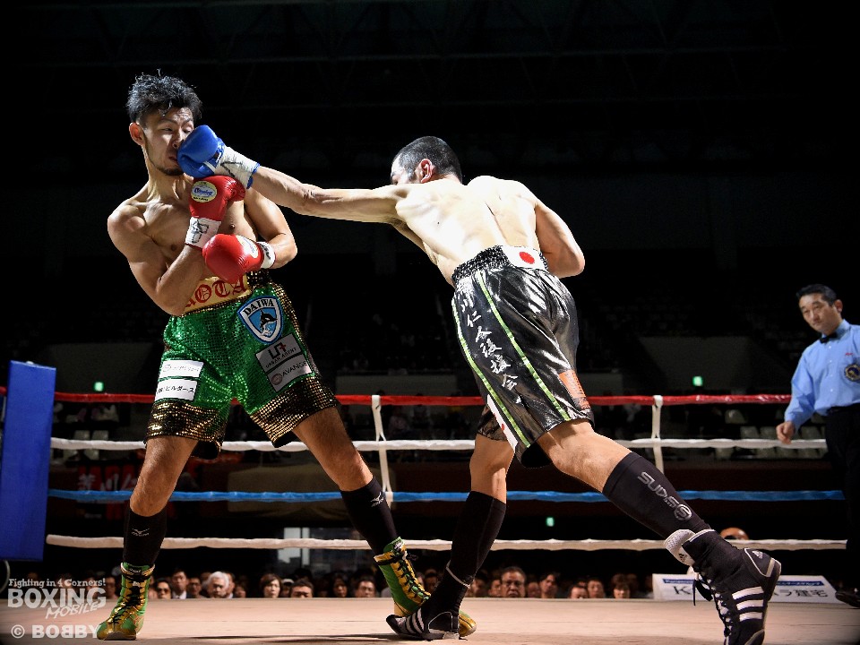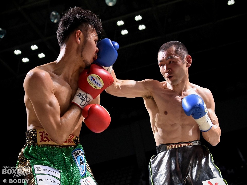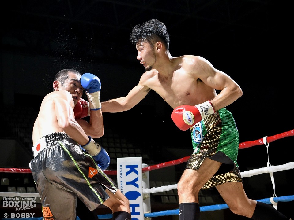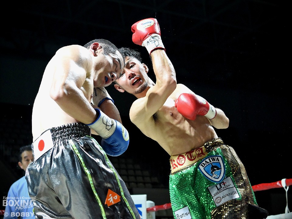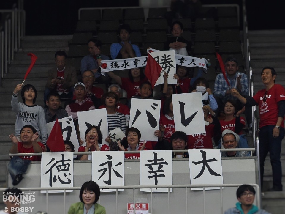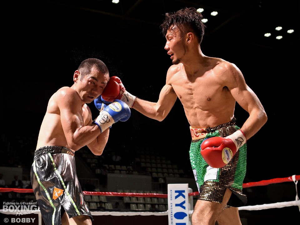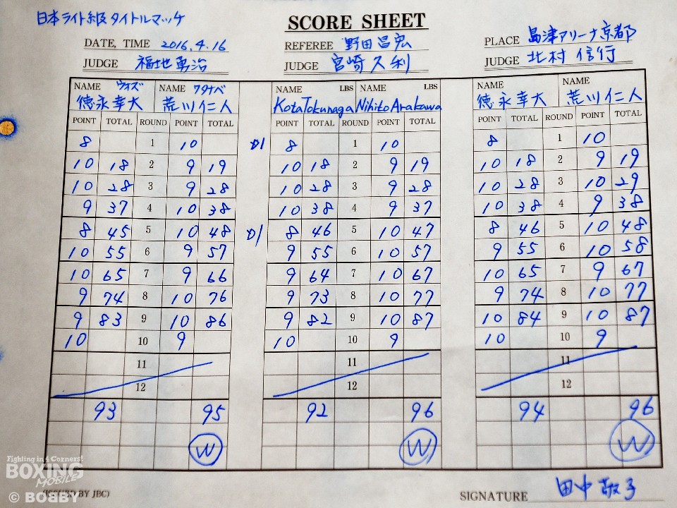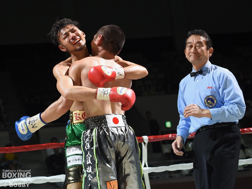 試合:京都のヒットマン徳永が最強の挑戦者、荒川を迎えた3度目の防衛戦。初回、ベテランサウスポーの荒川がゆったりとしたリズムでジリジリとプレスをかけ、上下にコンビネーションを決めていく。するとラウンド終盤に左ストレートが命中してダウンを奪う絶好のスタートを切った。先手を取られた徳永は右ボディで反撃を開始。3回、徳永が右ストレートを決めれば荒川は回転のある連打で対抗。4回、接近戦となり荒川が右フックを好打するが、徳永も真っ向から打ち合う姿勢をみせる。5回開始早々、荒川の左ストレートがジャストミートすると徳永は痛烈なダウン。ダメージの残る徳永に荒川は勝負を急ぐことなくボディ打ちで体力を削りにかかる。前半終了時の公開採点は47-46、48-46、48-45で挑戦者の荒川がリード。劣勢の徳永は7回、右ボディアッパーをねじ込み、荒川の動きを一瞬止めた。8回、懸命の追い上げをみせる徳永に荒川は左ストレートで顔を弾くとロープに詰めて連打、徳永はピンチを迎えた。9回、激しい打ち合いの中、徳永の右アッパーが決めれば荒川もリターン。10回、歯を食いしばりながらパンチを繰り出す両者は一歩も引かない打撃戦となり意地と意地のぶつかり合いは試合終了のゴングを聞いた。ジャッジに委ねられた採点は荒川を支持。再び王者に返り咲いた。