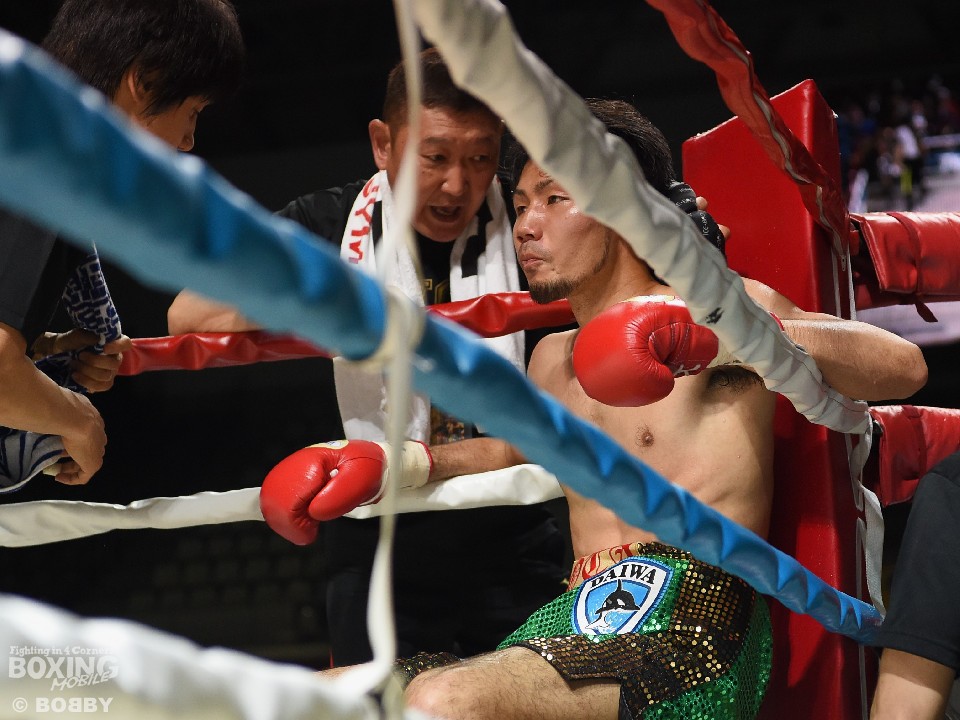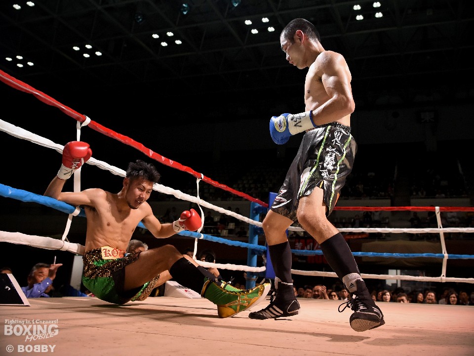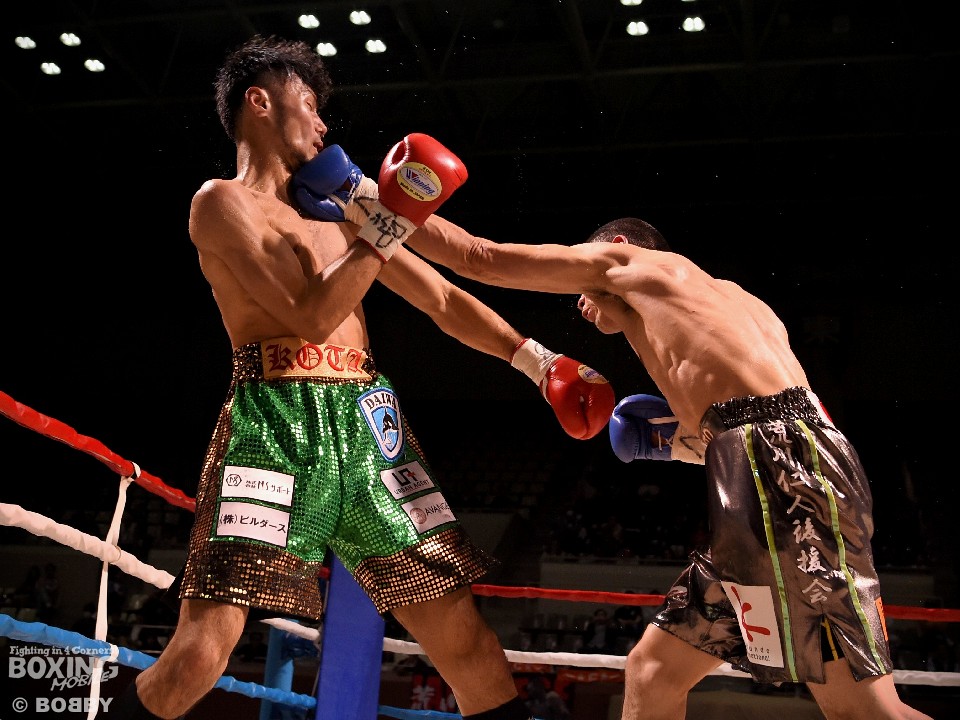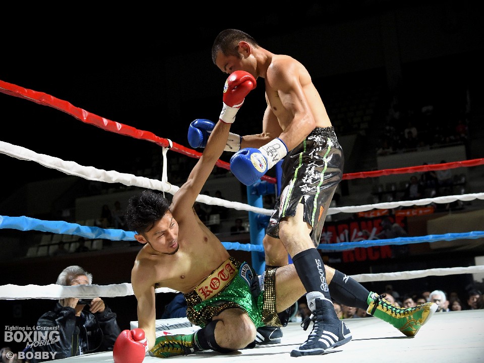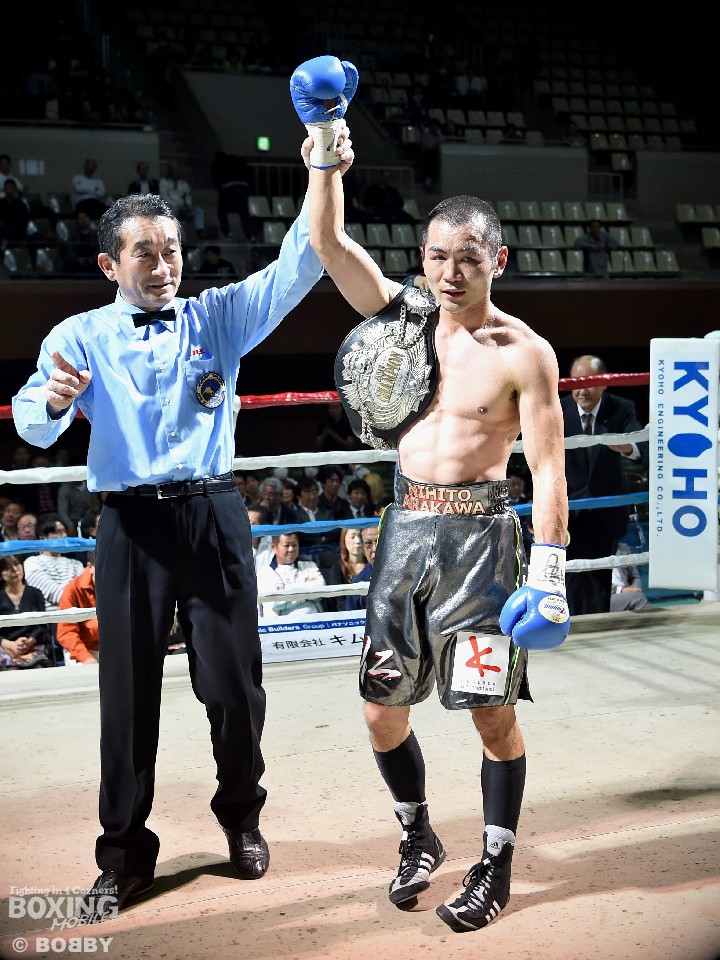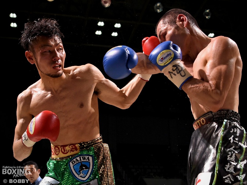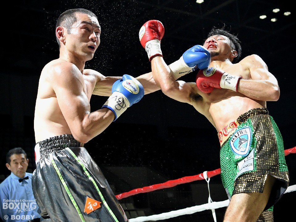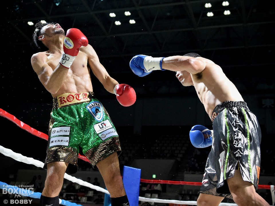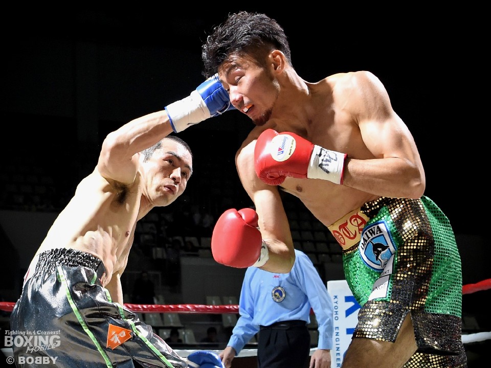 試合:京都のヒットマン徳永が最強の挑戦者、荒川を迎えた3度目の防衛戦。初回、ベテランサウスポーの荒川がゆったりとしたリズムでジリジリとプレスをかけ、上下にコンビネーションを決めていく。するとラウンド終盤に左ストレートが命中してダウンを奪う絶好のスタートを切った。先手を取られた徳永は右ボディで反撃を開始。3回、徳永が右ストレートを決めれば荒川は回転のある連打で対抗。4回、接近戦となり荒川が右フックを好打するが、徳永も真っ向から打ち合う姿勢をみせる。5回開始早々、荒川の左ストレートがジャストミートすると徳永は痛烈なダウン。ダメージの残る徳永に荒川は勝負を急ぐことなくボディ打ちで体力を削りにかかる。前半終了時の公開採点は47-46、48-46、48-45で挑戦者の荒川がリード。劣勢の徳永は7回、右ボディアッパーをねじ込み、荒川の動きを一瞬止めた。8回、懸命の追い上げをみせる徳永に荒川は左ストレートで顔を弾くとロープに詰めて連打、徳永はピンチを迎えた。9回、激しい打ち合いの中、徳永の右アッパーが決めれば荒川もリターン。10回、歯を食いしばりながらパンチを繰り出す両者は一歩も引かない打撃戦となり意地と意地のぶつかり合いは試合終了のゴングを聞いた。ジャッジに委ねられた採点は荒川を支持。再び王者に返り咲いた。