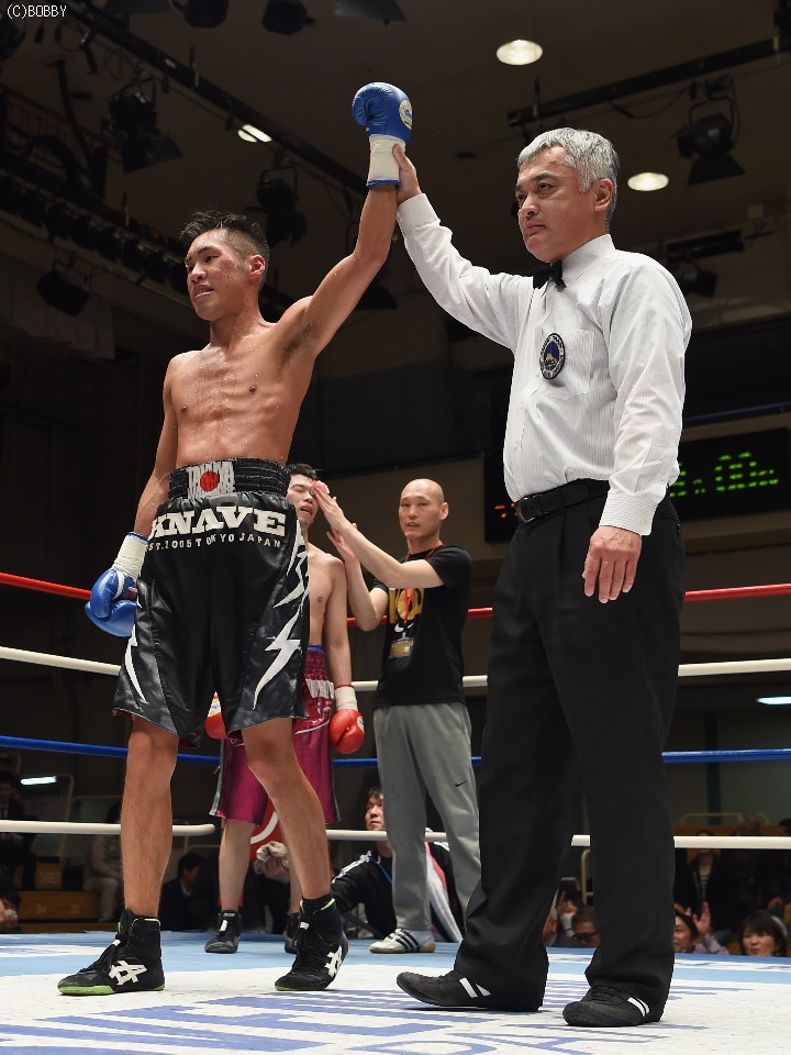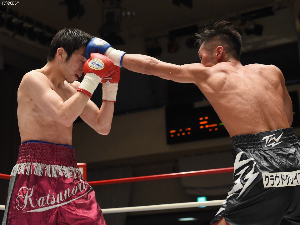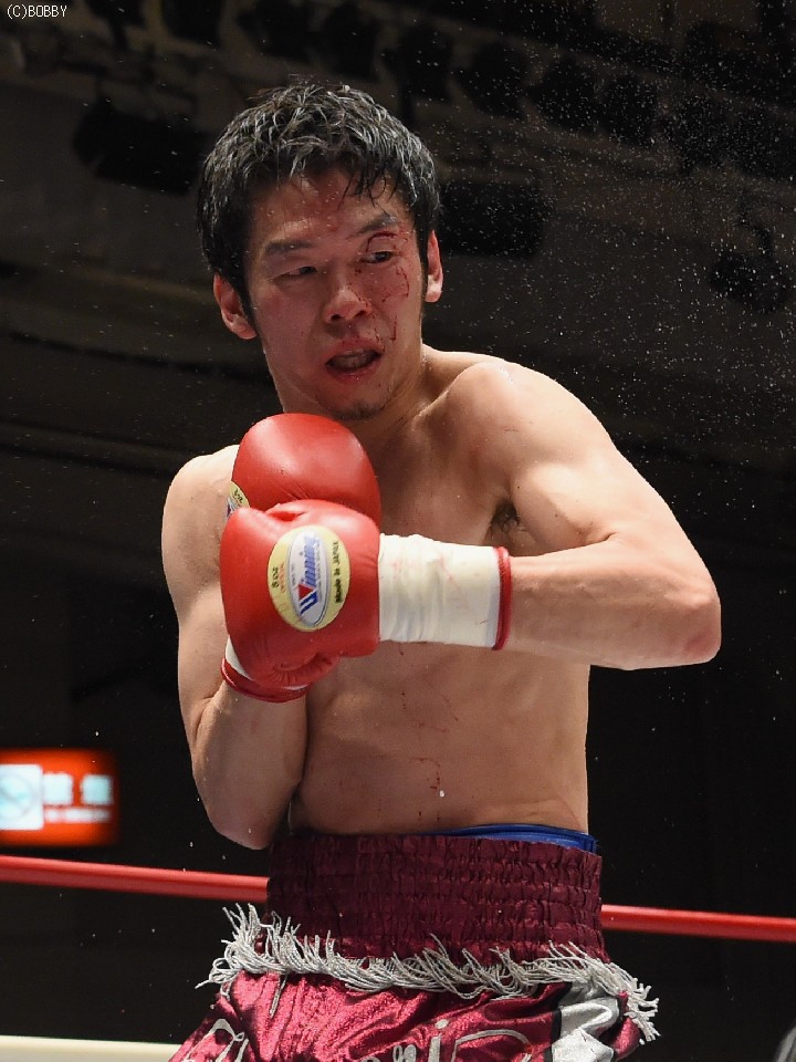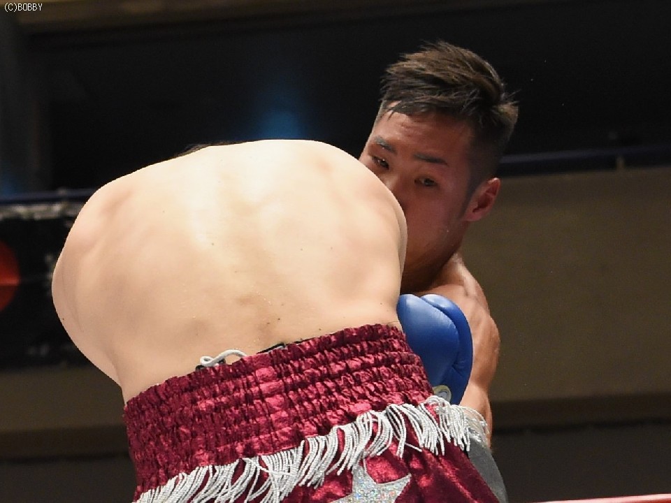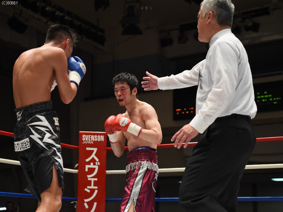 試合:ここ3戦して白星に恵まれない今井が、元WBCユース王者の日本・OPBFランカーの渡邉に挑戦。丁寧にジャブを突いてまずは距離とリズムを掴みに出る今井だが、ガードを固める渡邉の懐は深く、前に誘われてはジャブからボディ、ストレートを被弾した。序盤からクレバーな戦い方で距離を支配、主導権を握った渡邉は、今井の手数が落ちると先に仕掛け、ミドルからショートレンジの左ボディでスタミナを削る。今井も左フック、右クロスの強打に切り替えペースを上げるが、渡邉のリードとボディブローに阻まれ、強引に出てもスピードで上回る渡邉にまわされてしまい流れを引き寄せられなかった。渡邉は後半に入ってもペースを落とさず、下がる今井に圧力をかけると5R終盤に右ストレートで今井の左目上を切り裂いた。この負傷により6Rに入ると出血が広がり、ドクターチェック後にレフェリーがストップした。