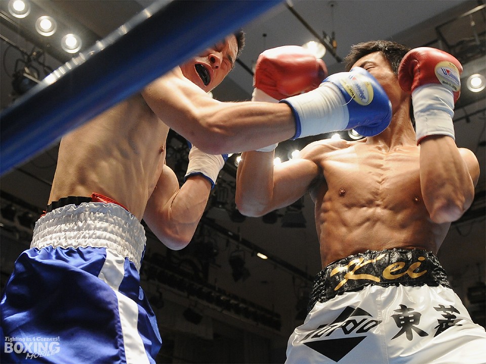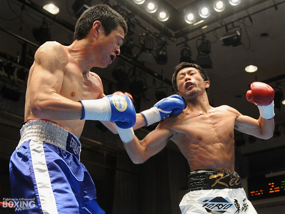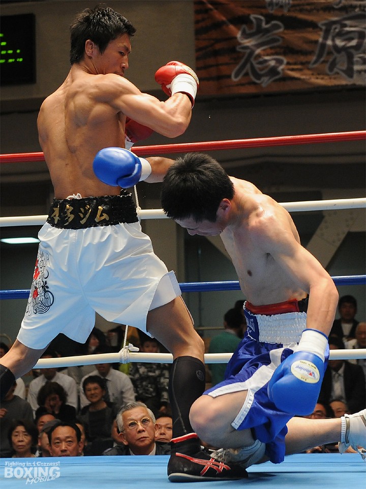 試合:サウスポー岩原がリードを出しながら鈴木の打ち終わりに左ストレートをヒット。2回、リズムに乗った岩原はさらに攻勢。打ち合いの中で右アッパーを決めると鮮やかなダウンを先制。立ち上がってきた鈴木を慌てることなく連打で2度目のダウンを奪うとカウント途中に鈴木陣営からタオルが投入された。