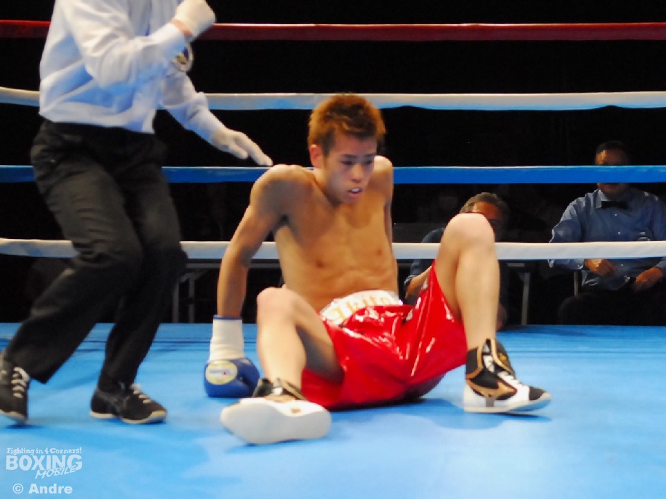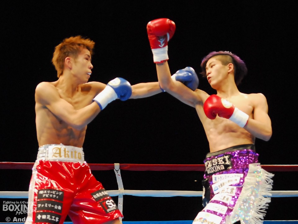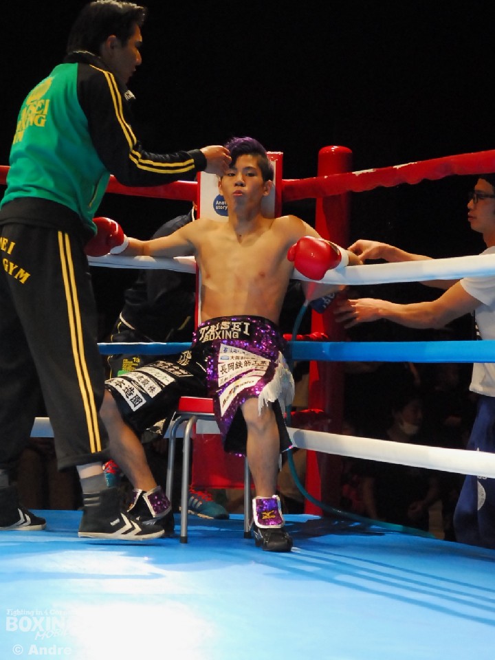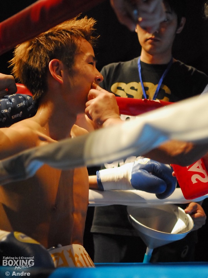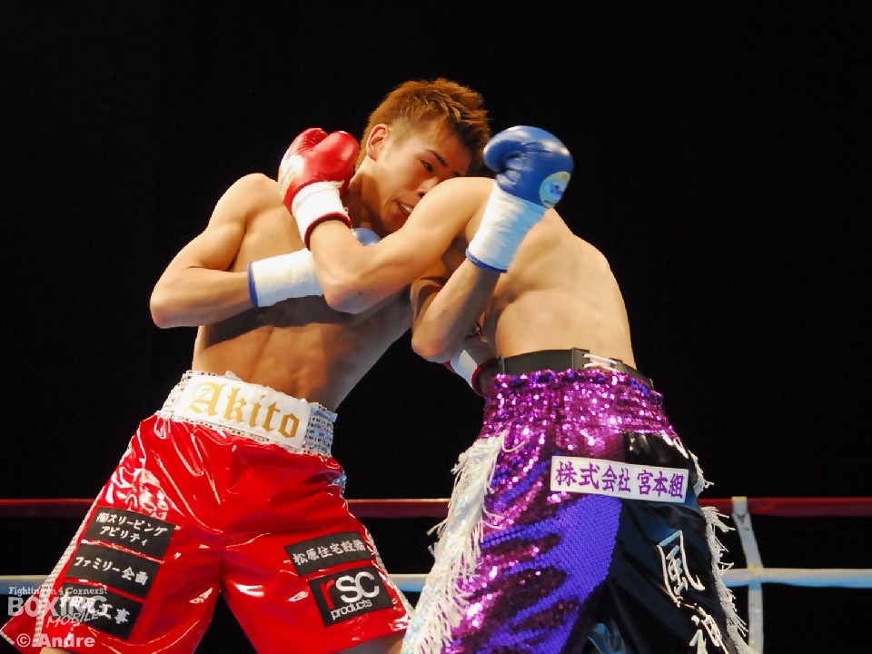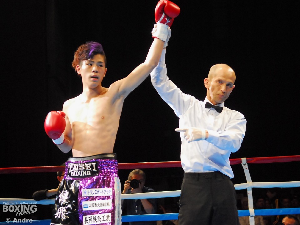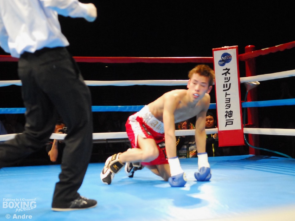 試合: ジャブで両者けん制しあう序盤。最初に仕掛けたのは原口、ジャブから大きなアッパーをあて寺田がダウン。立ち上がった寺田が今度は右で原口の膝を揺らす。2ラウンド、原口の右がヒットし寺田がダウン。寺田陣営からタオルが投入される。