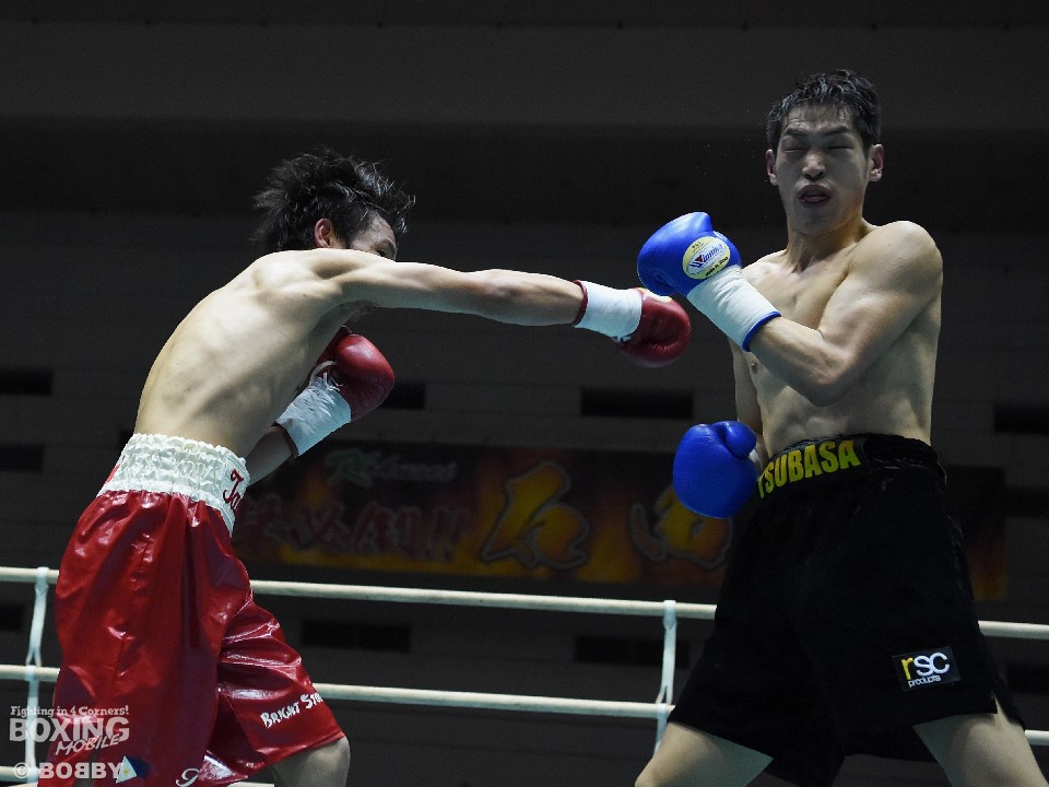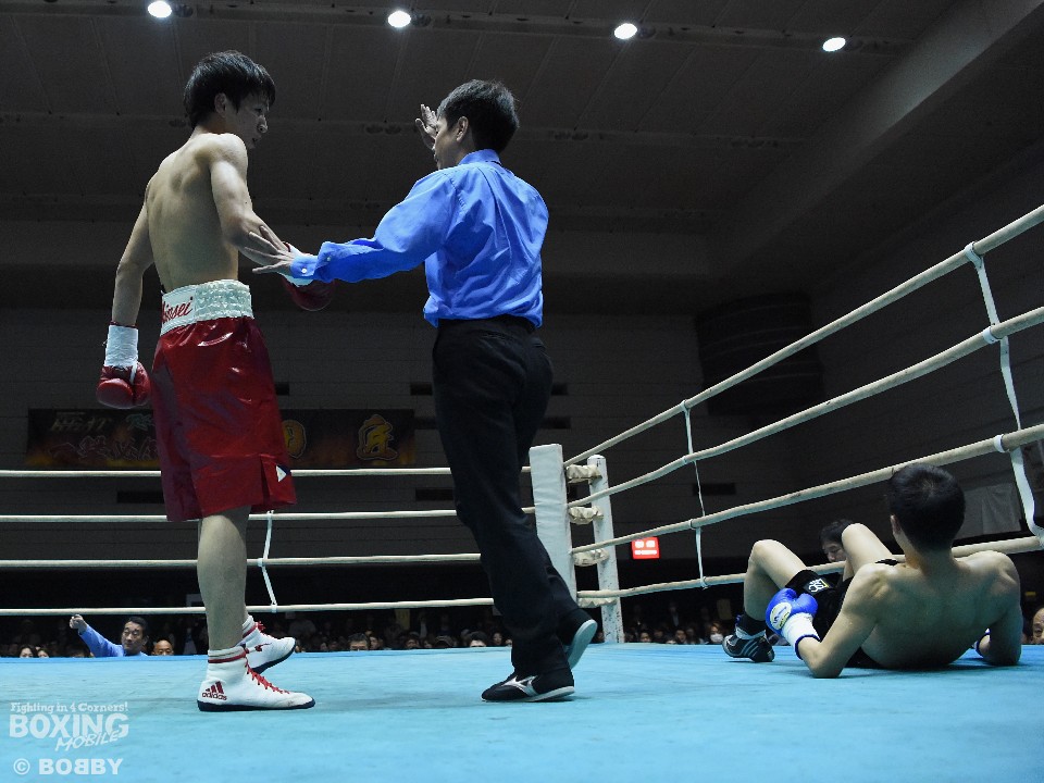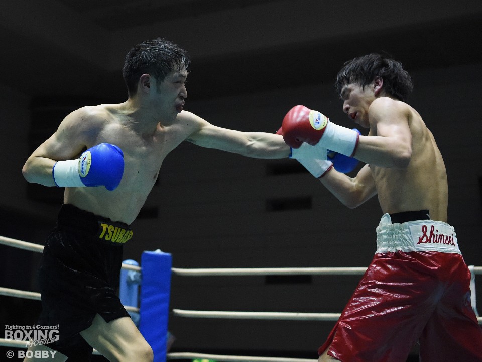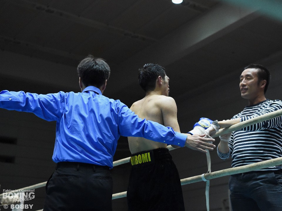 試合: サウスポーの松嶺はフットワークを使い右フックをあてる。対して、杉森は飛び込む松嶺に左フックを合わせる。1ラウンド序盤、杉森の左フックが決まりバランスを崩した松嶺がダウン。しかしここはダメージを感じさせず立ち上がりこのラウンドをしのぐ。2ラウンド以降立ち直った松嶺が手数を出したが4ラウンド終盤、松嶺の右目上腫れがひどくドクターの助言をきいたレフェリーが試合を止めた。松嶺の右目上の腫れは杉森のヒッティングによるもので杉森がTKO勝利。