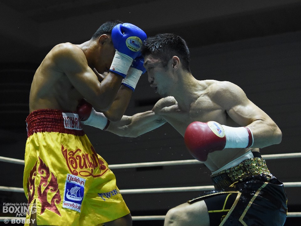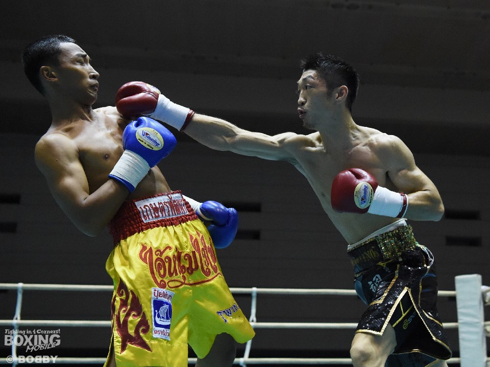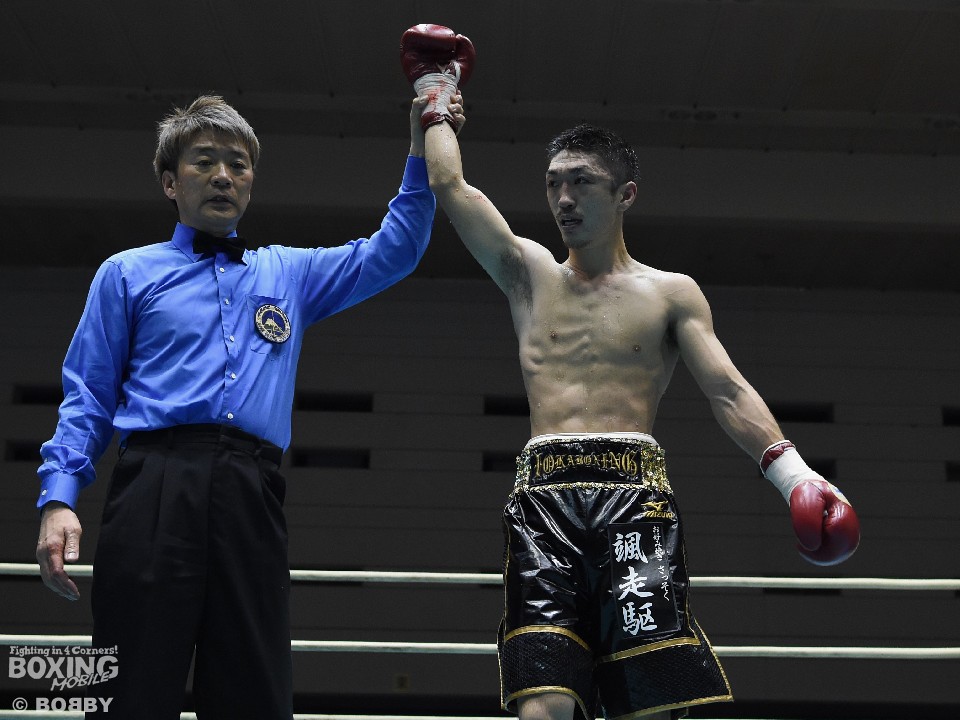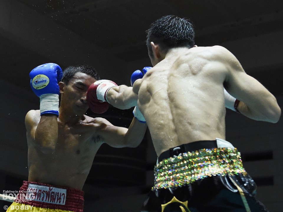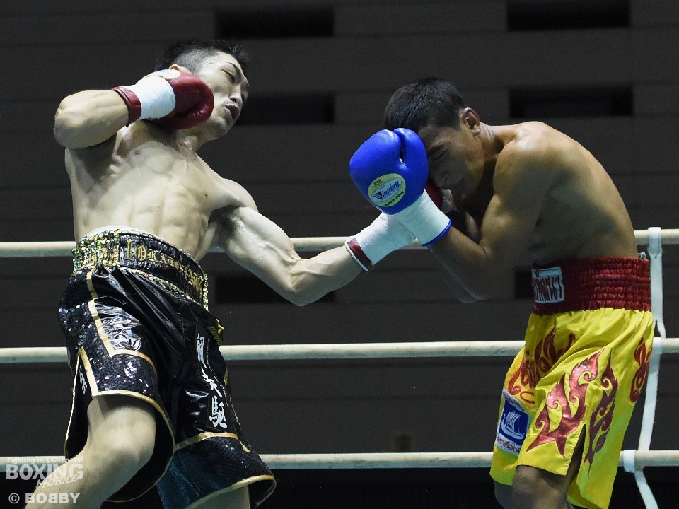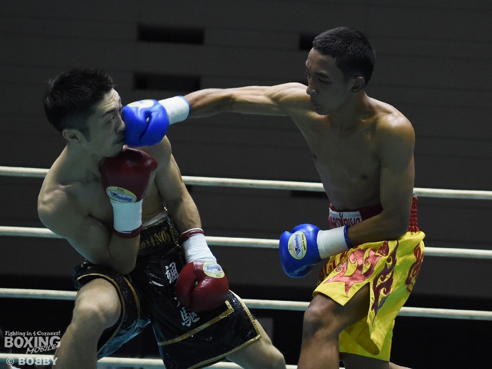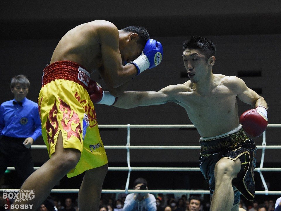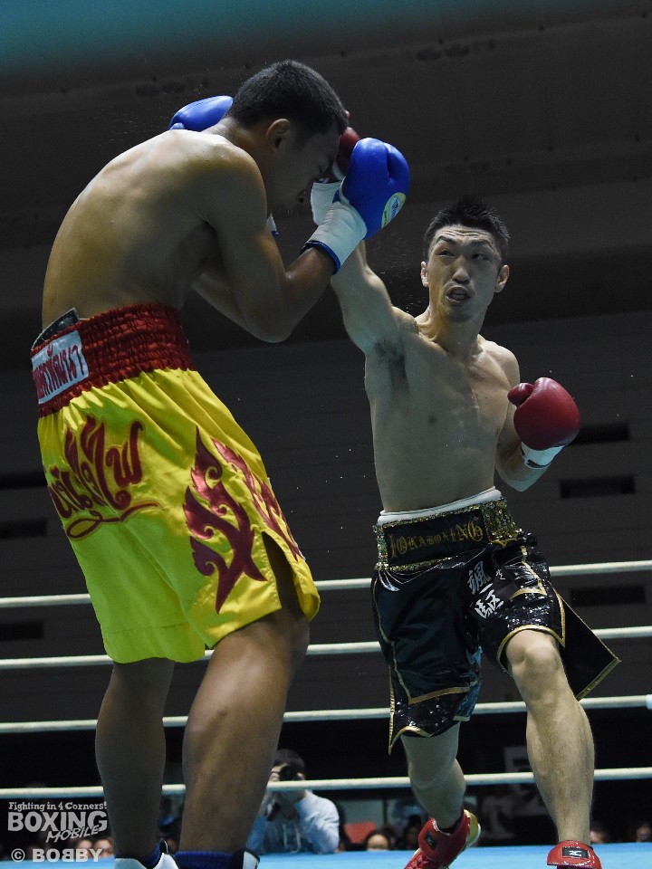 試合: 4連勝中の日本ランカー上谷がティアンチャイを迎えてのスーパーバンタム級8回戦。上谷は序盤から左ジャブを痛打すると左ボディを突き刺す。対して、ティアンチャイは上谷の打ち終わりに体勢を崩しながらも右を伸ばす。ジャブで完全に距離を掌握した上谷は渾身の左ボディを突き刺し徐々にティアンチャイの体力を削る。時折スイッチして大きな右を伸ばし形勢逆転を狙うティアンチャイだが距離が合わず。終盤まで粘りをみせるティアンチャイに攻めあぐねる上谷。大差をつけて上谷が判定勝利。