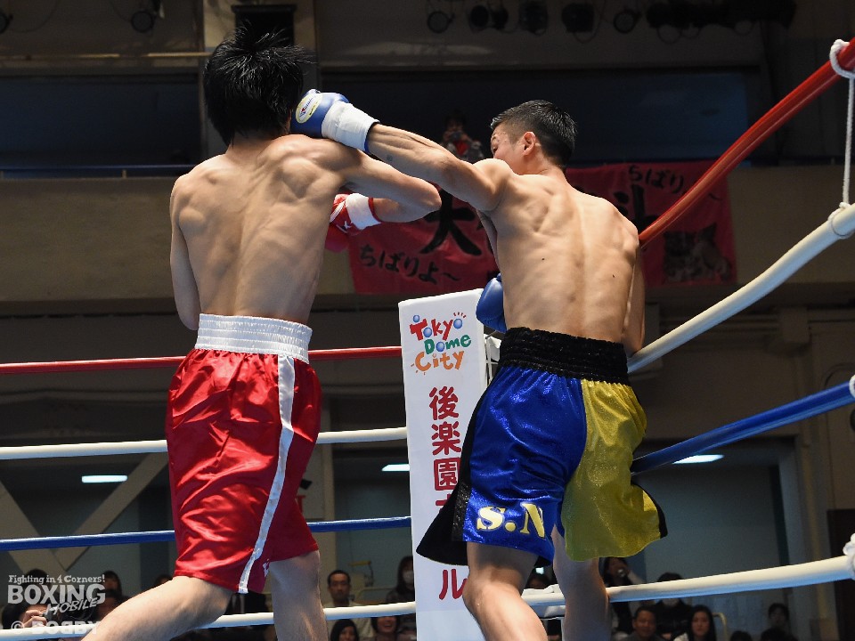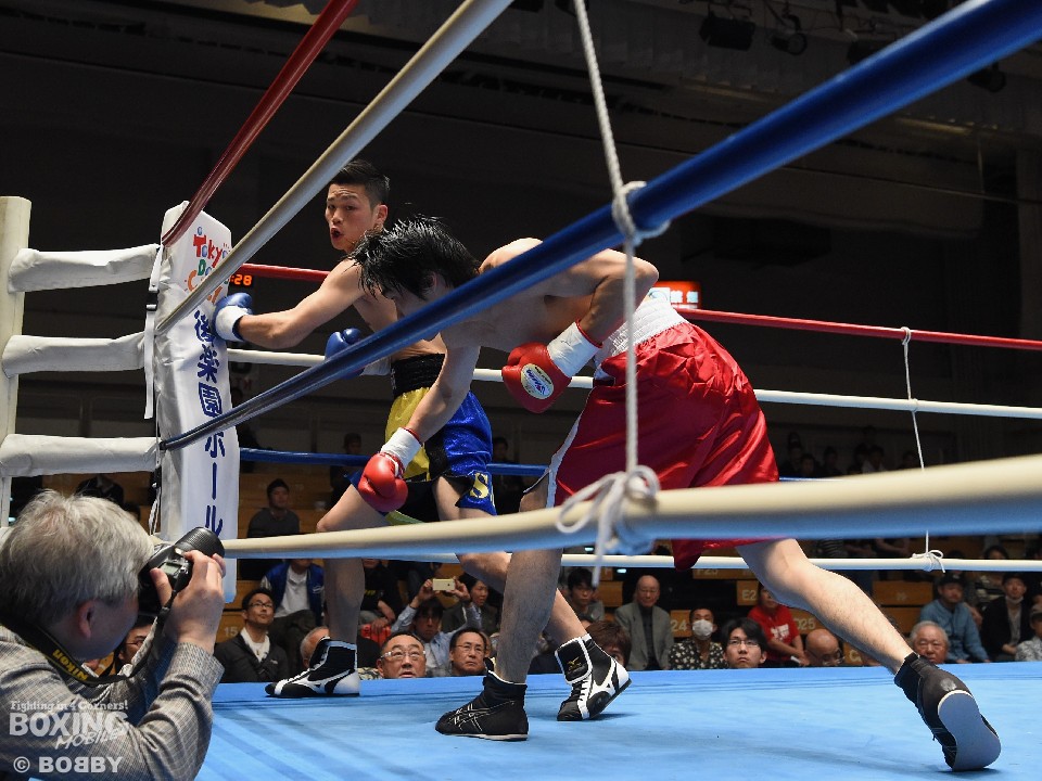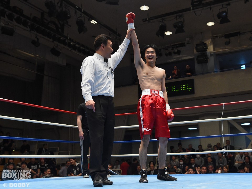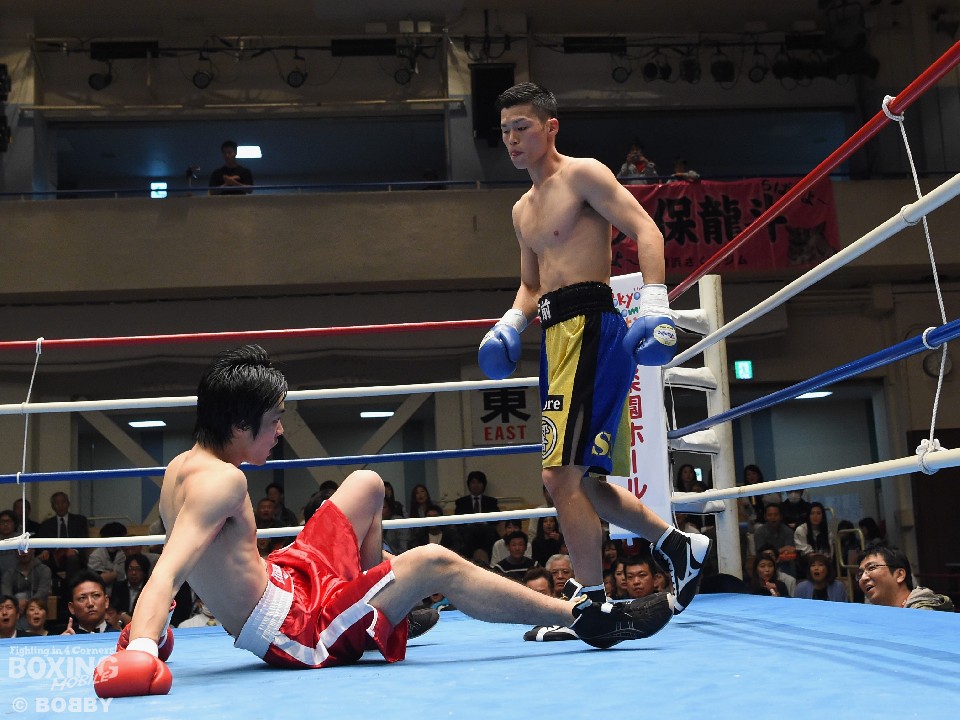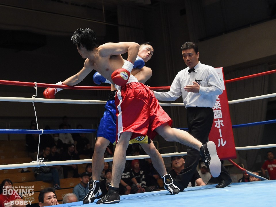 試合:前回のデビュー戦で1R・KO勝利を飾った槐が、力強いジャブから右を思い切り突き刺し中村を追い込んだが、開始2分に狙われていた左フックを返されダウン。しかし、強気な姿勢は変えずに再び右ストレートで中村をコーナーまで下がらせると、身体を丸めた中村に一気にパンチをまとめた。中村は堪えきれず腰を落としたところに右を打ち下ろされ沈むと、レフェリーはノーカウントで試合を止めた。槐は2戦連続の初回KO勝利で、Sライト級新人王の台風の目となった。