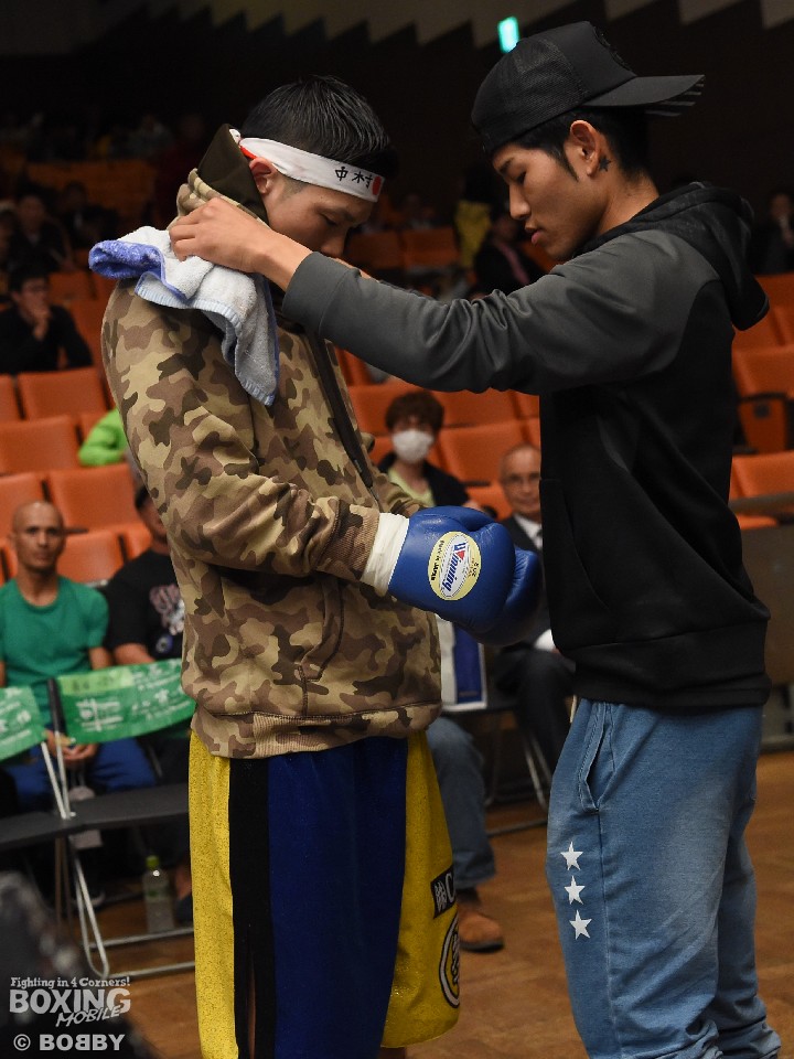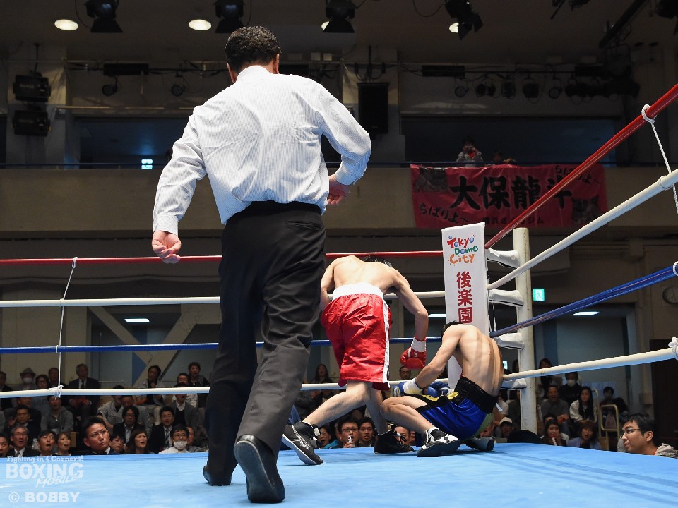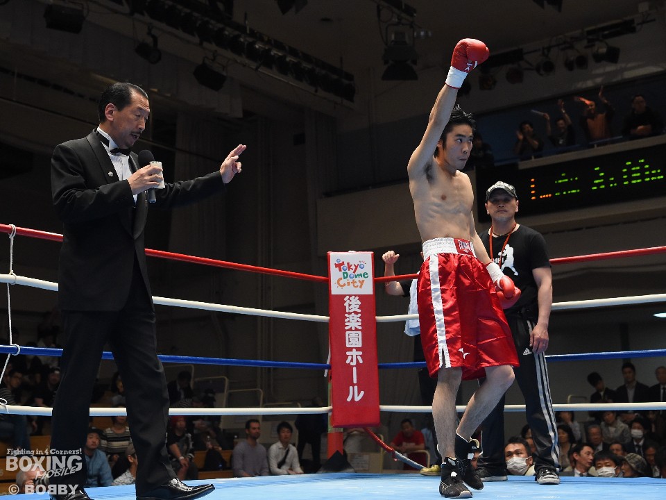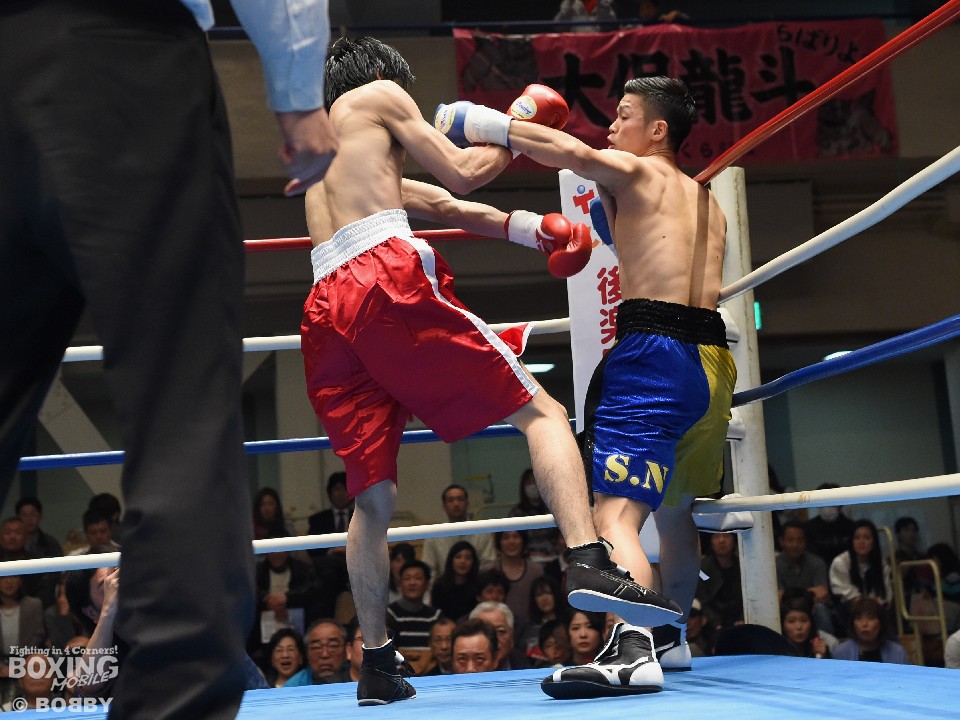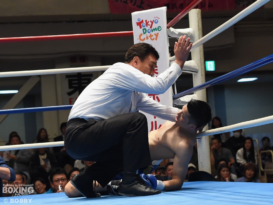 試合:前回のデビュー戦で1R・KO勝利を飾った槐が、力強いジャブから右を思い切り突き刺し中村を追い込んだが、開始2分に狙われていた左フックを返されダウン。しかし、強気な姿勢は変えずに再び右ストレートで中村をコーナーまで下がらせると、身体を丸めた中村に一気にパンチをまとめた。中村は堪えきれず腰を落としたところに右を打ち下ろされ沈むと、レフェリーはノーカウントで試合を止めた。槐は2戦連続の初回KO勝利で、Sライト級新人王の台風の目となった。