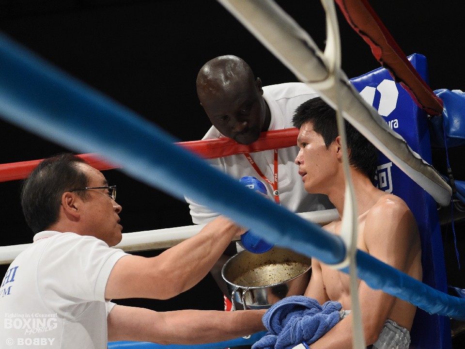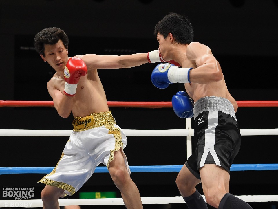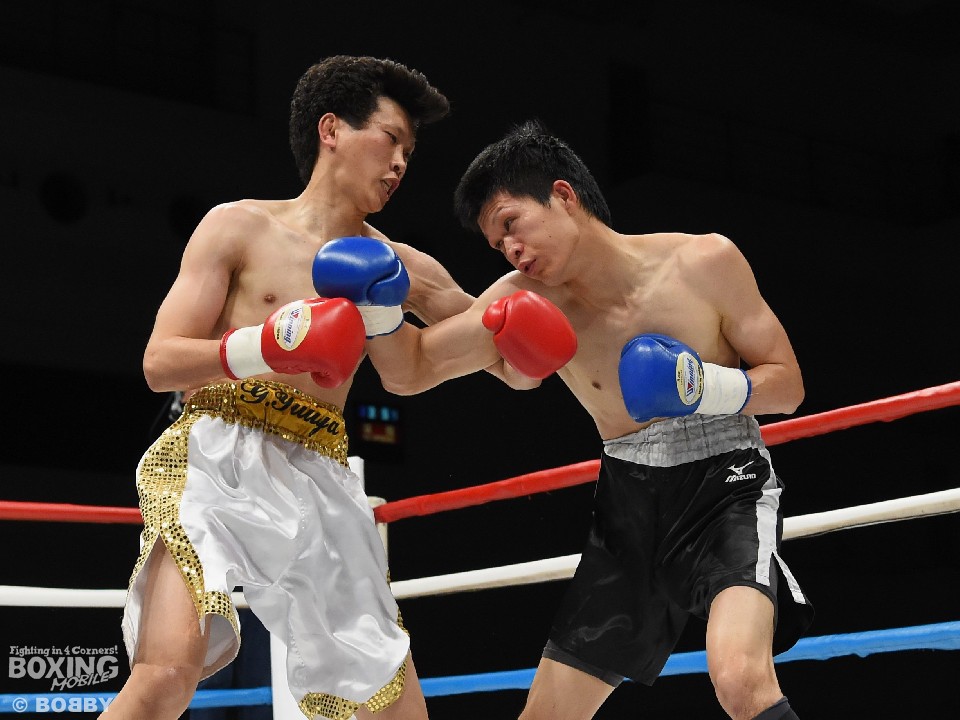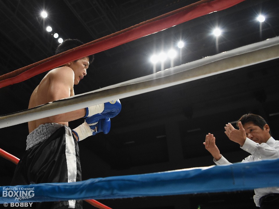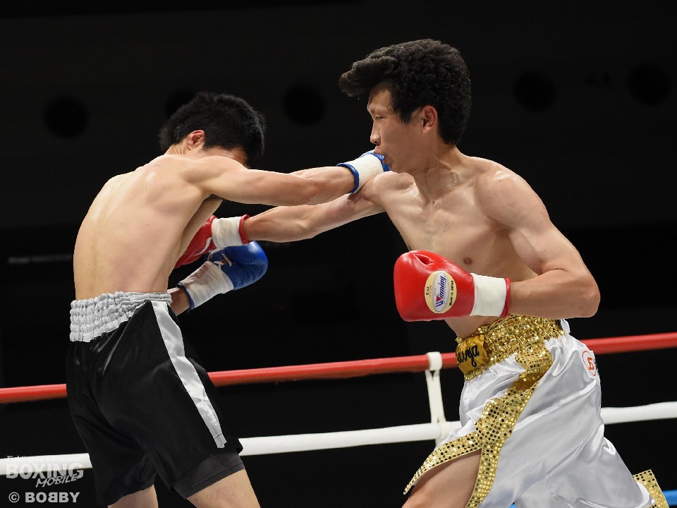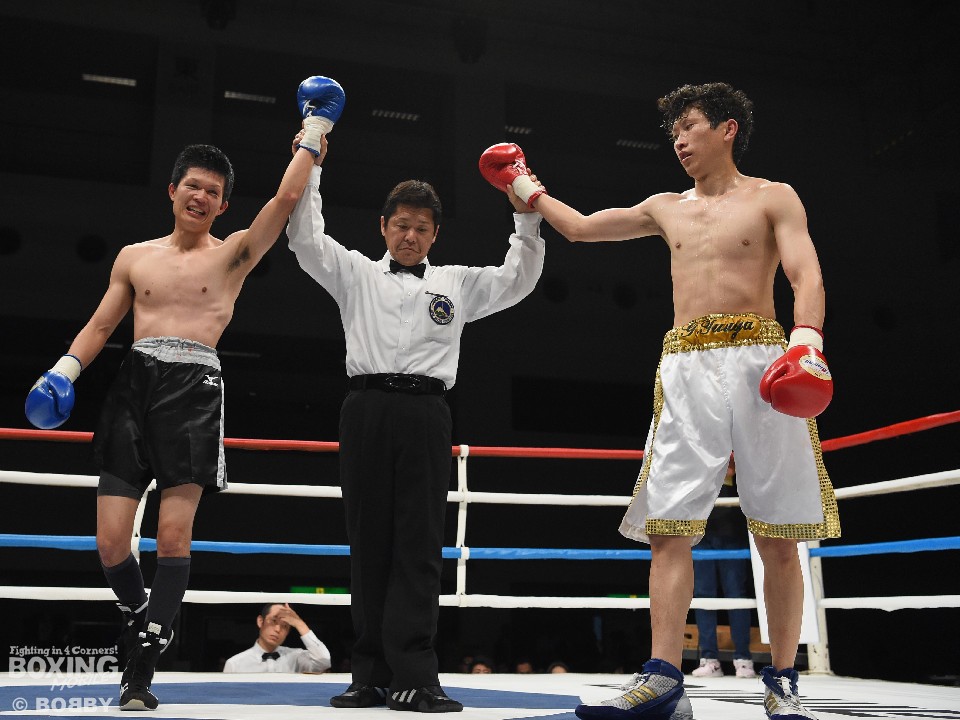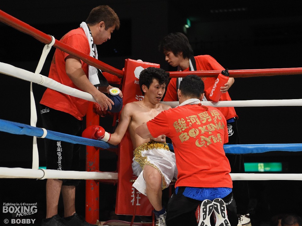 試合: サウスポーの高井は頭を振ってリズムを刻むと右ジャブから左ストレートを腹に決める。対して、かべりーんは左ジャブからフックを狙う。2ラウンド中盤、かべりーんの右ストレートが決まり高井がダウン。しかしここはダメージを感じさせず立ち上がった高井。中盤に入るとポイントで巻き返したい高井が左ボディを起点に攻め立てた。最終ラウンドまで打ち合った両者。判定はドロー。
