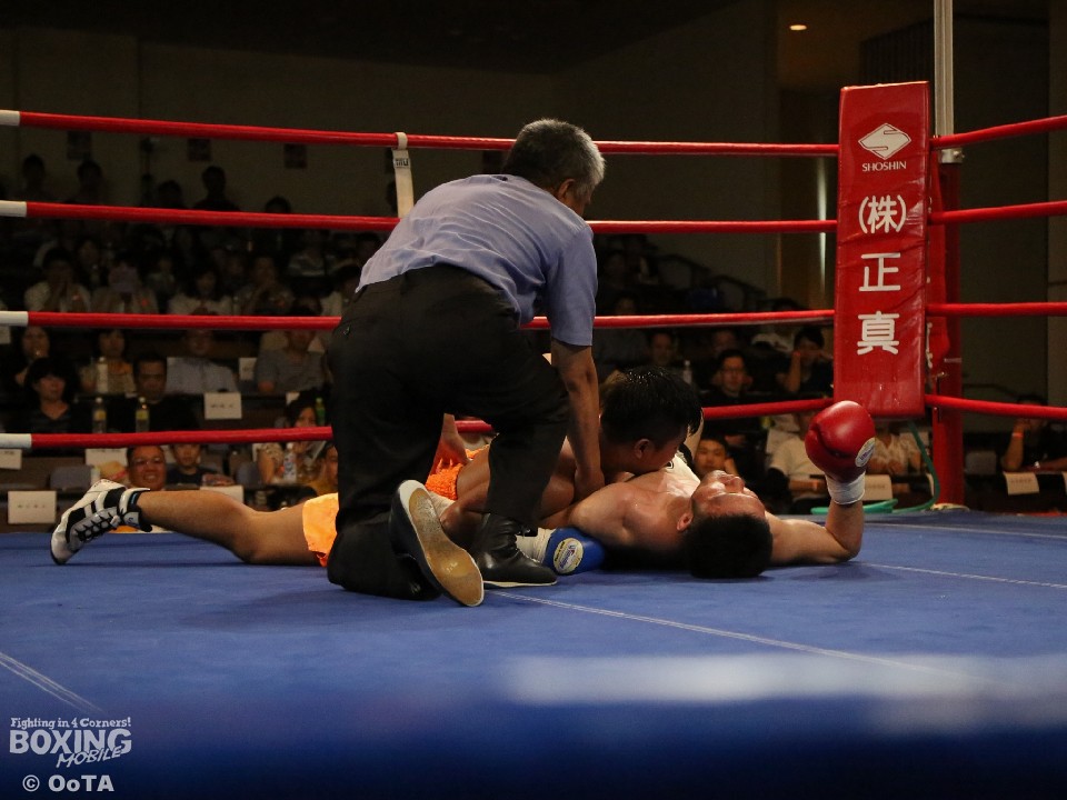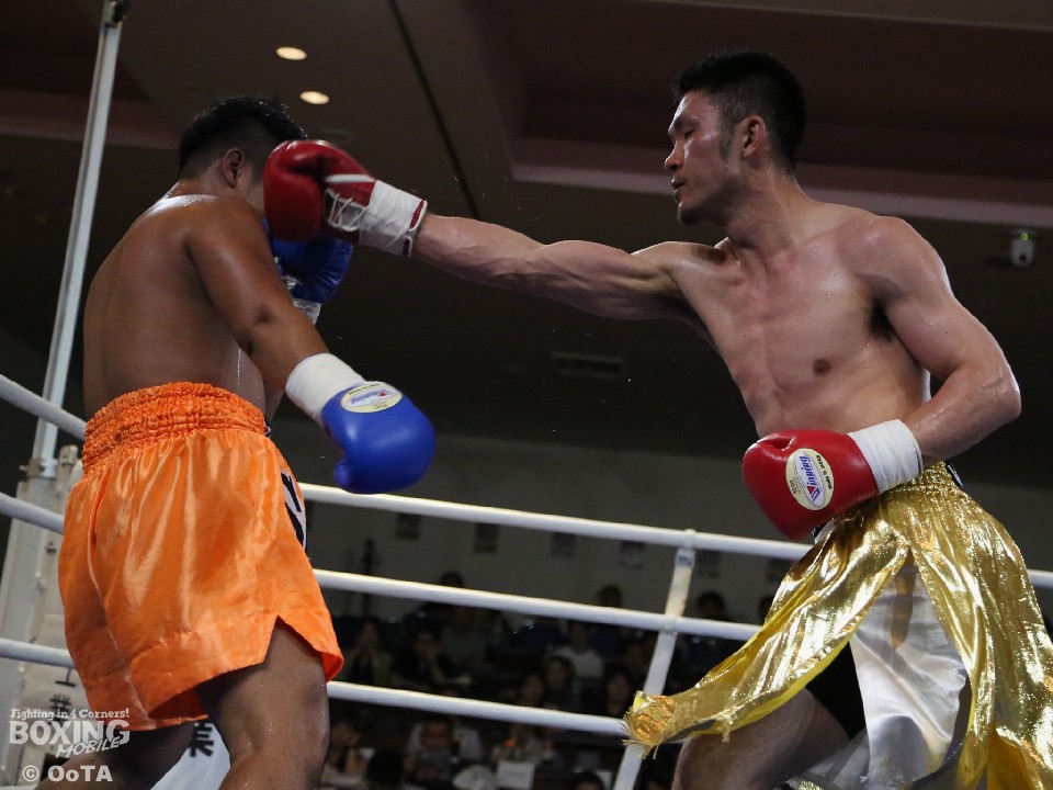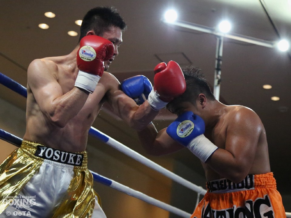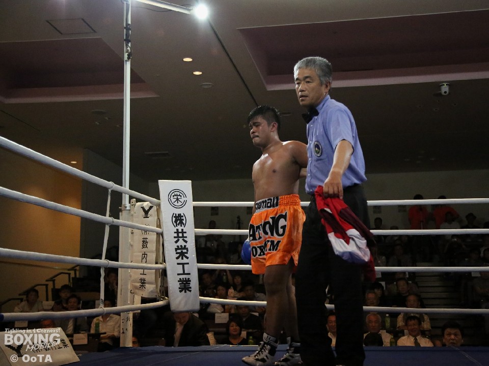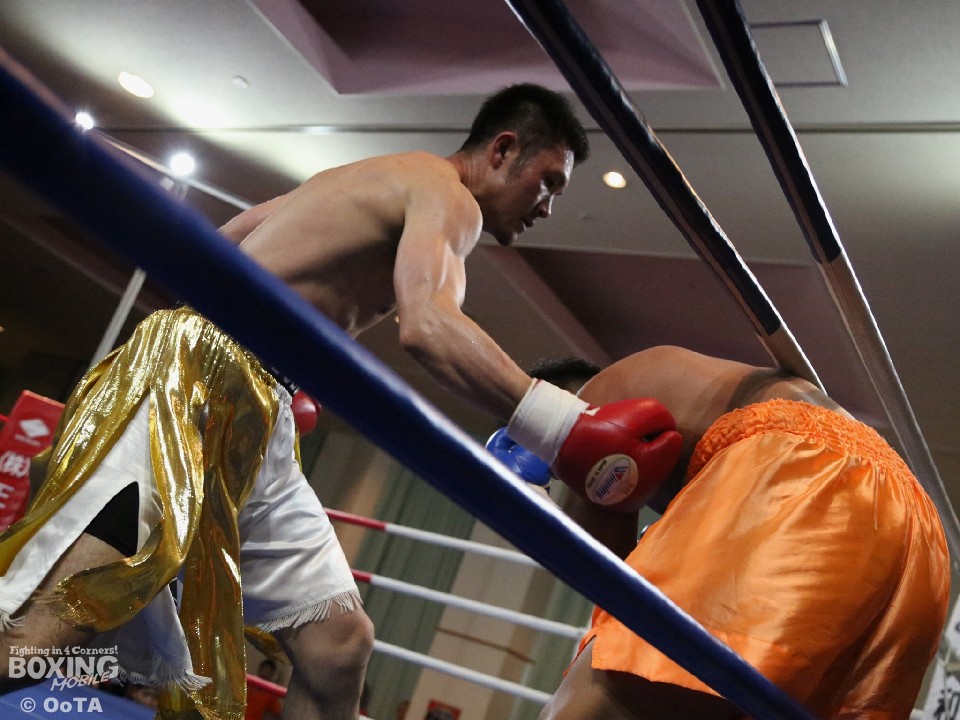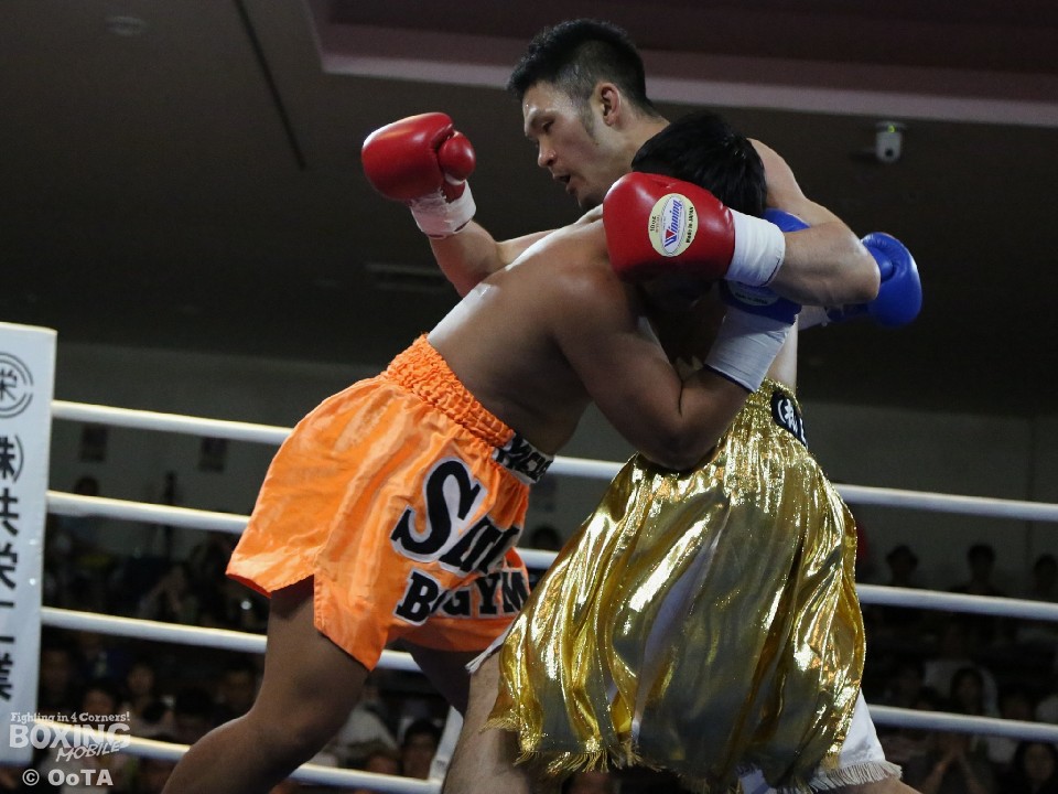 試合: 大振りのフックで打ち合いを挑むパーンソムブーンに切間はカウンターでボディを返し冷静に対応。2ラウンドには打ち合いへと応戦した切間が左ボディを好打させ、パーンソムブーンをロープに追い詰める場面を作る。3ラウンドに入り仕留め切りたい切間だがクリンチを多用され攻撃を寸断されてしまい思ったようにパンチが打てず、度重なるクリンチに減点1がパーンソムブーンに宣告されてしまう。4ラウンドに切間の連打を浴びせられロープに詰まるパーンソムブーンは必死の抵抗でダウンを拒否し打ち合いの展開が多くなる様相を見せた中、迎えた5ラウンドにクリンチでパンチをしのいでいたパーンソムブーンが力なく切間と共に倒れ込むと、ダメージの限界を見て取った青コーナー陣営がタオルを投げ込み試合を終わらせた。