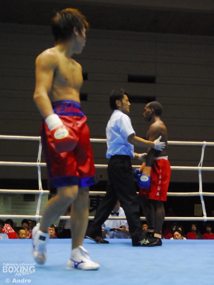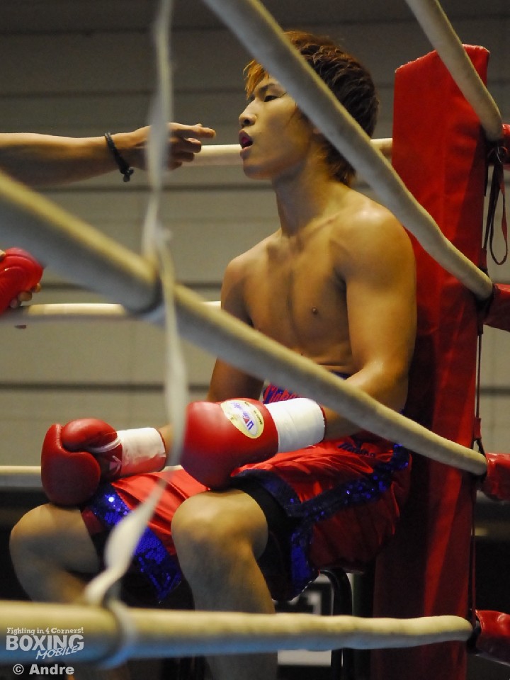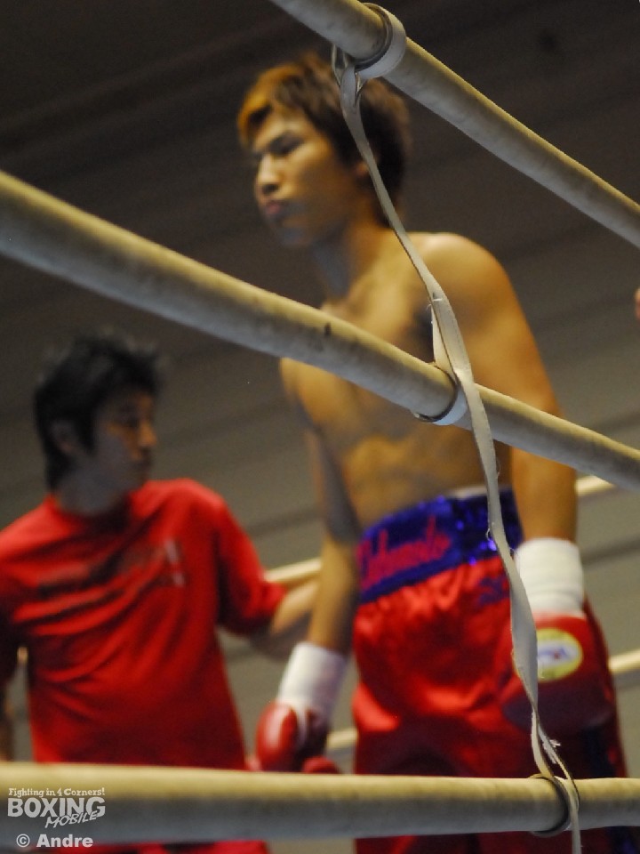 試合: インドネシアライト級8位のコエラピーに高橋が挑む戦い。変則的な動きのコエラピーは大きな左フックを振るうと飛び込んで右ボディを狙う。対して、サウスポーの高橋は落ち着いて右に回ると左ストレートボディをあてていく。中盤、振り回すコエラピーに執拗にボディを狙う高橋がコエラピーに動きを止めにかかる。すると5ラウンド中盤、高橋の再三のボディ攻撃に動きの止まったコエラピーを見たレフェリーがこれ以上の試合続行不可能と判断し試合を止めた。