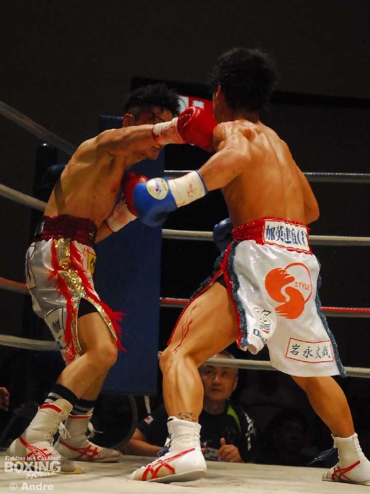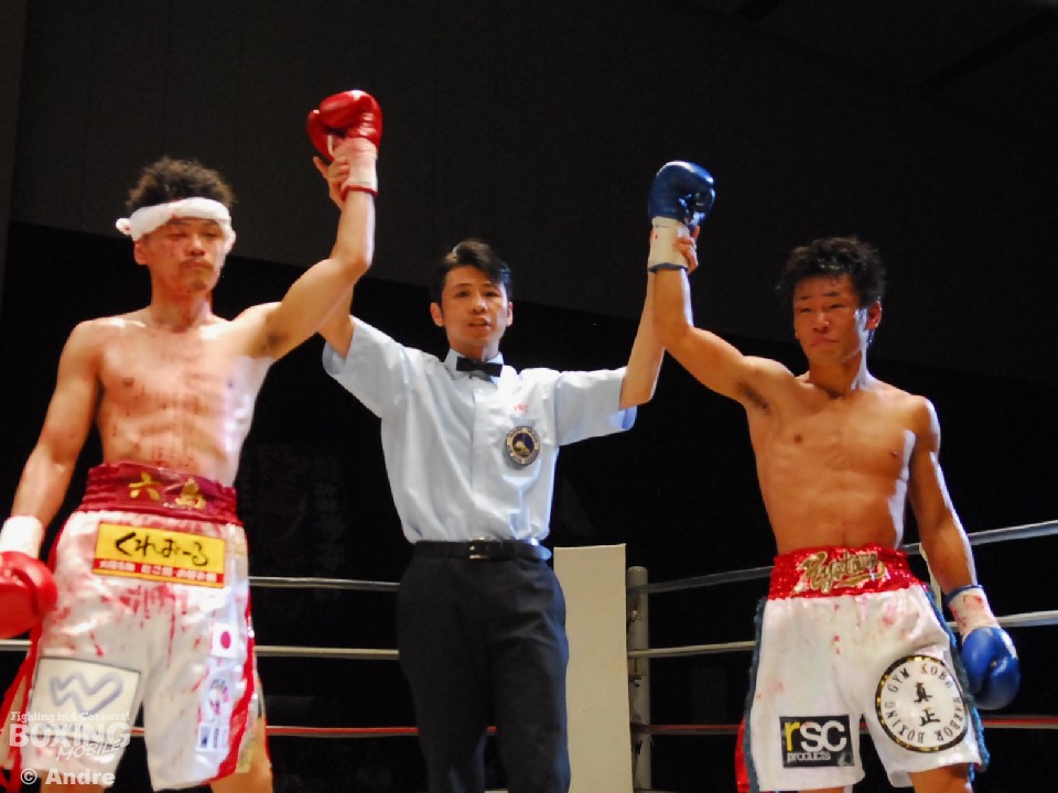 試合:東洋太平洋と日本でランキングに入る向井にランキング返り咲きを目指す川端の激突。序盤から距離のかみ合った両者は打ち合いを演じる。サウスポーの向井は川端の打ち終わりに左ストレートをカウンターで狙う。対して、川端は積極的に前に出るとノーモーション右を上下に散らす。2ラウンド終盤、向井の右が決まり川端がダウン。しかしここはダメージを感じさせず立ち上がりゴングに救われる。すると3ラウンド開始直後、両者の頭が激突し向井がカット、即座にドクターチェックが入りこれ以上の試合続行は不可能と判断したレフェリーが試合を止めた。試合前半のためテクニカルドロー。