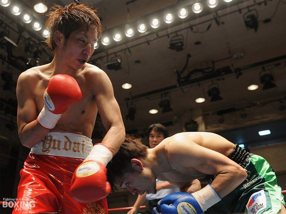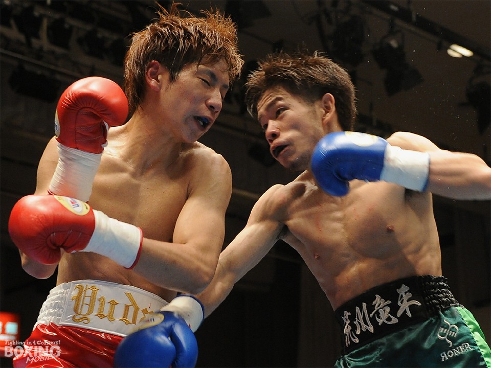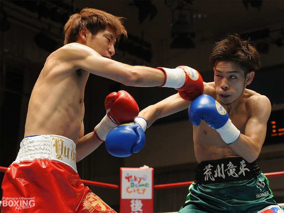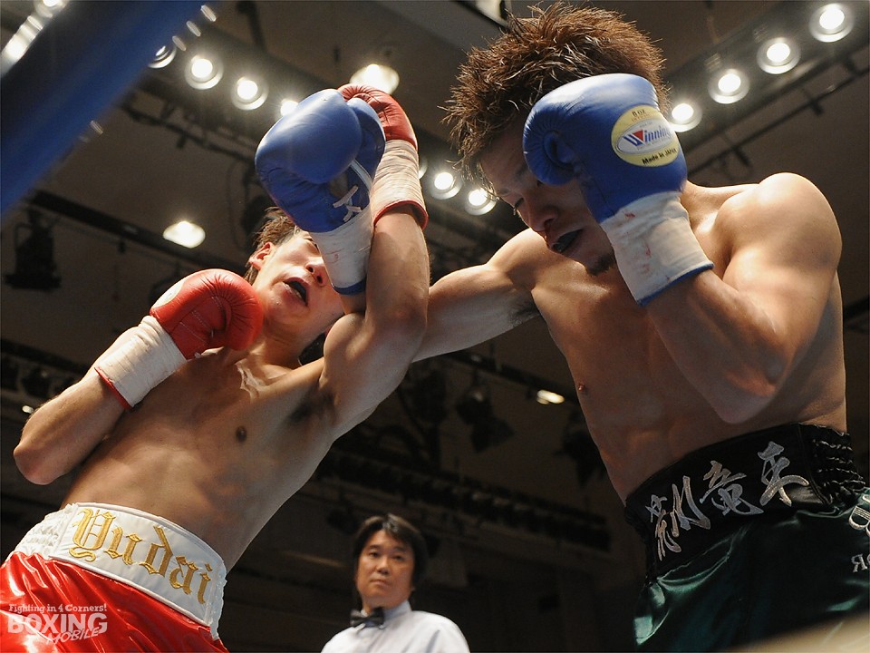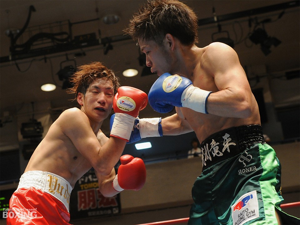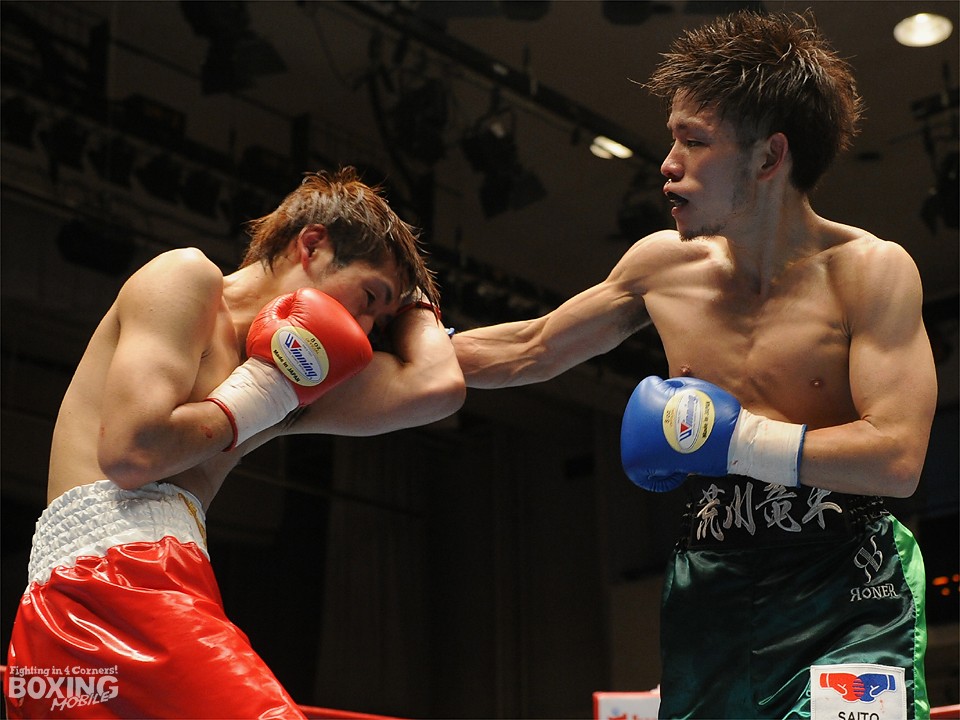 試合:この日、デビュー戦を迎えたサウスポー荒川が積極的にワンツーを繰り出し試合を組み立てると2分過ぎには左ストレートをクリーンヒット。対する松本はジャブを飛ばし、荒川に鼻血を流させるが、荒川も手数を緩めることなくワンツーの連打でペースをわたさない。3回は足を止めて細かい連打の応酬となり、互角の打ち合いを展開。最終回は両応援団の大声援を背に激しく打ち合ったが、判定は3者ともに38-38のドローの採点が下された。