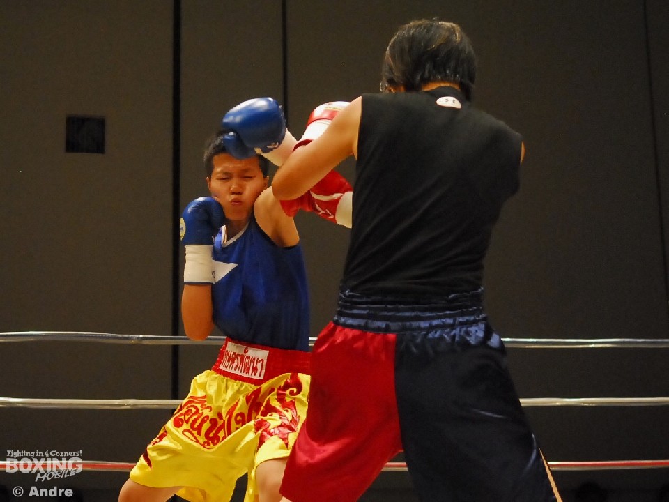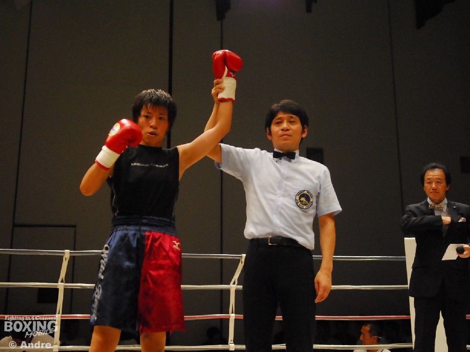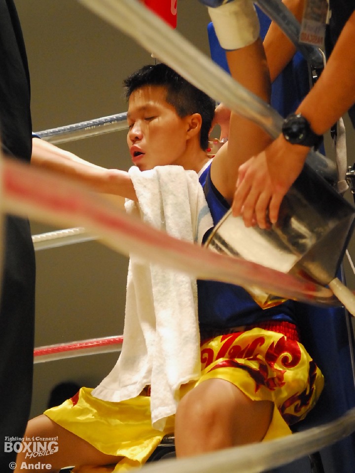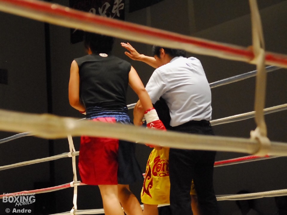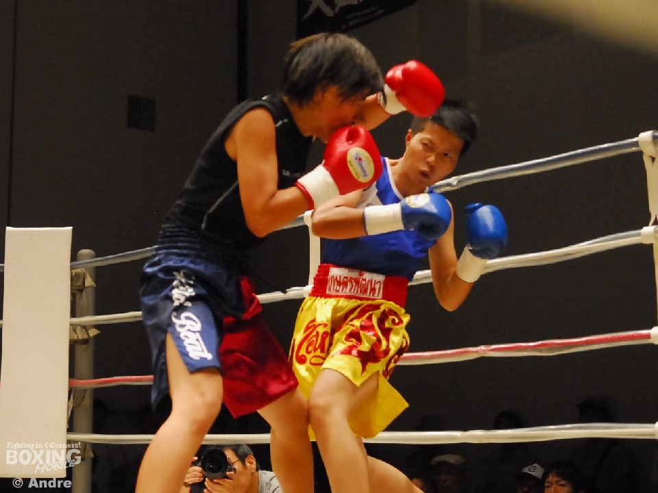 試合: 緒方は足を使いジャブから左ボディをあてていく。対して、カニタは緒方の打ち終わりにカウンターを狙う。3ラウンド、カニタにホールディングの反則によって1点減点。すると4ラウンド、ラッシュを仕掛けた緒方にカニタが防戦一方になりレフェリーが試合を止めた。
