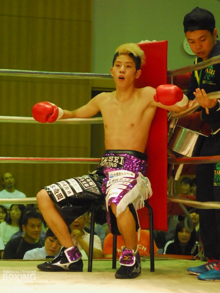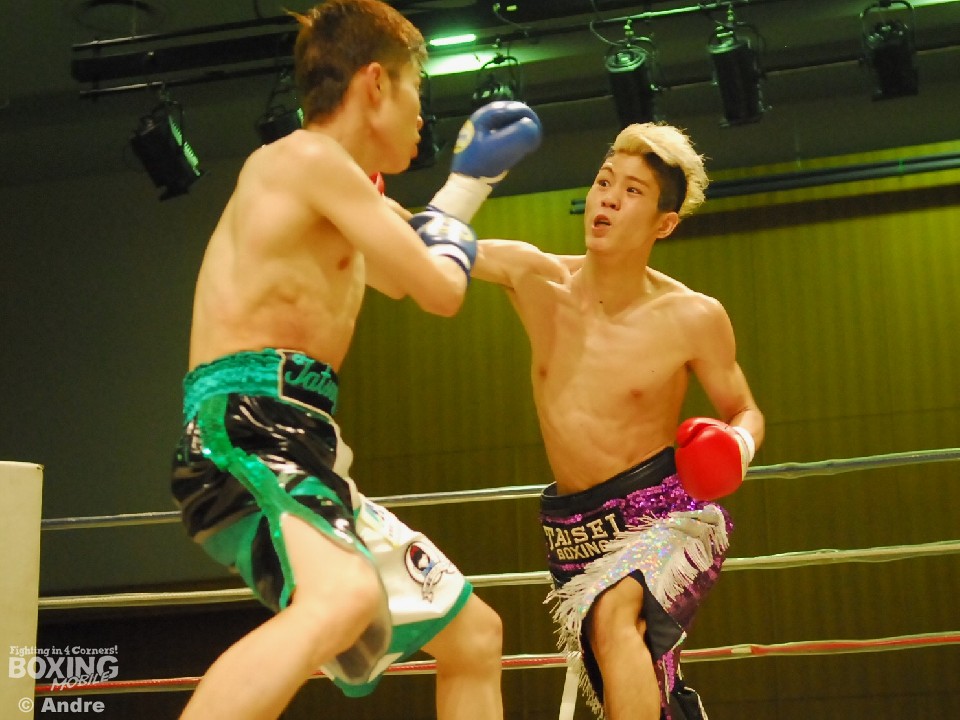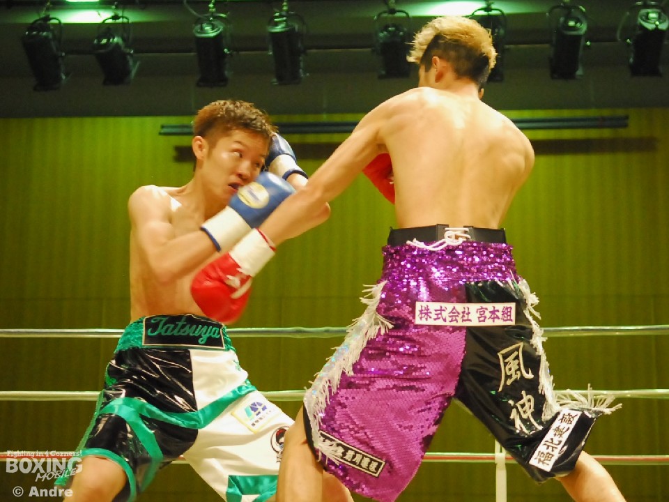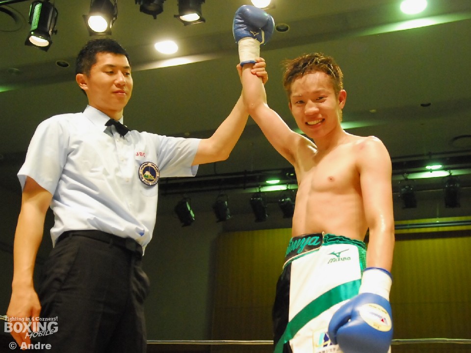 試合: 体格で勝る原口はジャブから踏み込むと右を打ちおろす。対して、寺田はフェイントを使いジャブを突き上げると右のオーバーハンドを振るう。最終ラウンド、クリンチした寺田を倒し原口が減点1を宣告される。長身の相手にアグレッシブに試合をコントロールした寺田が判定勝利。
