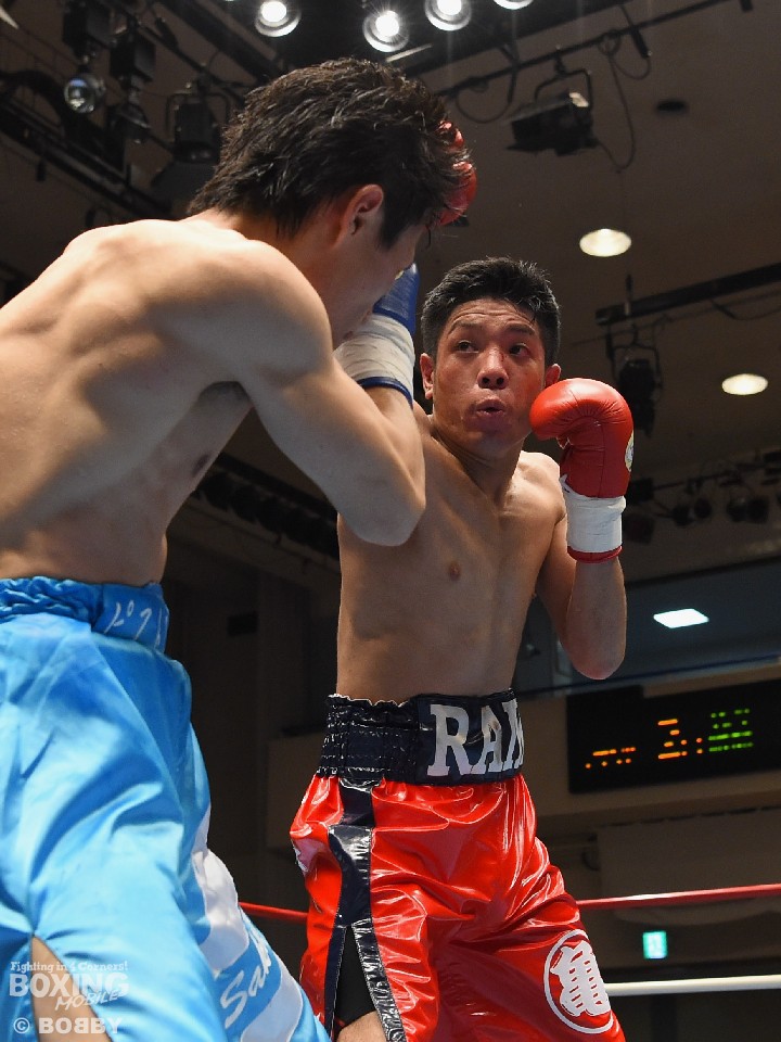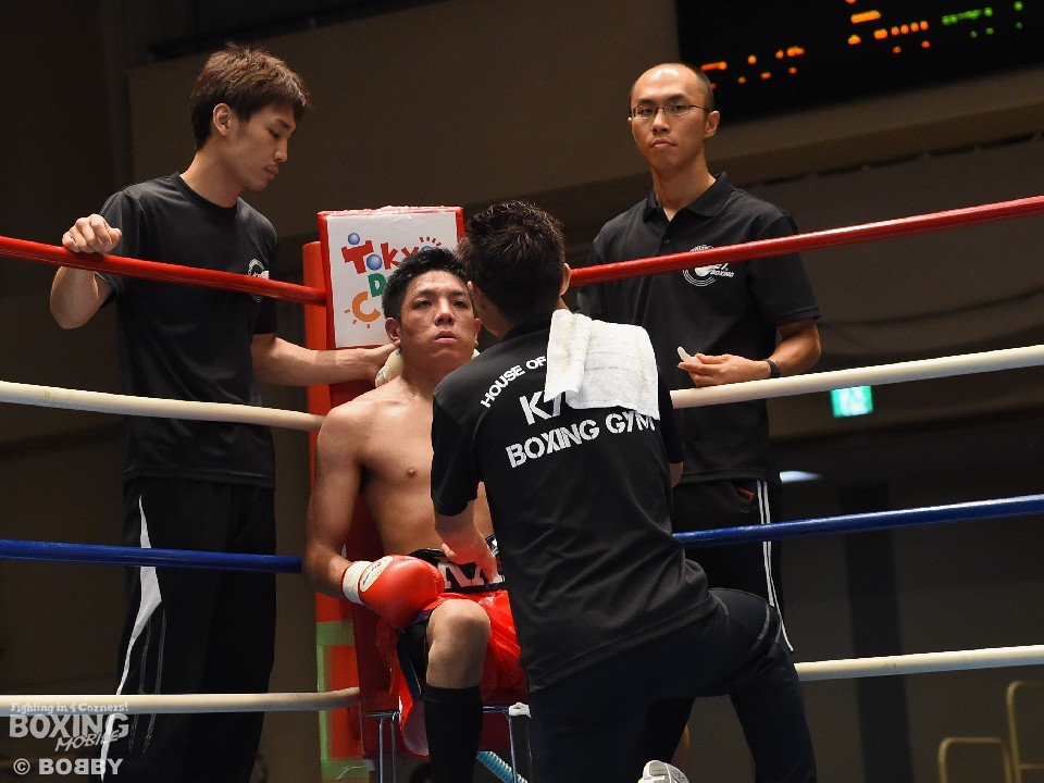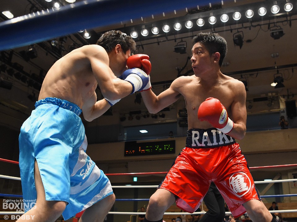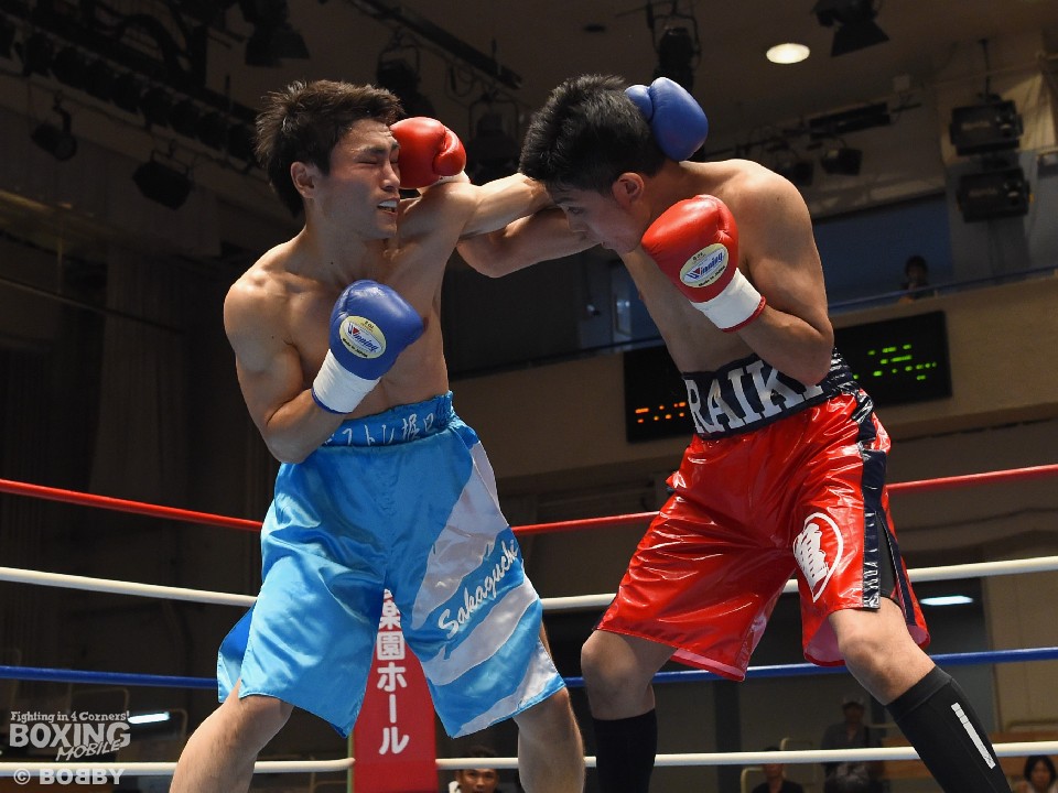 試合:亀山の懐に入りたい坂口だが、サウスポー相手に正面から行き過ぎてしまい早くからワンツー、フックを被弾。それでも下がらずに亀山を打ち合いに引きずりこむと右クロス、左フックを返し腰を落とした。2R、亀山はジャブを突いて坂口の前進を止めにかかるが、右クロスをカバーしきれずに顔を腫らせてしまう。以降も坂口のプレスに苦しんだ亀山だが、ジャブから左ストレートのヒットで上回り判定勝ち。