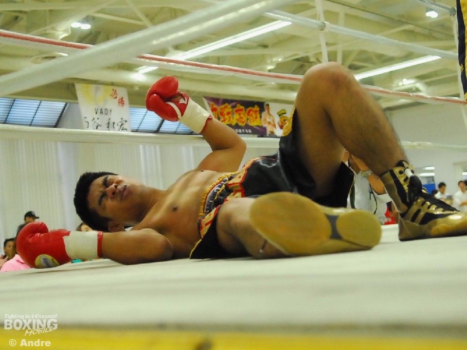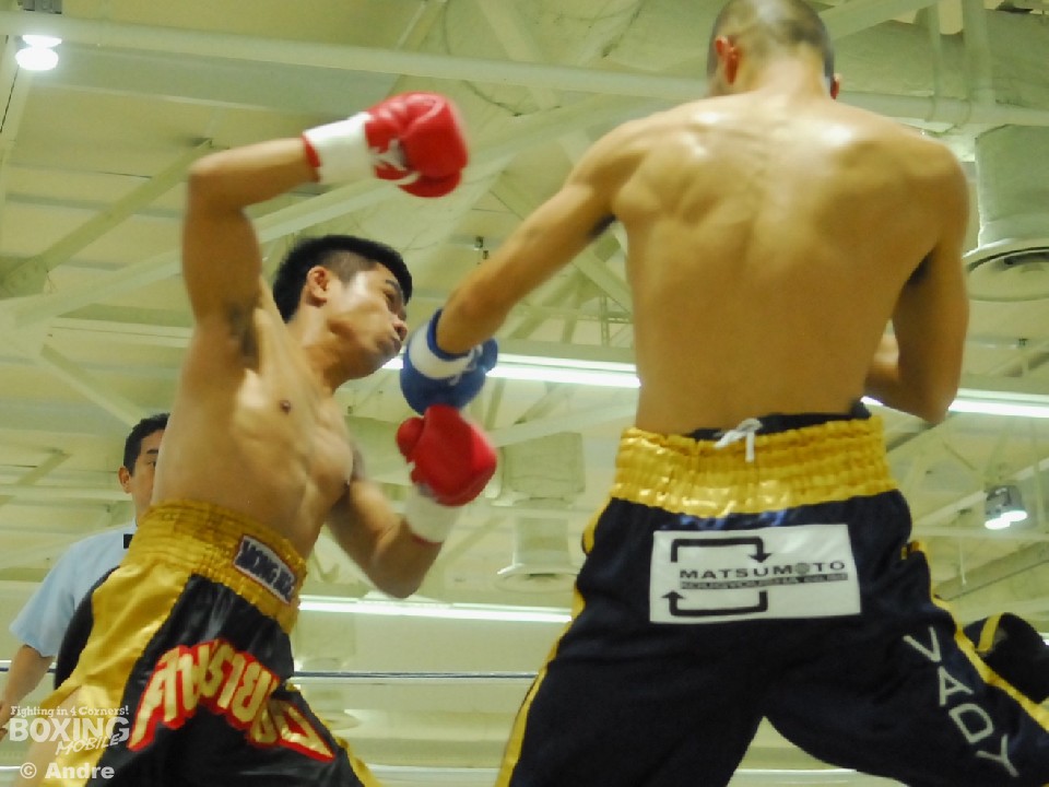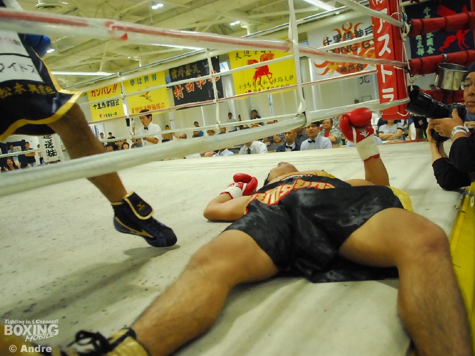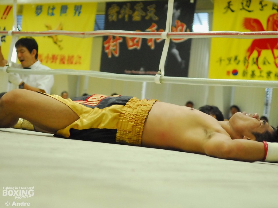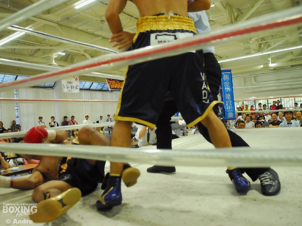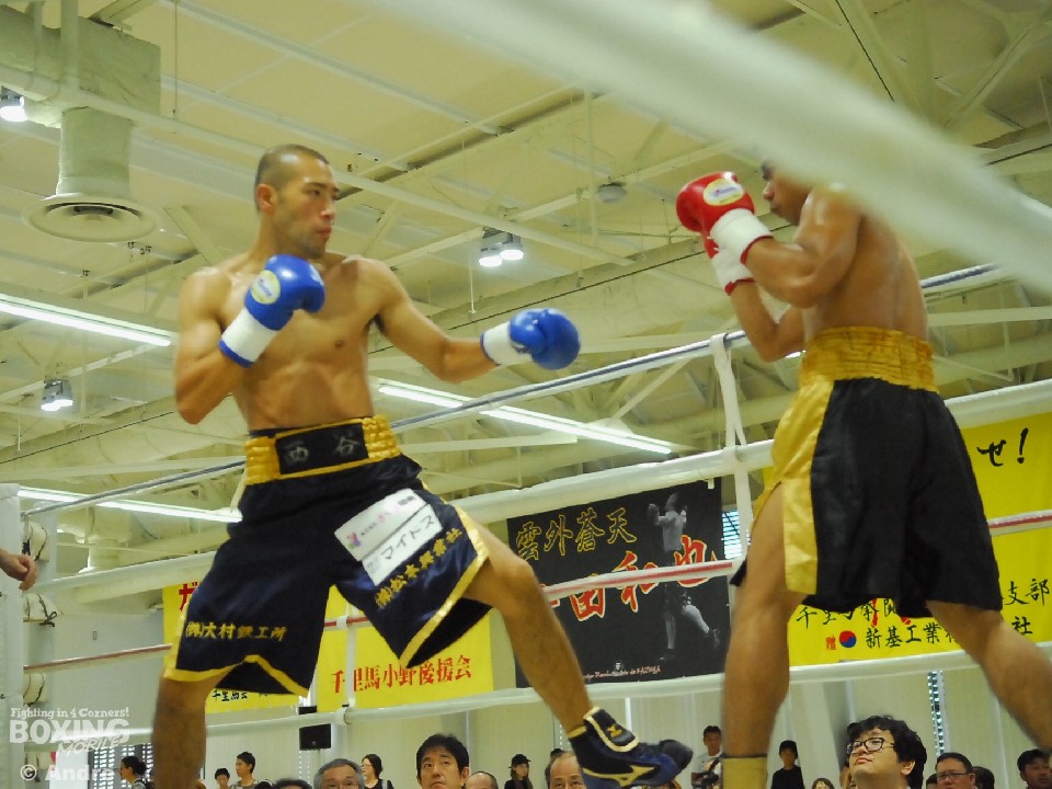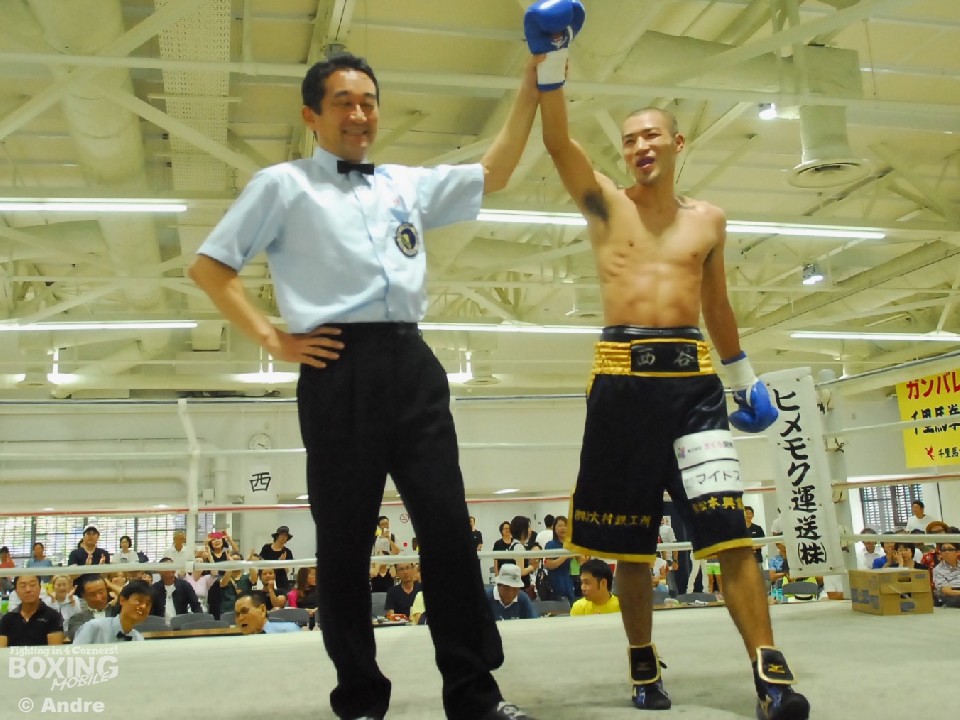 試合:体格で勝る西谷は長い右アッパーを起点に左右のボディをあてていく。対して、ルンナコーンは西谷との距離を詰めると右を伸ばす。2ラウンド、ラッシュをしかけた西谷は3度のダウンを奪うと、4度目にストップ狙いのラッシュを仕掛けレフェリーストップを呼び込んだ。その際割って入ったレフェリーにも西谷のパンチが当たりレフェリーもダウン。幸いレフェリーはすぐに立ち上がった。