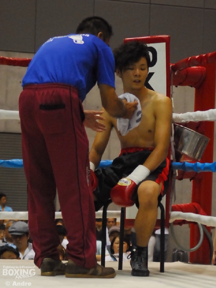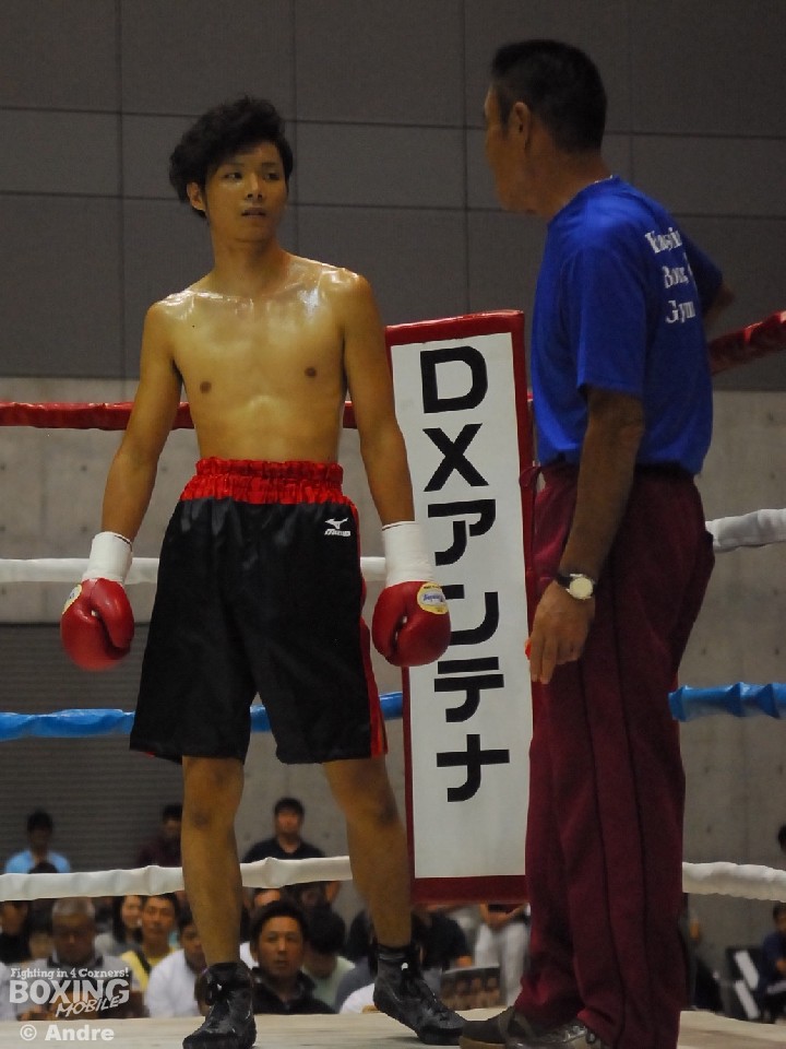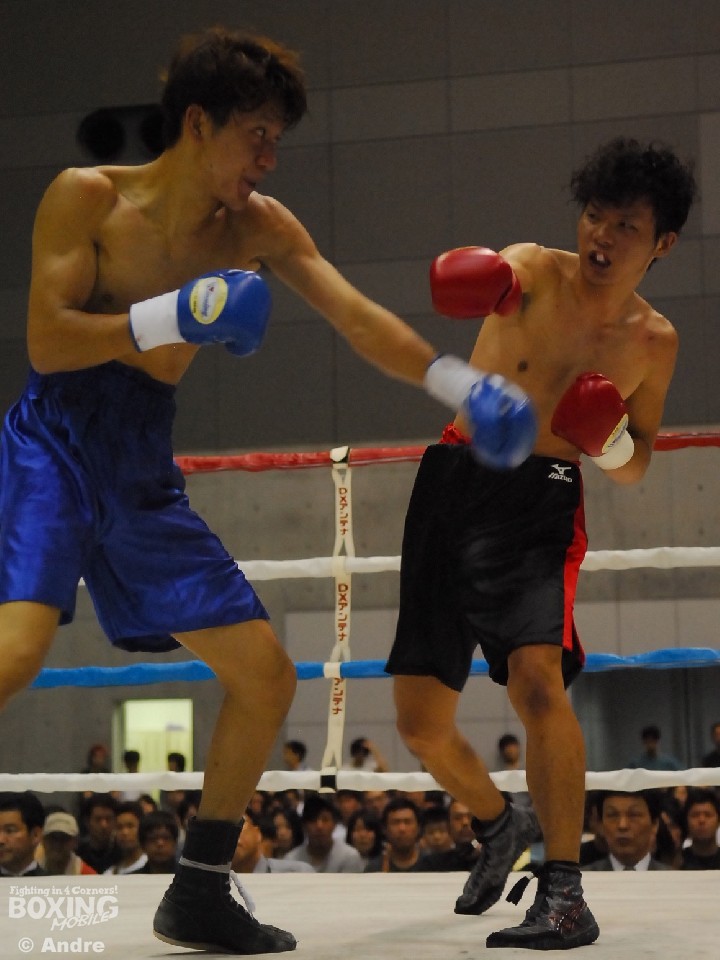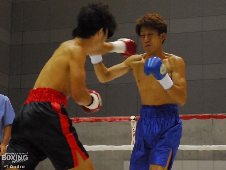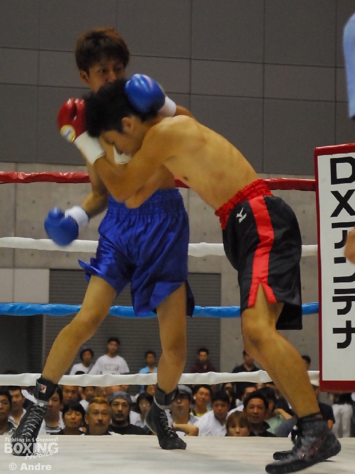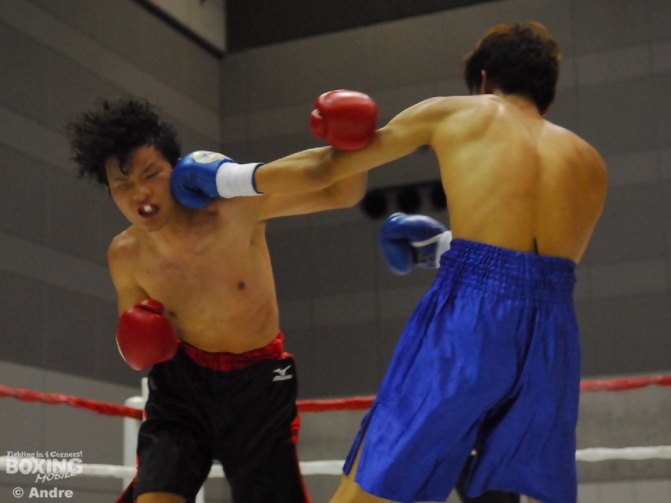 試合: サウスポーの港はワンツーから左ボディを伸ばす。対して、デビュー戦の藤原は左フックからカウンターの右を狙う。大振りながら各所で有効打を打った藤原がデビュー戦を見事に判定で勝利した。