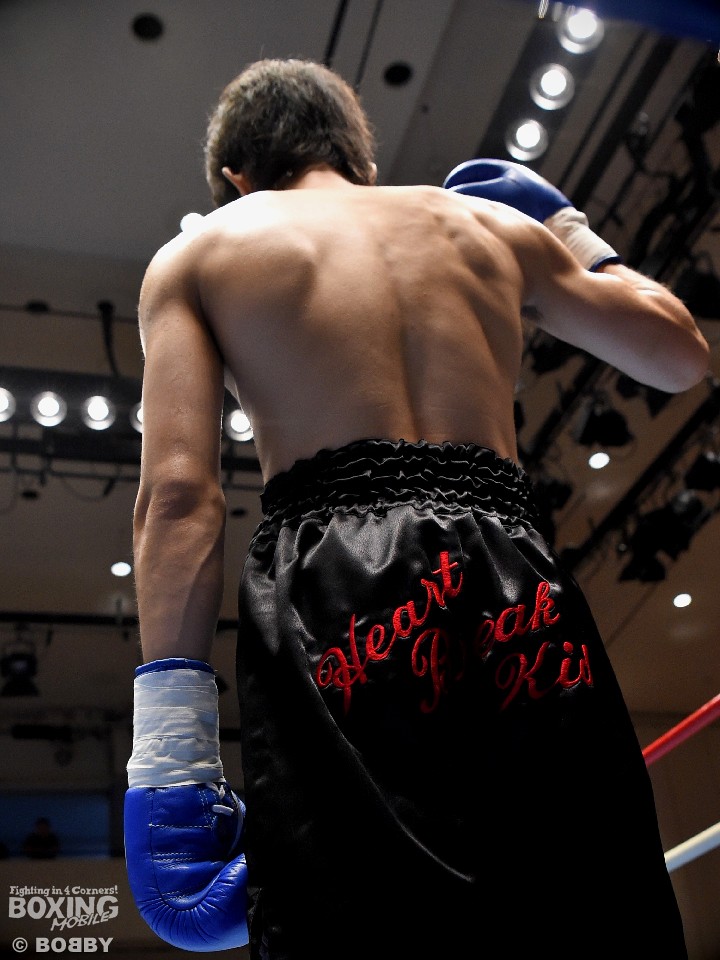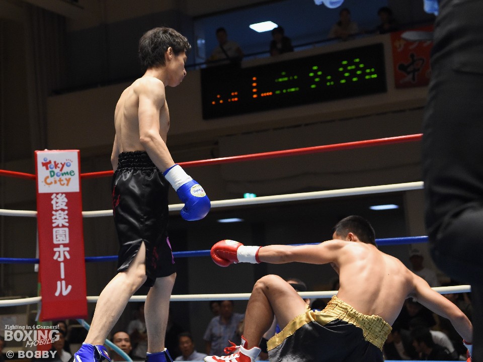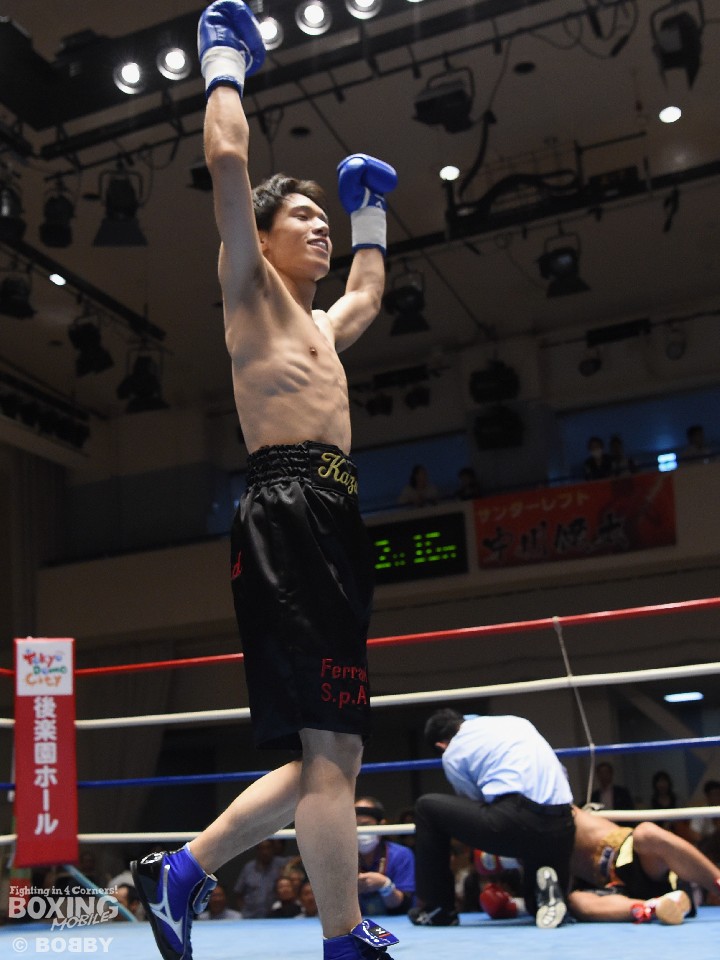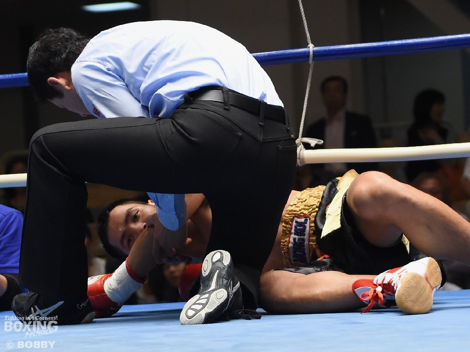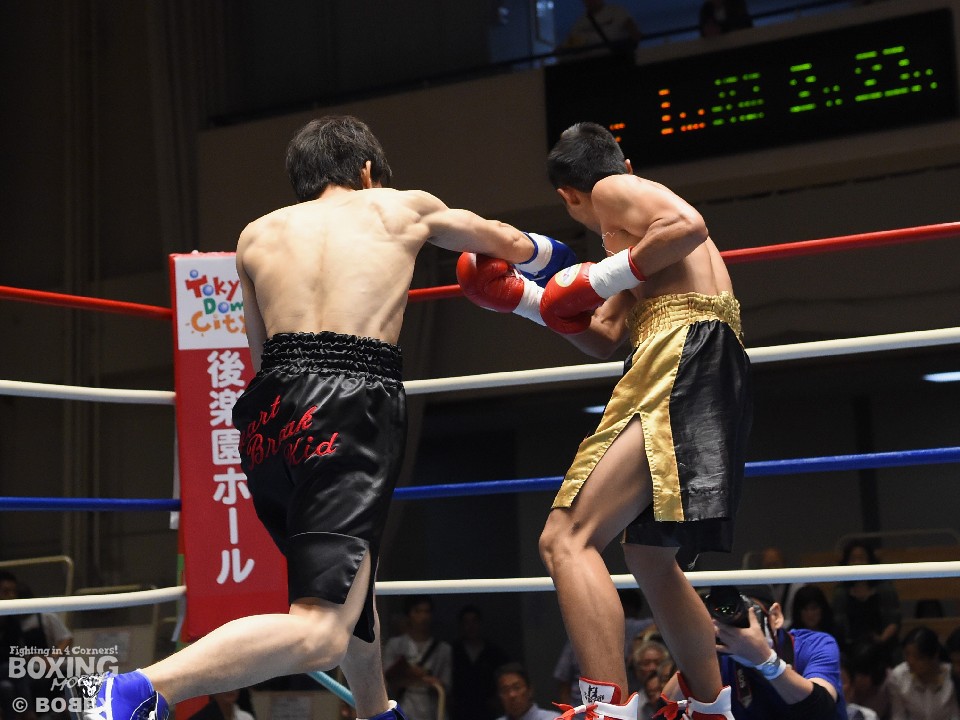試合:開始からプレスをかけた中根が右フック一発でタイ人を撃沈。起き上がれないトーンを見てレフェリーがカウント途中でストップを宣告した。