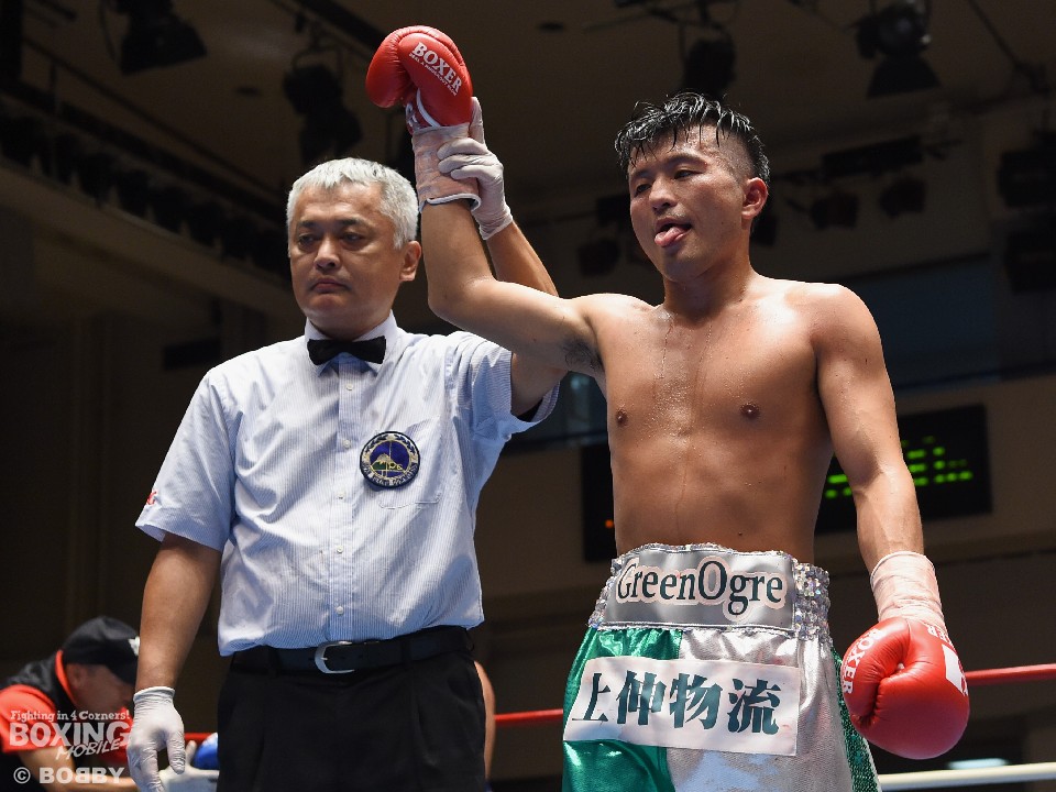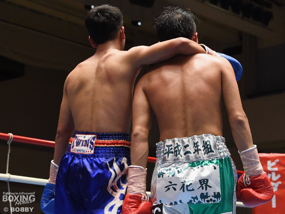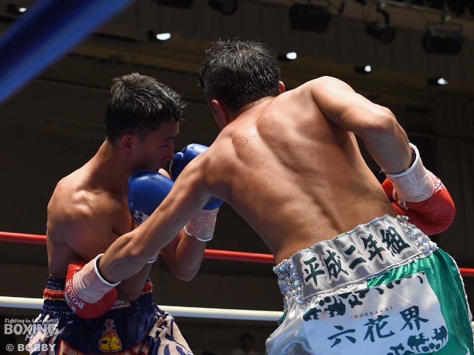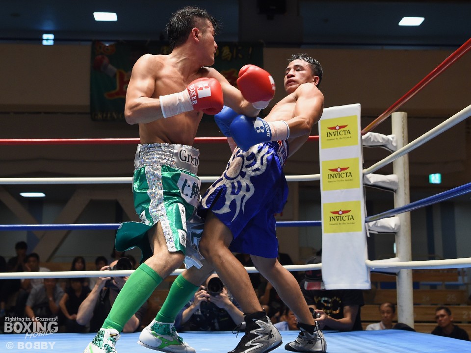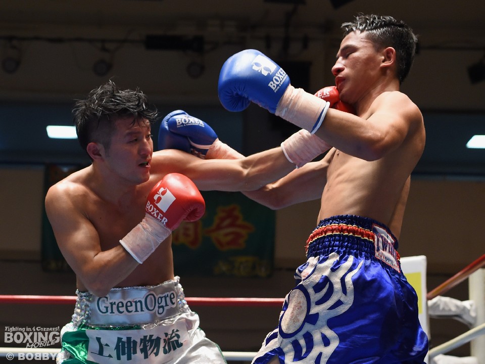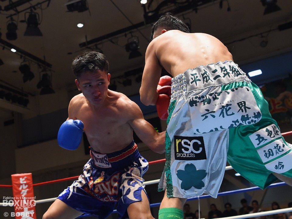 試合:初回、上田がガードを高く上げて圧力をかけると左ボディを好打して早くも主導権を支配。2回、クルンシンのジャブになかなか懐に入れなかった上田だが、2分過ぎに左フックで腰を沈めさせる。3回、勝負を決めにいきたい上田は前に出るが、パンチが大振りになってしまい打ち終わりにクルンシンの右ストレートをもらってしまう。5回、クルンシンは距離を取って上田の攻撃を遮るとジャブでヒット。最後までしつこく追いかけた上田だったが、クルンシンを捕まえることができなかった。前半の貯金を守った上田が判定勝ちでA級昇格を決めた。