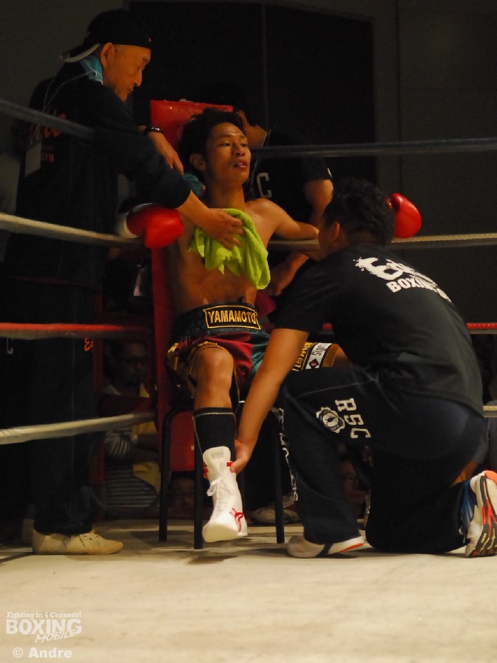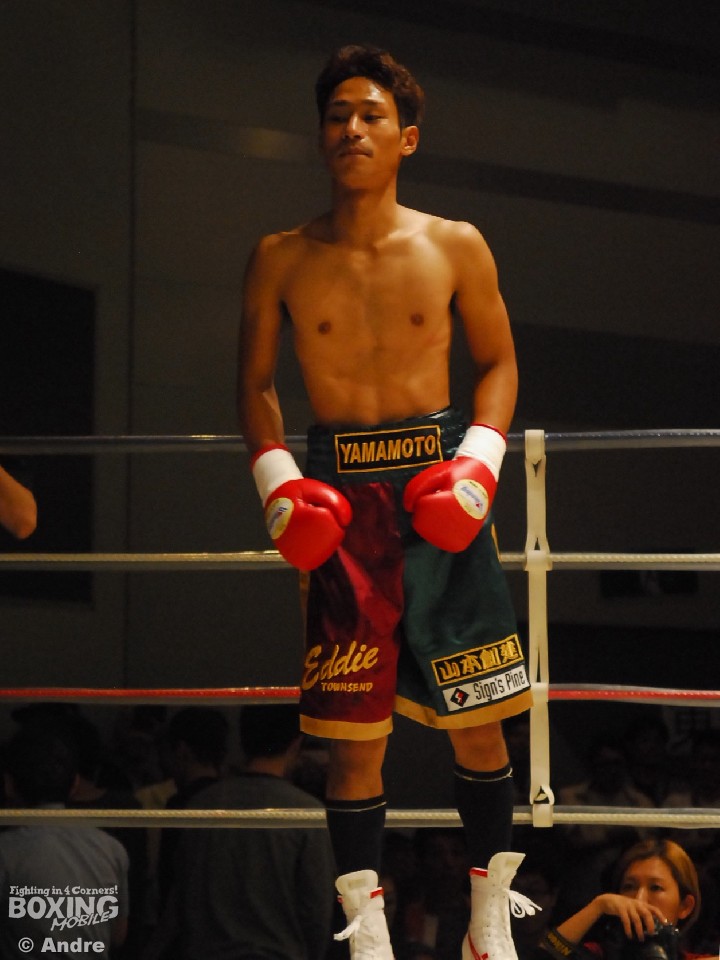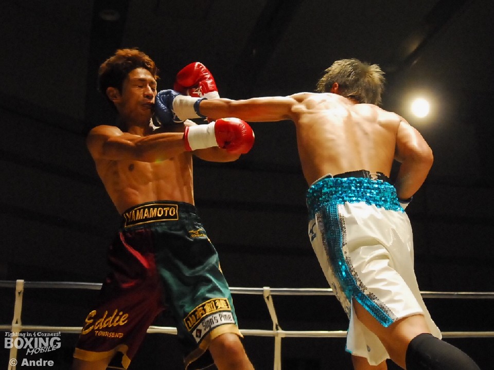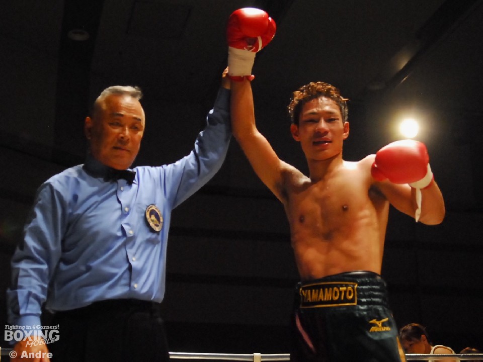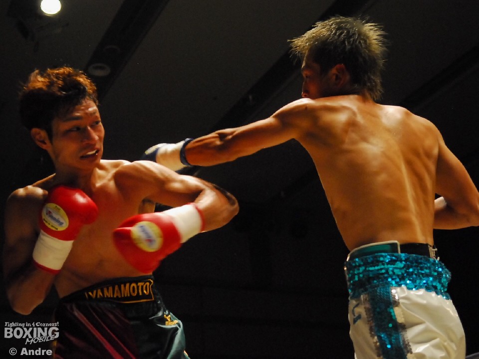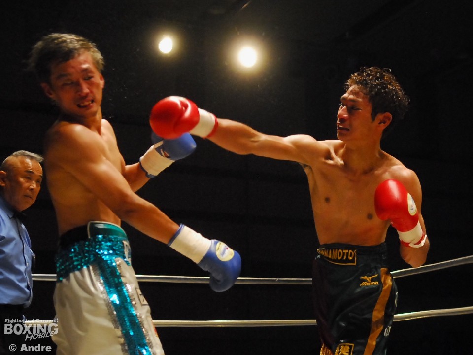 試合: サウスポーの河村は左ストレートをボディに決めていく。対して、山本はジリジリとプレスをかけるとタイミングを外したジャブをあて、右ストレートを伸ばす。3ラウンド、距離の噛み合った両者は足を止めて大きなフックの打ち合い。4ラウンド中盤、河村の打ち終わりに山本の右ショートが決まり河村がダウン。しかしここはダメージを残しつつ立ち上がった河村はこのラウンドを凌ぐ。中盤、河村は左ボディストレート連打する。山本も左フックを起点に応戦。終盤、気持ちの勝負となったこの試合、1000人の観客を沸かせるパンチの交換。序盤奪ったダウン、精度に高いパンチがやや上回った山本が判定勝利。
