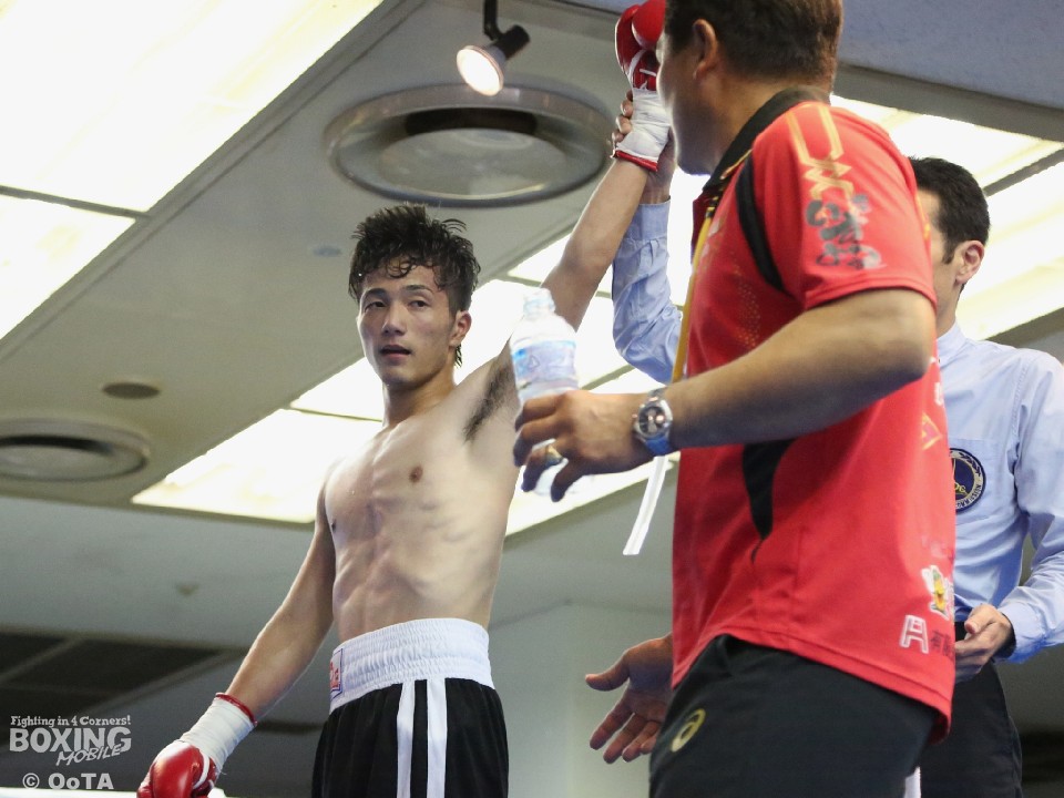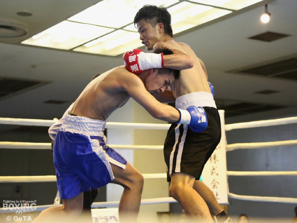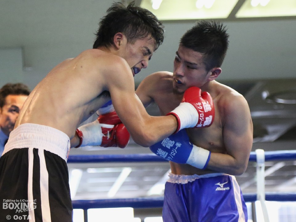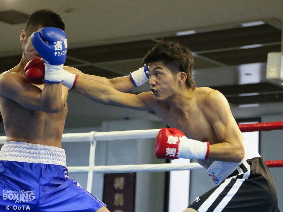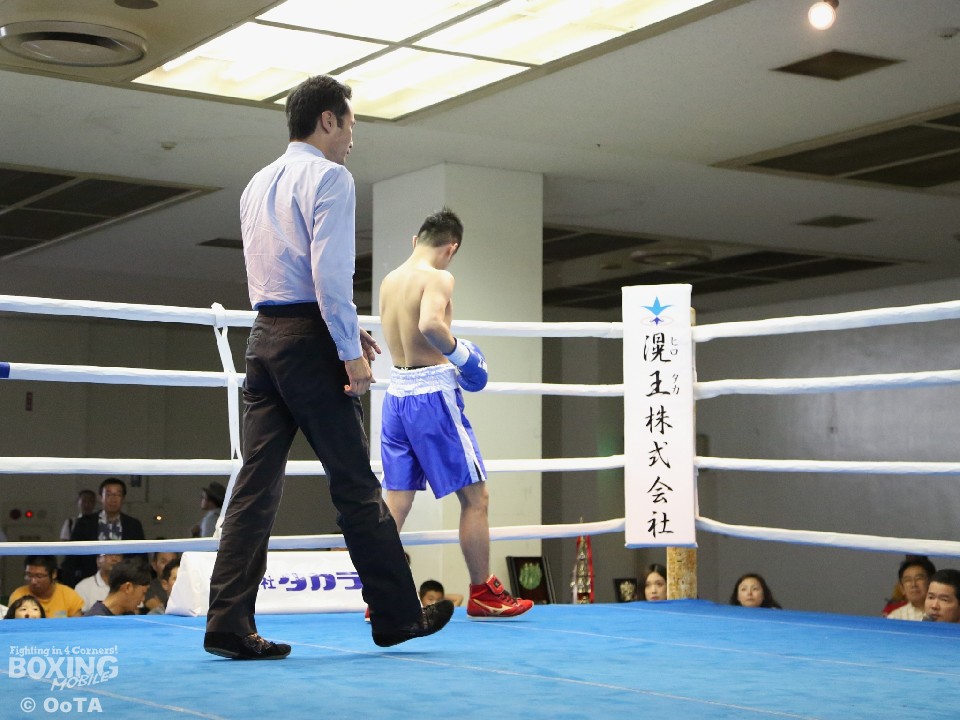 試合:両者距離を計りジャブで煽り合うスタートを切ると、山城が1ラウンド中盤で右のクロスを好打させ今村のバランスを崩したが、追撃のパンチが後頭部へと当たってしまい今村にインターバルが与えられた。2ラウンドには右ストレートを打ち込む山城がペースを握ったが、ここは今村も引かずに左フックで迎え撃つ。一進一退のまま進んだ3ラウンド、左フックを振り抜いた今村が山城をロープへと追い込みチャンスを作るが単発に終わり詰めきれない。決定打を欠いたまま迎えた最終ラウンドは、互いに積極的に手を出し合うも結果は判定へ。有効打で流れを譲らなかった山城が勝利した。