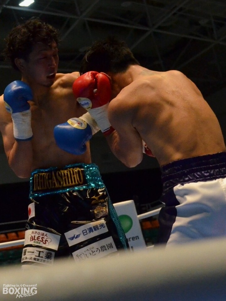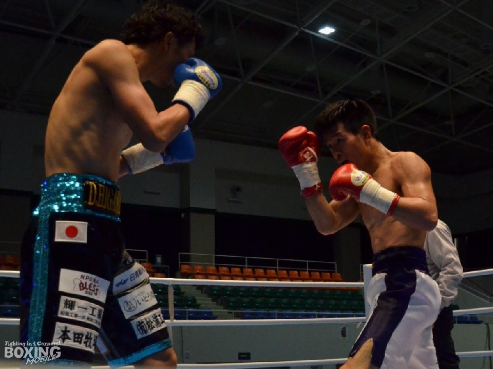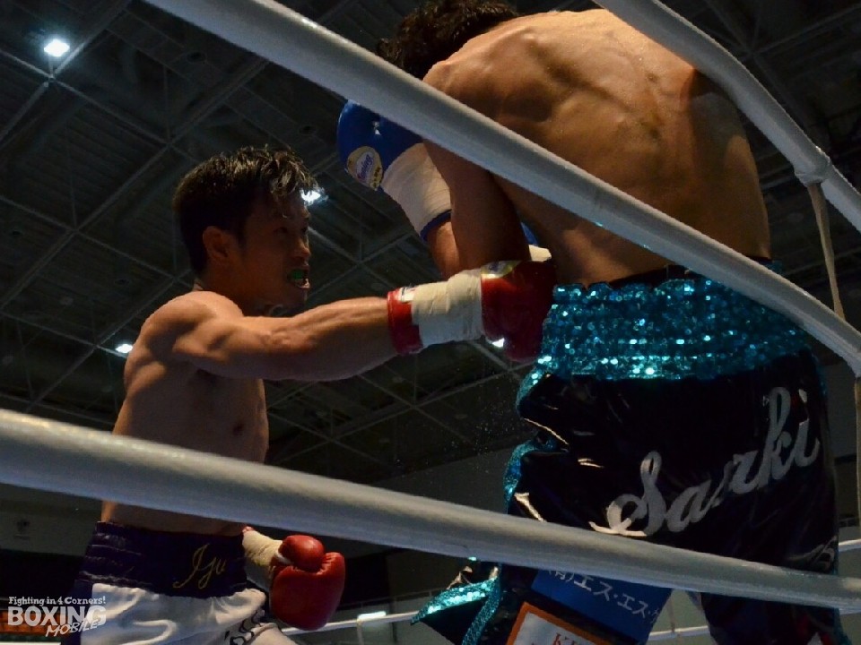 試合:ジャブを丁寧に突き、足を使いながら攻撃を組み立てる佐々木の動きを徐々に見極めた伊集は1R終盤、タイミングを合わせて好打し始めた。伊集の右が佐々木をとらえた3R、一気にコーナーへ詰めると強烈な右ボディストレートでダウンを先制。伊集は更に左ボディを効かせて追加のダウンを奪う。佐々木はダメージが深く、立ち上がれず、レフェリーは試合を止めた。