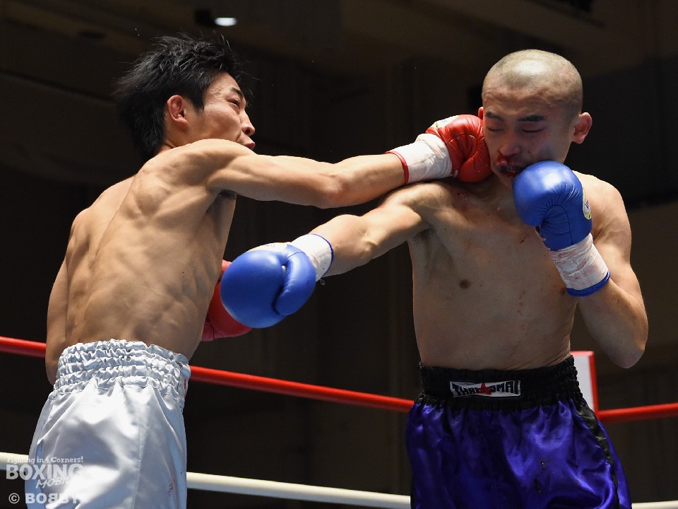 試合:ガードを固め前に出る小川が左フックから右クロスを返し、立ち上がりを優位に進める。今淵も懸命に応戦するが、手数で差がついてしまい下がってしまった。2回は今淵がワンツーで先に仕掛けるが、小川にジャブ、ストレートを効かされてしまいラウンド終盤に左フックを浴びダウン。この回は持ちこたえたが、続く3回も小川の圧を受け止めきれず、被弾が目立ってしまった。それでも気持ちを切らすことなく手を出し続けた今淵だが、最後まで流れを変えることはできずに終了のゴングを聞いた。