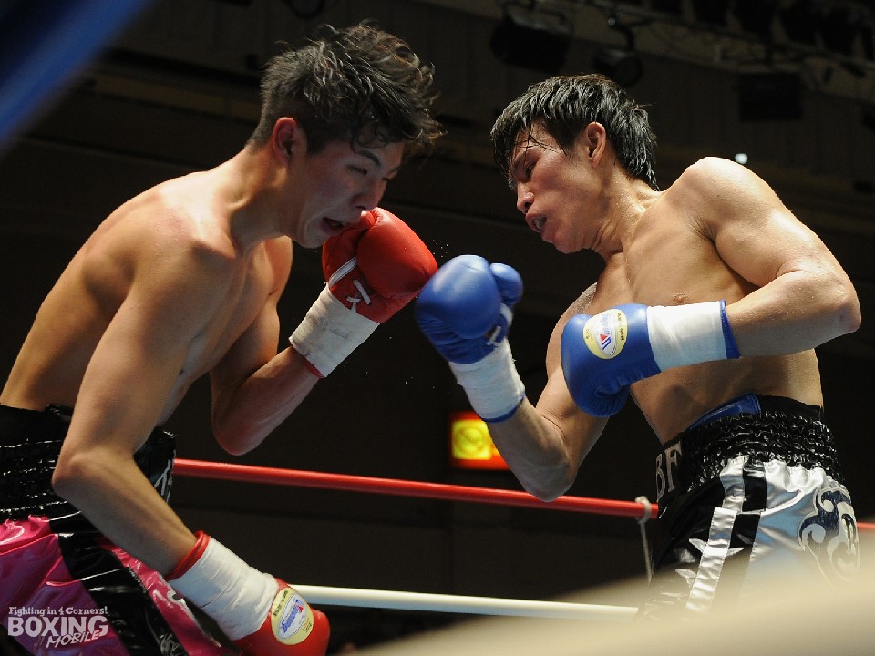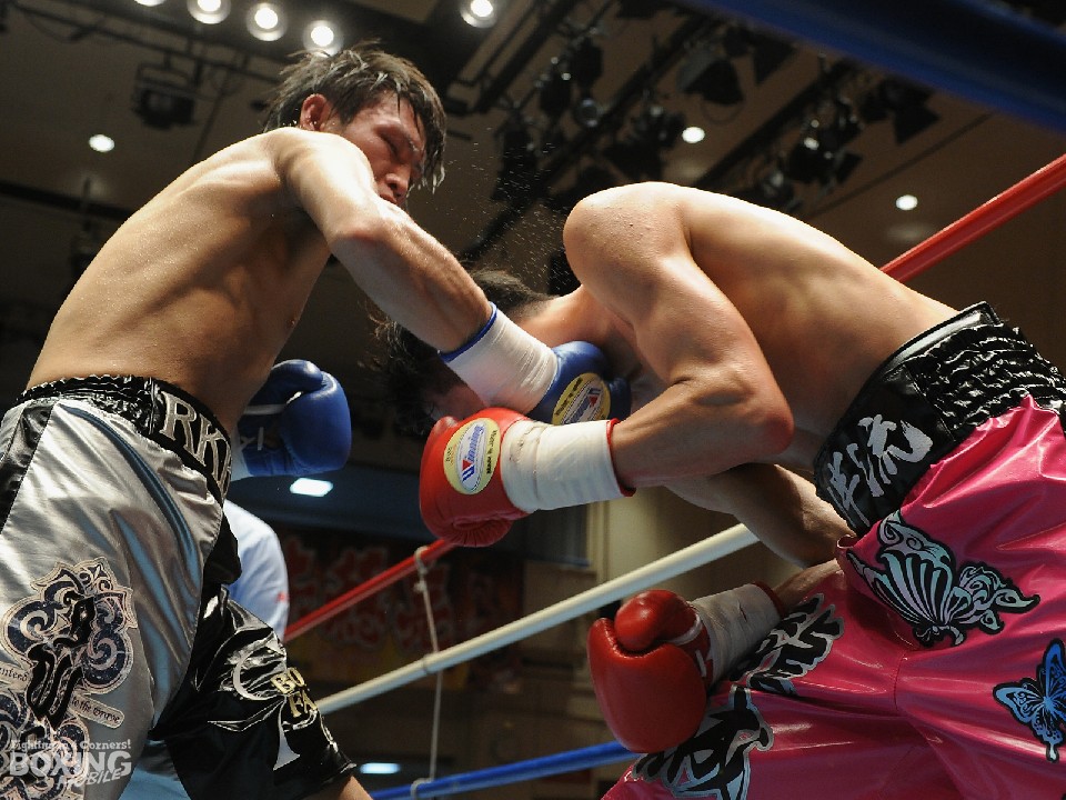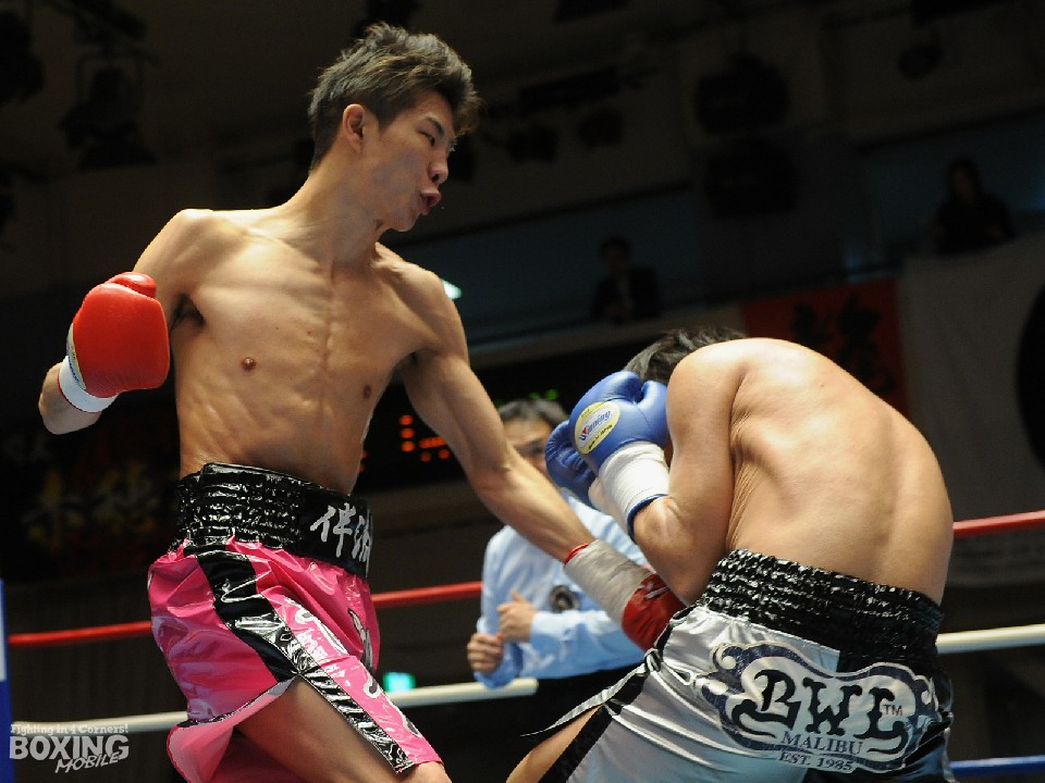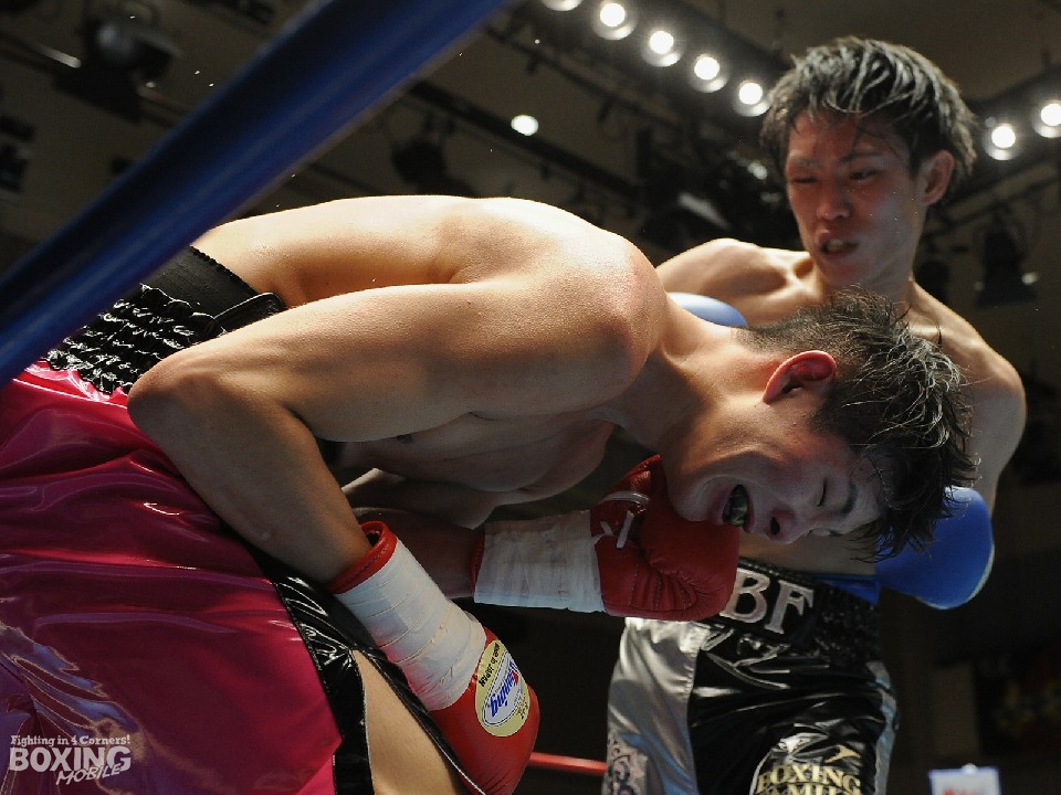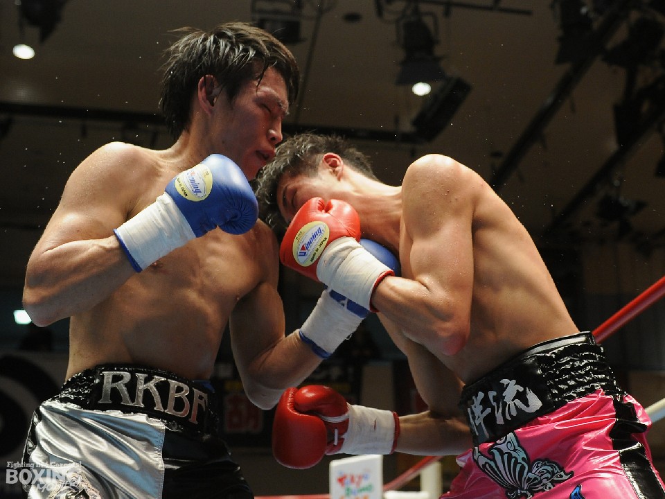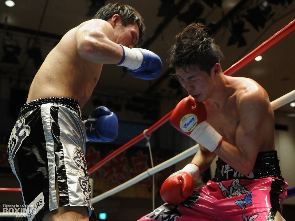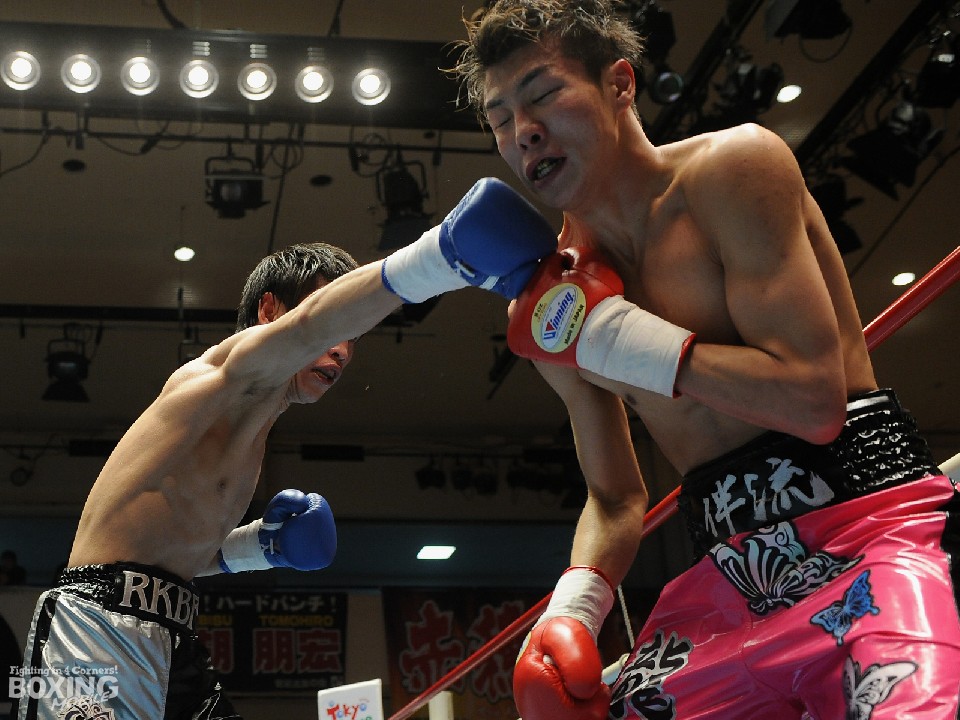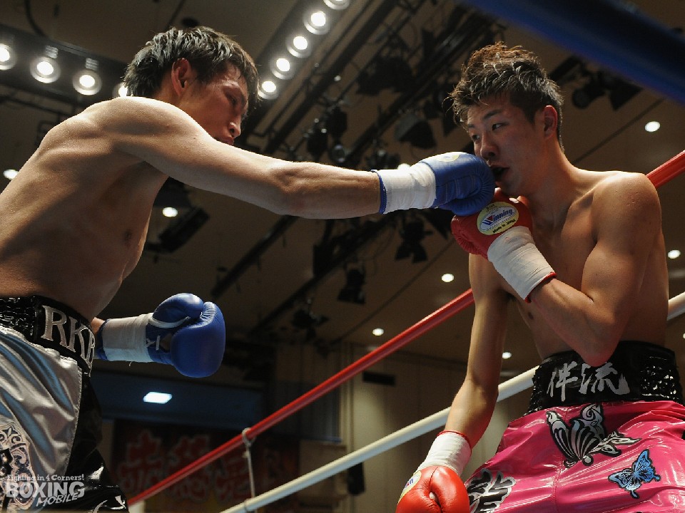 試合:サウスポー石井は右手を下げてサークリングしながらノーモーションの左を放つのに対し、アマ60戦のキャリアでB級デビューした田中はガードを上げてジリジリと距離を詰める。軽快なフットワークで被弾を回避した石井は左ストレートで先制のダウンを演出。続くラウンドも田中が前に出て石井が迎え撃った。3回、田中は距離を縮めて細かい連打で迫るが、石井はダッキングで交わして左をヒット。石井は右腕を痛めたのかダラリと下げて距離を取るようになる。4回、田中のしつこい前進が功を奏し、連打で攻勢を仕掛けるとレフェリーが石井を抱きかかえた。田中が逆転KO勝ちで初陣を飾った。