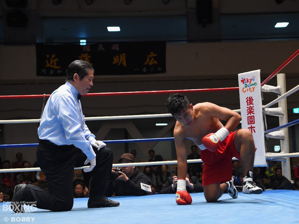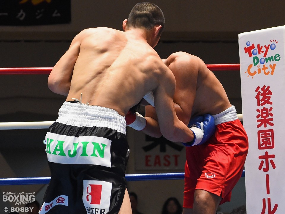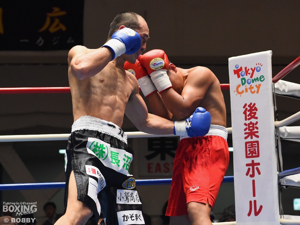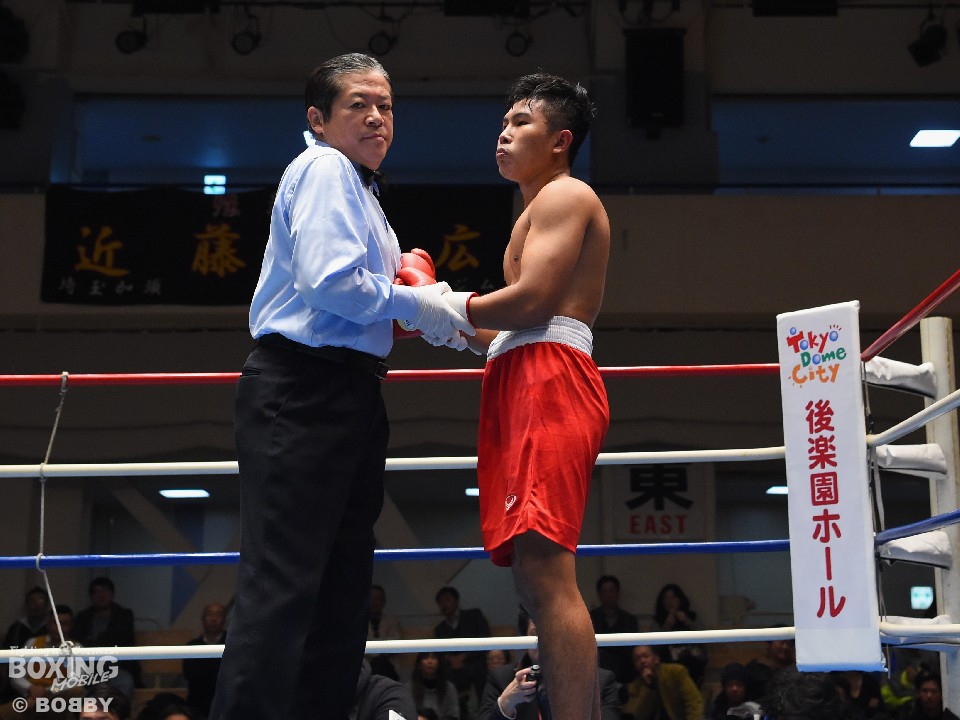 試合:9月の決定戦でWBOアジアパシフィック王座を獲得した近藤がメインに登場。初回、18歳のタイ人選手にジワジワとプレスを掛けた近藤は、ジャブを散らしロープに詰めては左ジャブ、右ボディをヒット。早くも相手の顔を歪めた。ガードを固めたパランペッチも近藤の打ち終わりにボディから上に強打を返し、接近戦ではアッパーも見せたが、力量差は歴然。2回まで慎重に試合を進めた近藤は、3回に入るとペースを上げ、左ボディから左右をまとめダウンを連取。10カウントのKO勝ちを決めた。試合後、近藤は「来年は強い相手とやっていきたい」と抱負を語った。