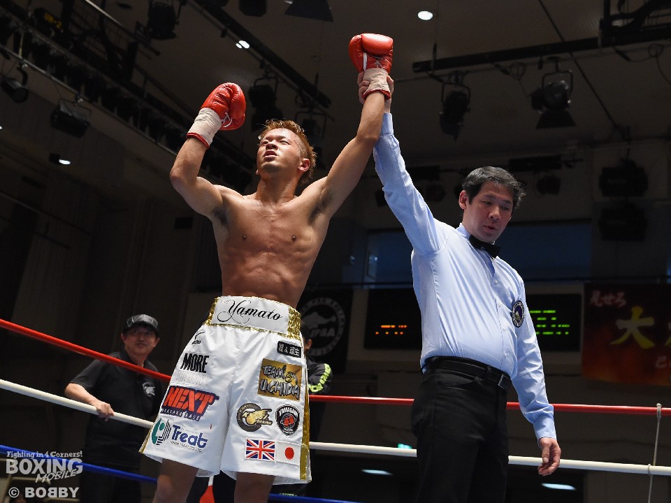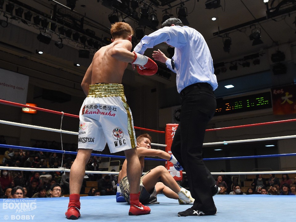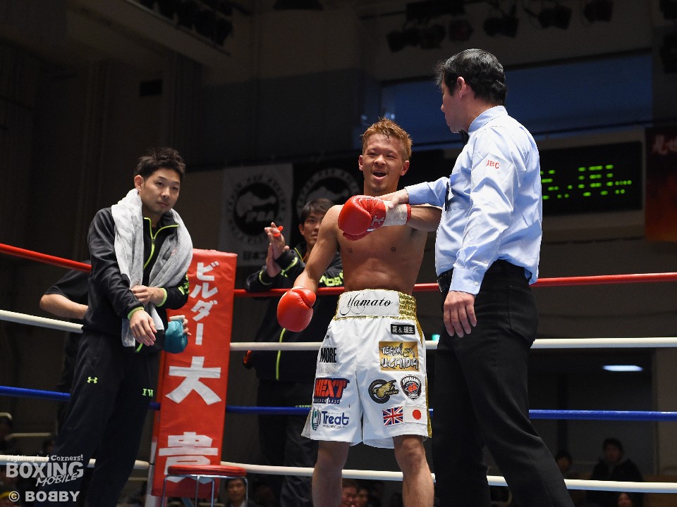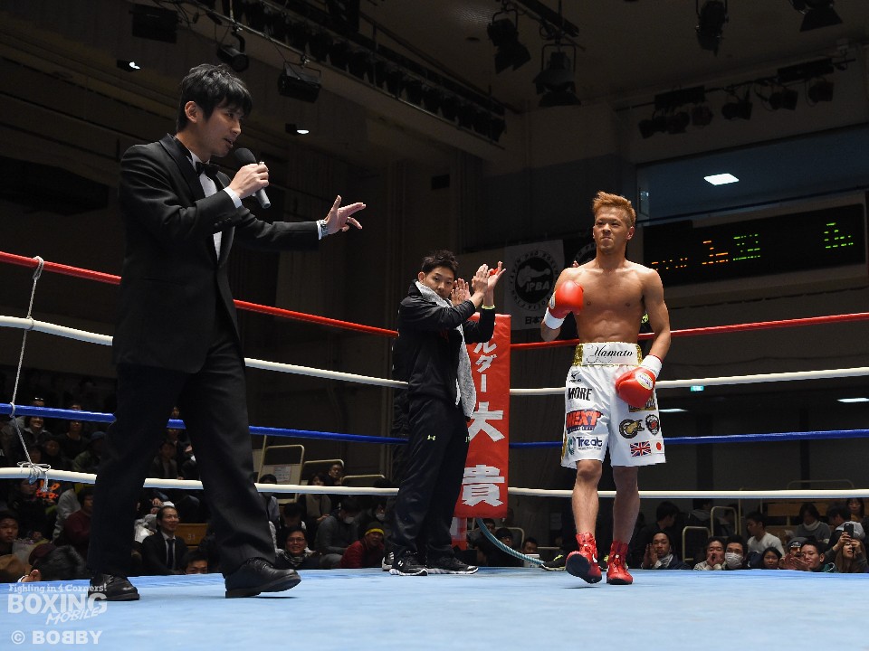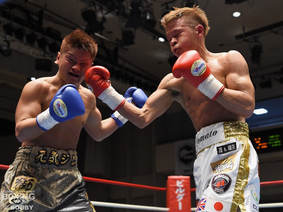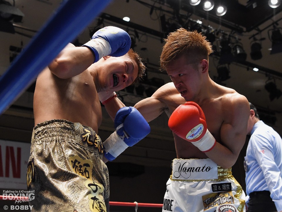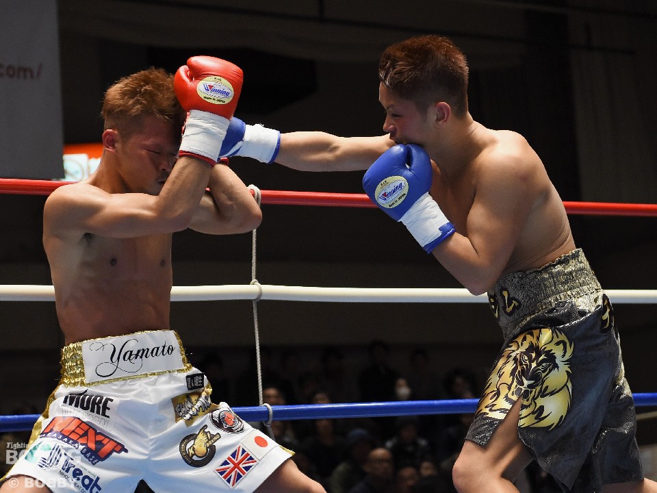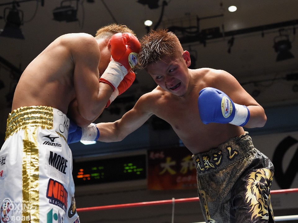 試合:互いに頭を振りながら上体を低く前に出る。しばらく押し合いが続き、先手の加藤が僅かに上回っていたが、2回後半に佐藤の右をもらい倒れてしまった。ダメージはなく以降も体ごと前に出ては押し続けたが、有効打は佐藤が上回り判定勝ち。デビュー戦で勝利を飾った。