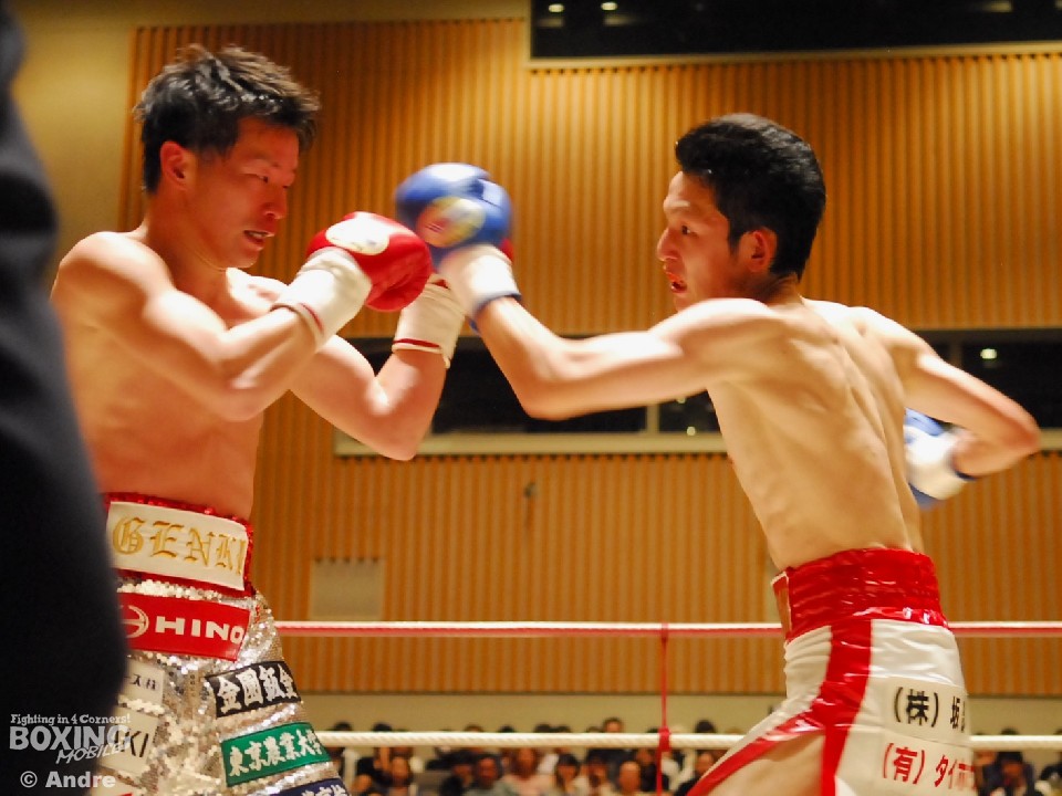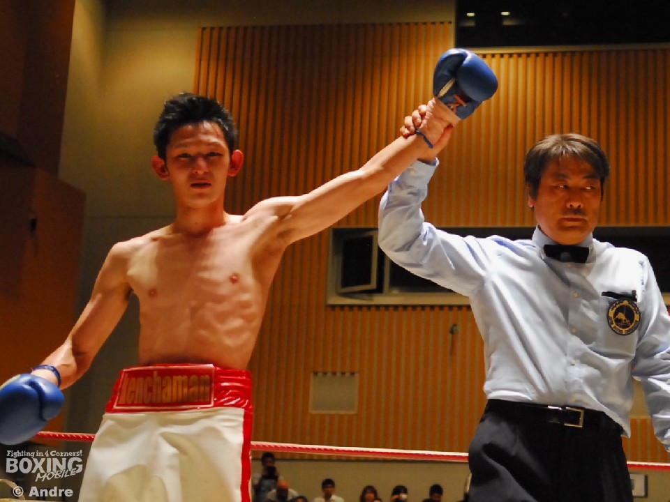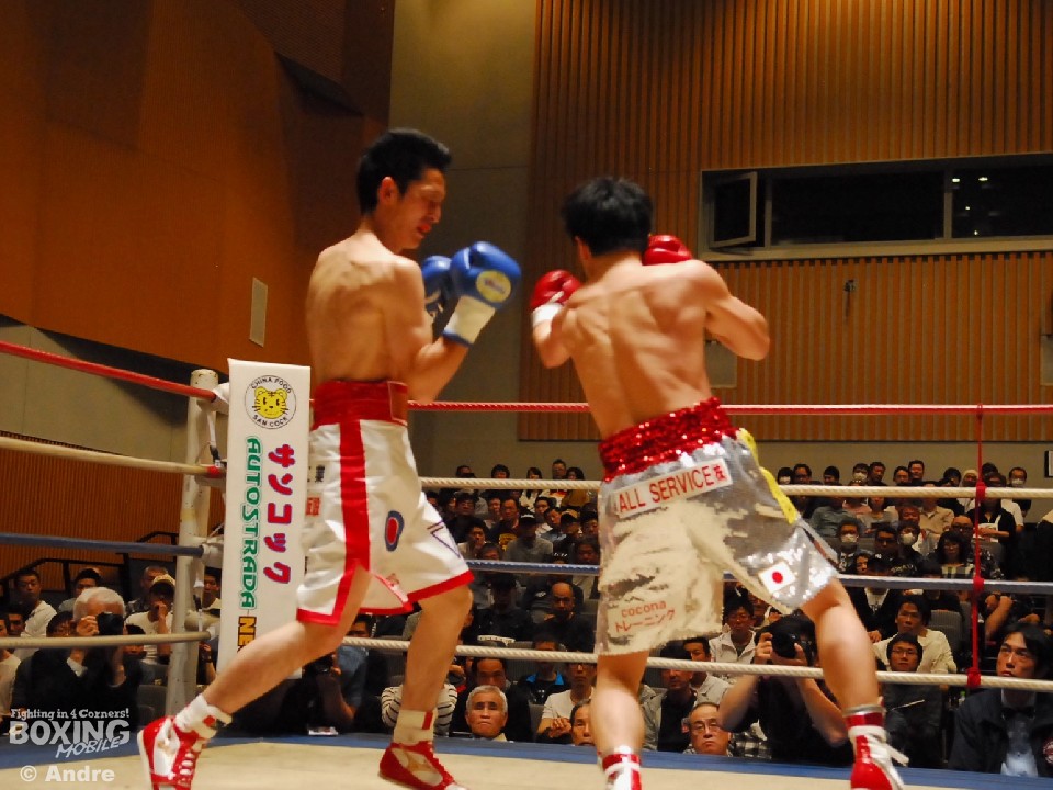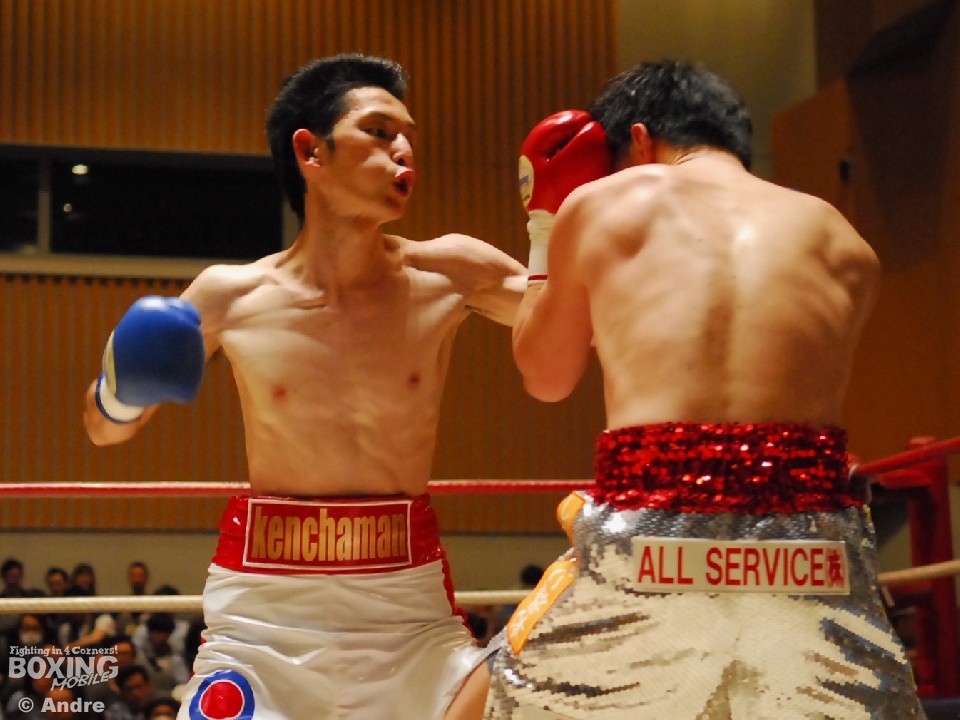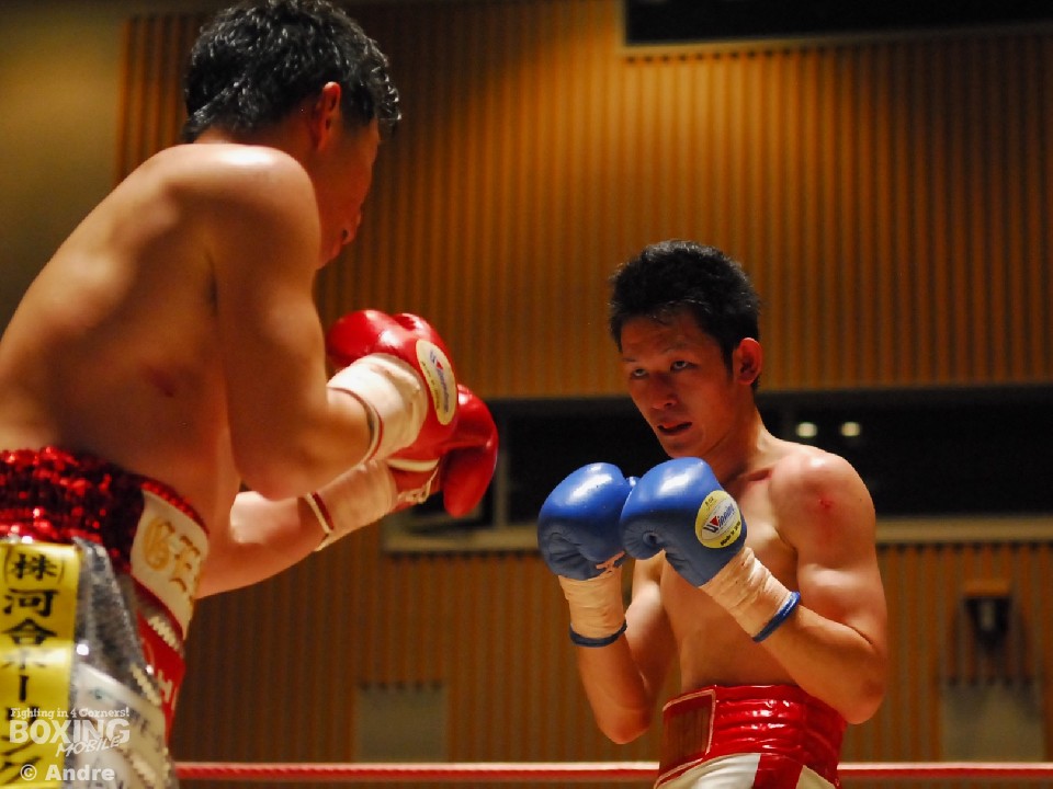 試合: 日本2位の華井の再起戦。序盤、松井が猛然と前に出ると左右の大きなフックを振るう。ガードを固め、上体を振ってワンツーから組み立てる華井が一歩も下がらず迎え打つ。独特なリズムでジャブから距離を作る松井は多彩な左をみせる。華井は左ジャブから左フックあてペースを取りにいく。中盤、大振りが目立つ華井に細かいパンチで応戦する。3ラウンド中盤、松井左フックで華井がダウン。立ち上がった華井はゴングに救われる。ジャブを起点にペースを作る松井が距離を掌握。長いジャブを上下に散らす松井はペースを渡すことなく後半もポイントを重ねた。華井はワンパンチに力を込めるもヒットさせることができない。最終ラウンド、左右のボディを連打であてた華井が形勢逆転をはかる。判定で松井が勝利を収めた。