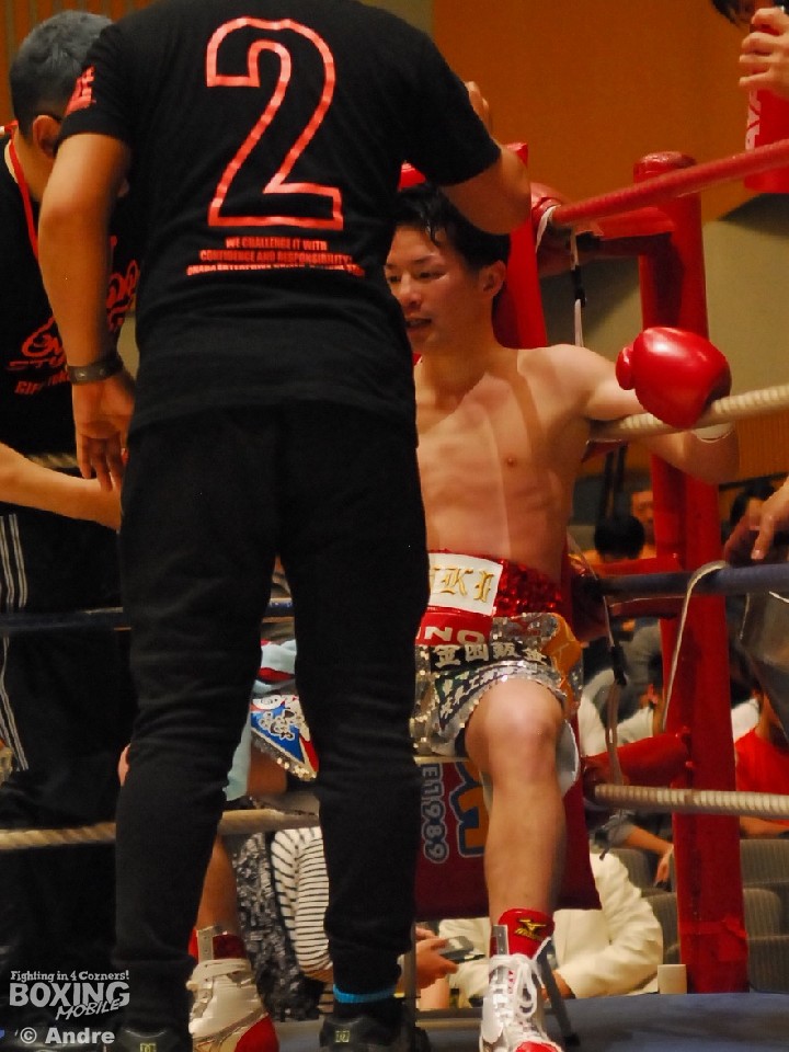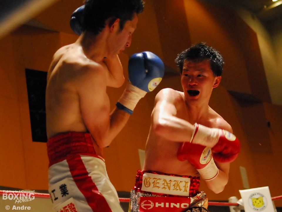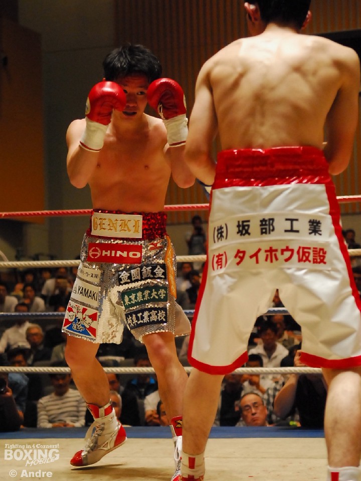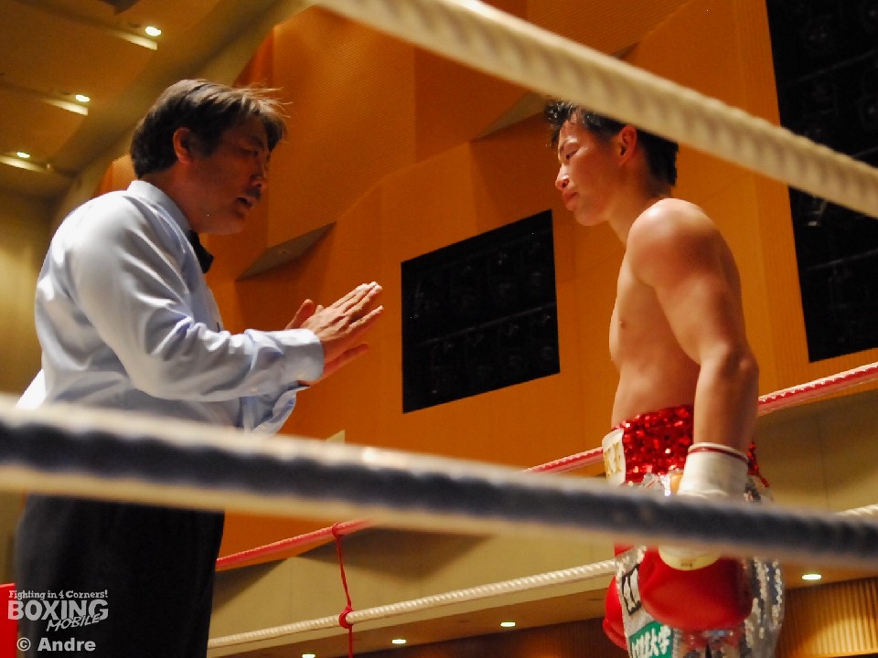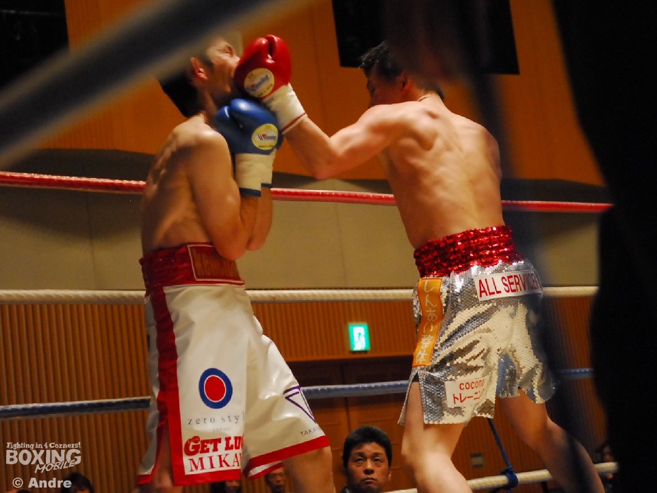 試合: 日本2位の華井の再起戦。序盤、松井が猛然と前に出ると左右の大きなフックを振るう。ガードを固め、上体を振ってワンツーから組み立てる華井が一歩も下がらず迎え打つ。独特なリズムでジャブから距離を作る松井は多彩な左をみせる。華井は左ジャブから左フックあてペースを取りにいく。中盤、大振りが目立つ華井に細かいパンチで応戦する。3ラウンド中盤、松井左フックで華井がダウン。立ち上がった華井はゴングに救われる。ジャブを起点にペースを作る松井が距離を掌握。長いジャブを上下に散らす松井はペースを渡すことなく後半もポイントを重ねた。華井はワンパンチに力を込めるもヒットさせることができない。最終ラウンド、左右のボディを連打であてた華井が形勢逆転をはかる。判定で松井が勝利を収めた。