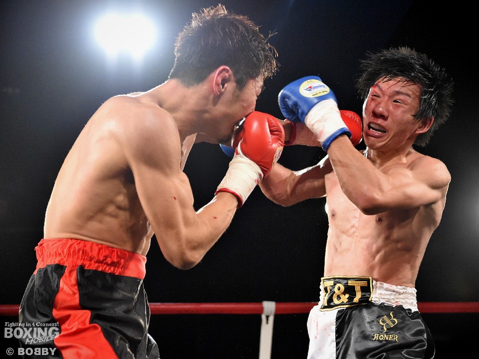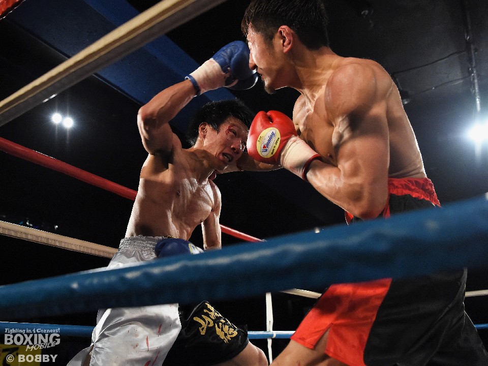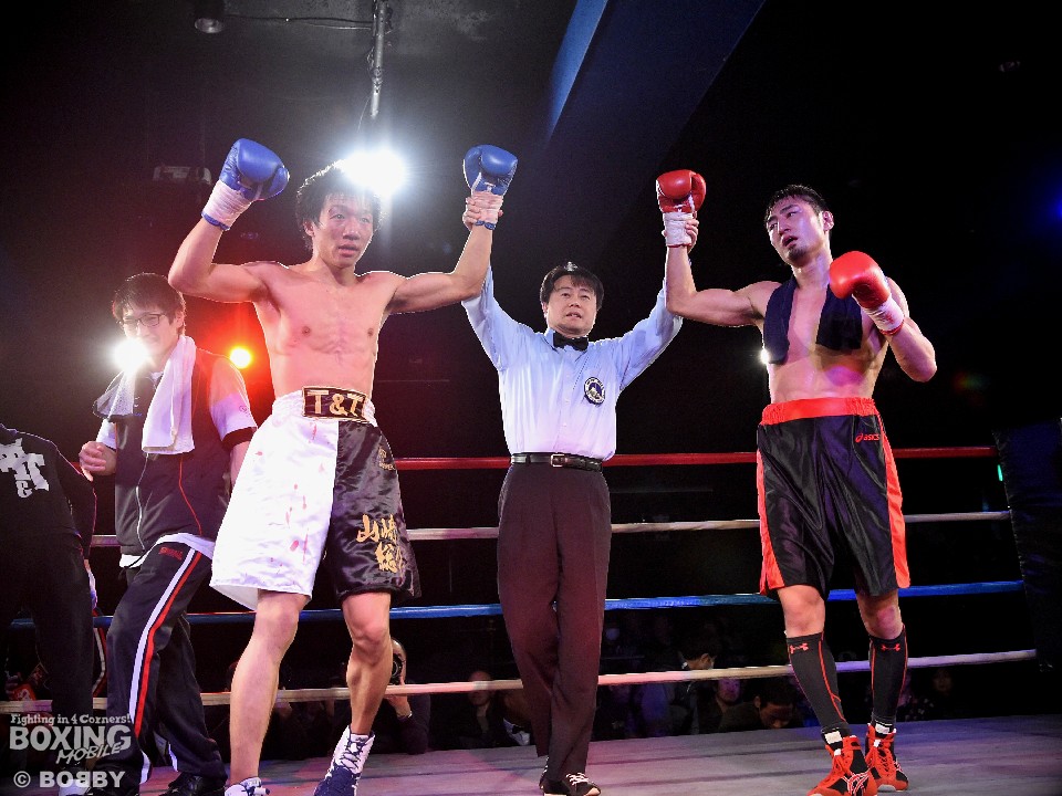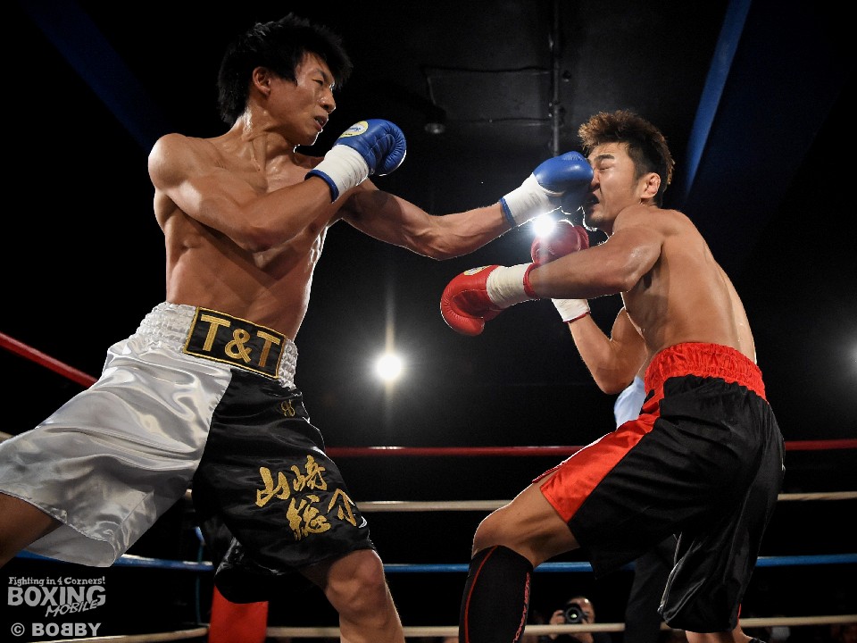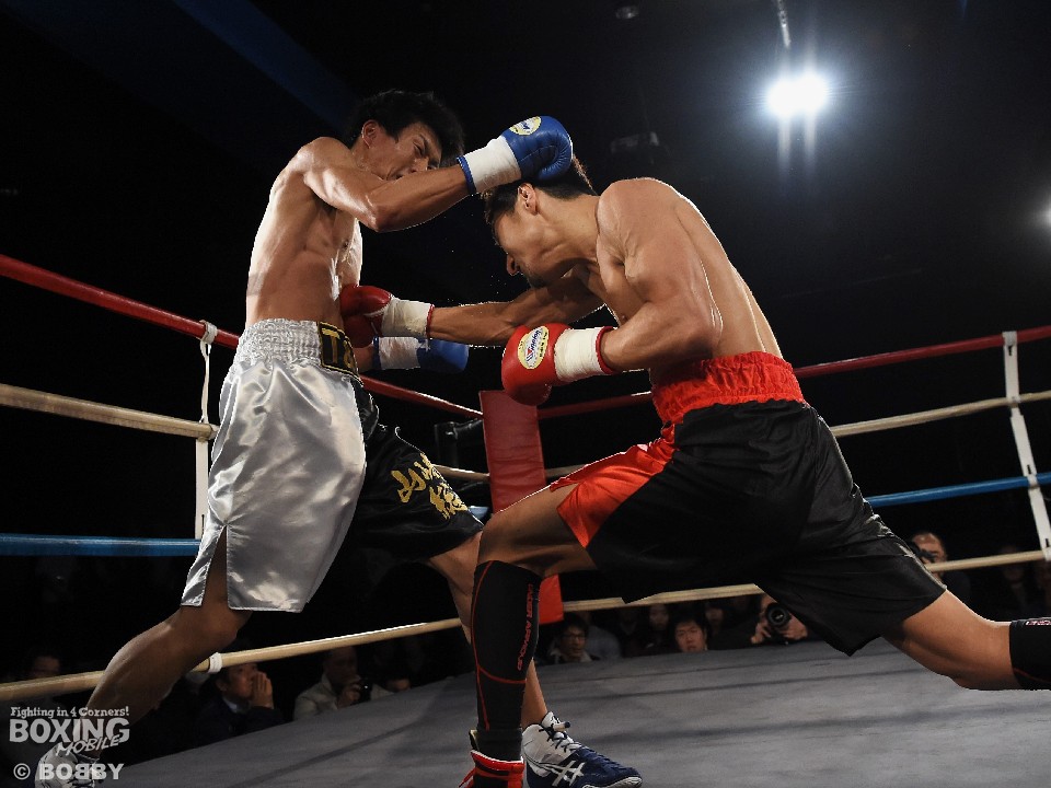 試合:まずは山崎がジャブの差し合いで距離を掴み、藤崎に左フック、右のショートを好打。藤崎もフェイントを混じえてはしつこく距離を詰め接近戦を仕掛けるが、アウトボクシングに徹した山崎をなかなか捉えられず。前半のポイントを落とした。それでも圧力を強めた3回には山崎を強引に押し込みワンツー、ボディと連打。4回も同様に前へ出たが、山崎も下がりながらカウンターの右を当て、それ以上の追い上げは許さなかった。
