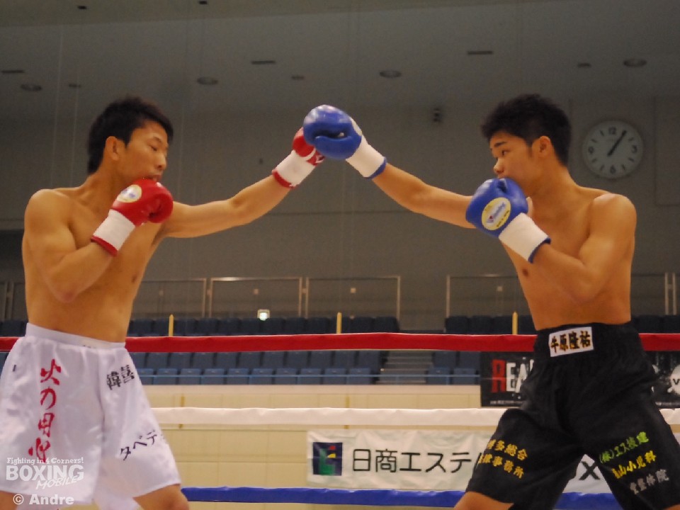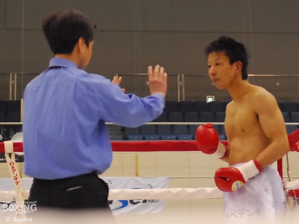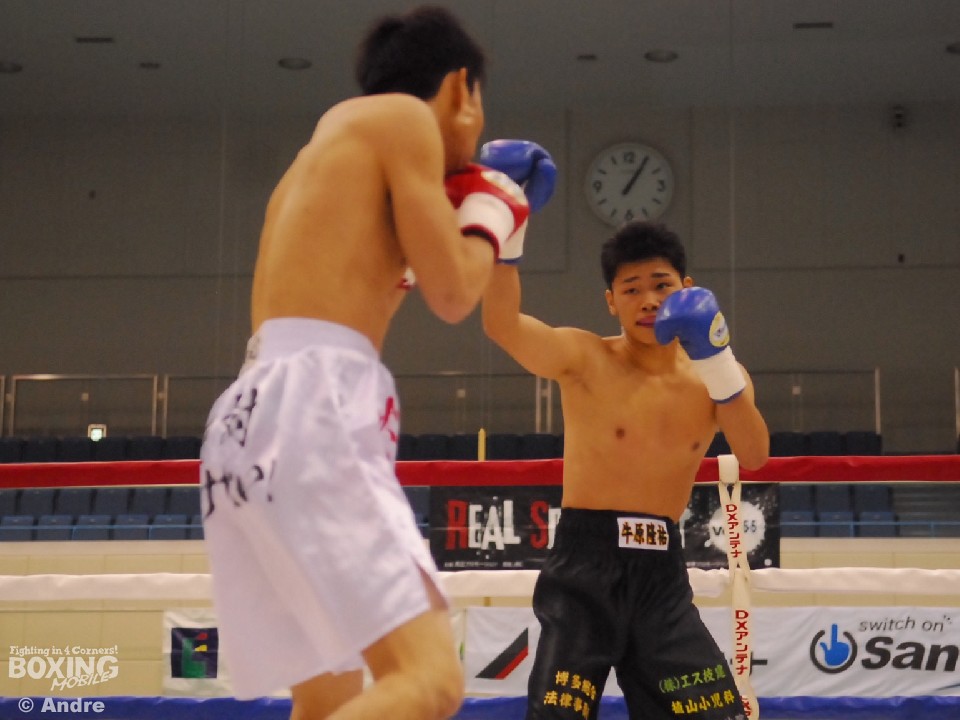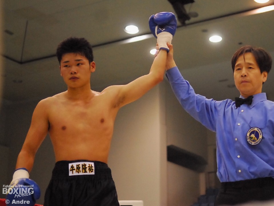 試合: サウスポーの牛原は右ジャブで藤井の出端を抑えると左ストレートを伸ばす。対して、藤井はノーモーションの右を伸ばすと左フックをフォローする。3ラウンド中盤、牛原の左ショートが決まり藤井がダウン。立ち上がった藤井は直後のゴングに救われる。4ラウンドにも右フックでダウンを追加した牛原が判定勝利。
