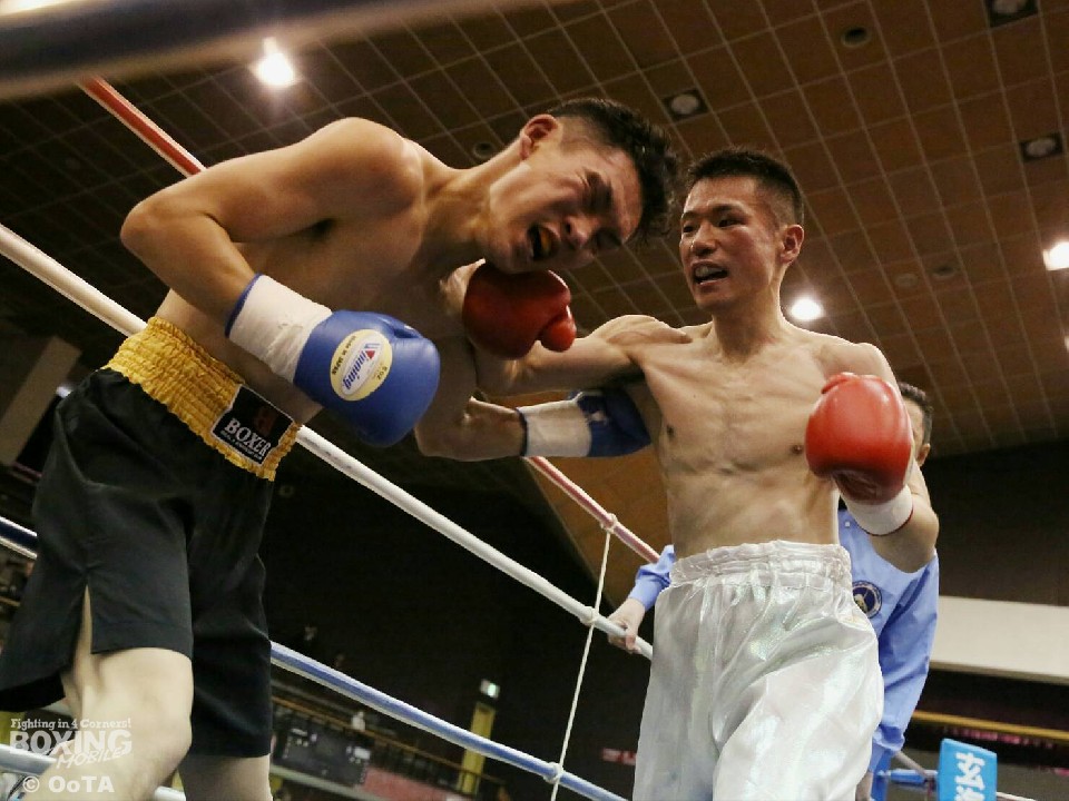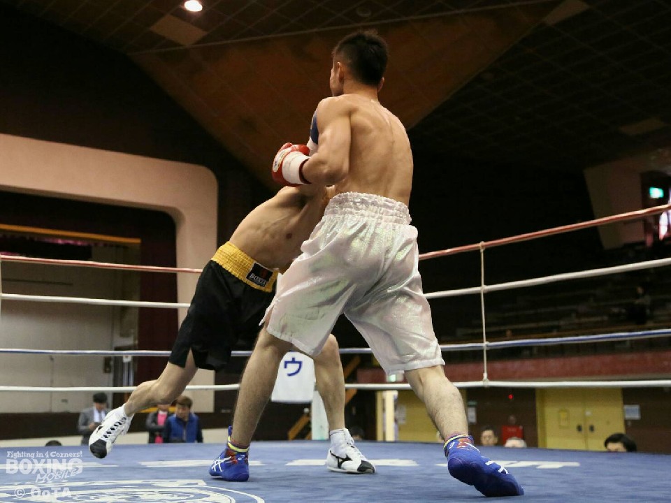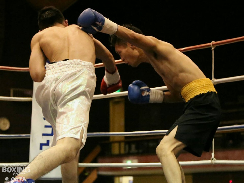 結果:ゴング開始から中島が右を思いきり良く振り抜き、杉山からいきなりダウンを奪う。カバーに追われた杉山だったが、2回からはペースを取り戻すと応戦し激しくパンチを交換。