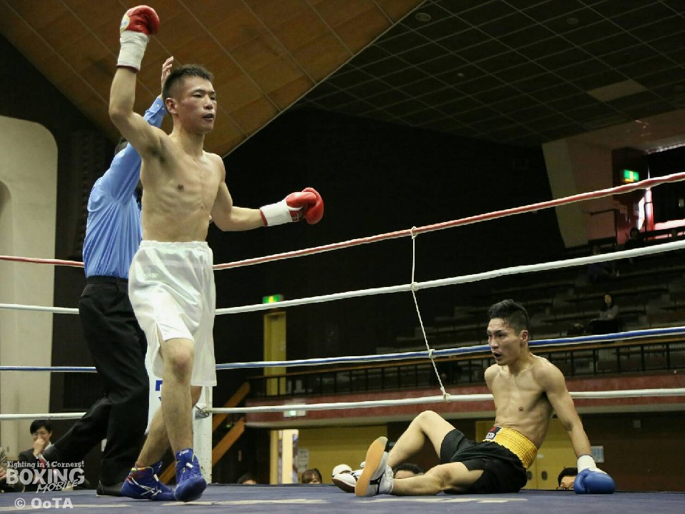 3回にロープに詰めるシーンが増えた杉山が右ストレートでダウンを奪い返すとそのまま詰めきり、コーナーで連打しダウンを追加。レフェリーが試合を止め、逆転TKOで杉山が勝利した。