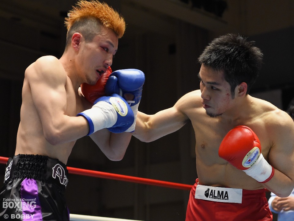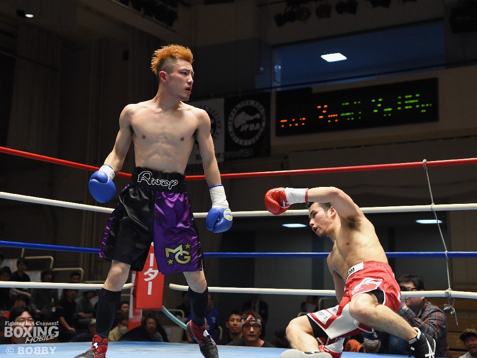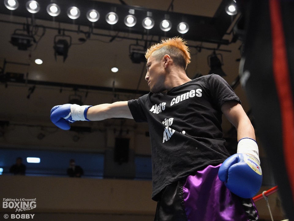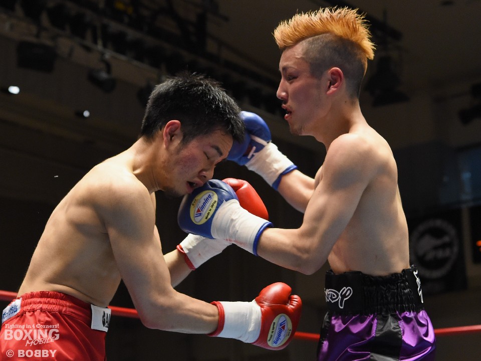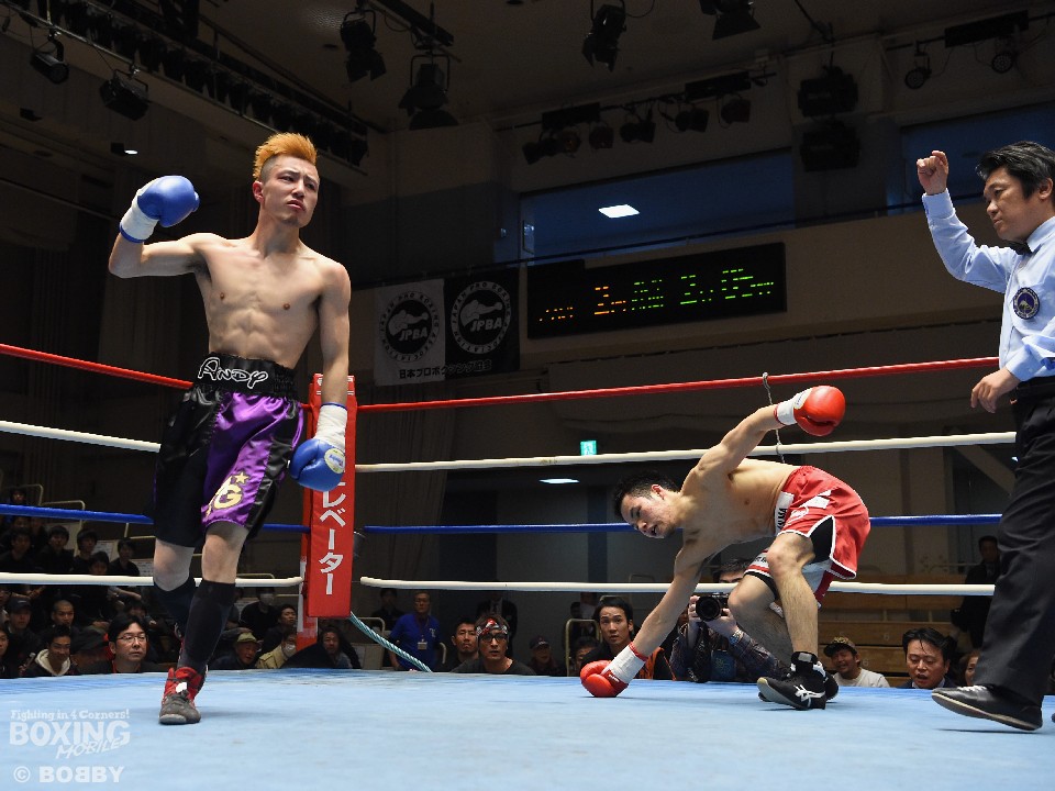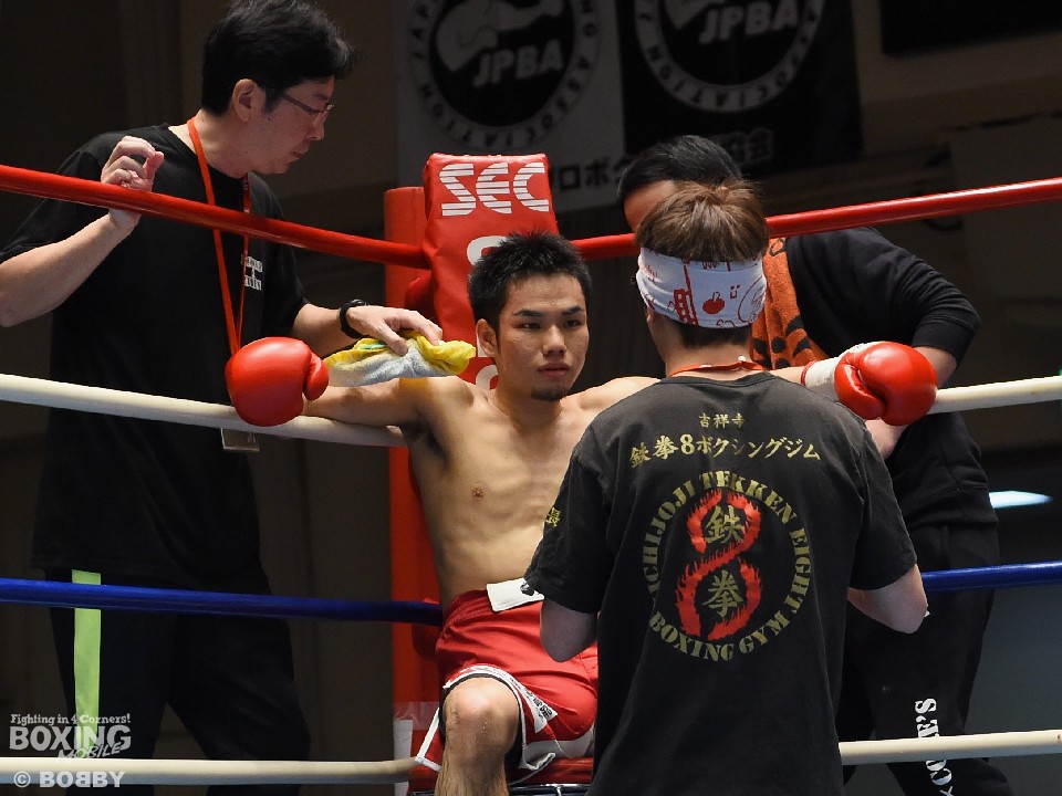 試合:2戦目のアンディがゴングと同時にジャブ、ワンツーでプレスをかけた。デビュー戦の桑島はいきなりの猛攻に戸惑うが、ジャブで立て直すと相手が出てきたところに右アッパー、フック、ストレートで応戦。流れを引き寄せかけたが、2回にアンディの左右フックを浴びダウンした。アンディは再開後も多少の被弾をものともせずにプレッシャーかけ、桑島を追い込んだ。3回は桑島も足を止めて打ち合い、ショートのアッパー、フックと手数、ヒットで上回った。ガード無視のアンディはパンチを受けすぎてしまい、堪りかねたセコンドがタオル投入。桑島がデビュー戦をTKO勝ちで飾った。