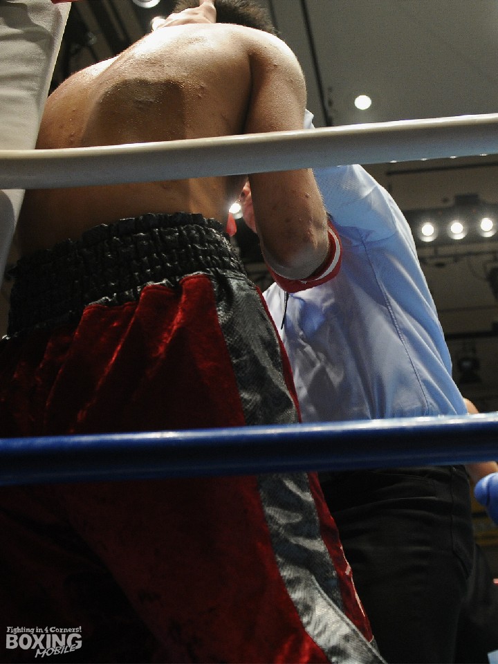 試合:サウスポー同士の一戦は椿が右アッパーから左を振り抜き攻め立てるが、岡田は左カウンターを決めてロープに詰めて連打で攻勢。2回、岡田はガードを固めて距離を詰めて左を当てた。試合を優位に進めた岡田は再三、ロープに追い込んで連打を繰り出すと4回、防戦一方になった椿を見てレフェリーが試合を止めた。
