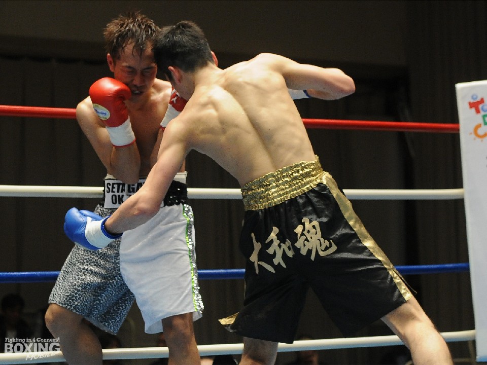 試合:22歳の渡邊と36歳の荻野の対戦。初回、渡邉が圧力をかけてワンツー・左ボディで攻勢。荻野も打ち返すが、パワーの差が出てしまい後退してしまう。2回、渡邊はしつこくボディを叩き体力を削りにかかると、ラウンド終盤にはワンツーを好打した。3回、渡邊が試合を優位に進めると被弾が増えた荻野を見てレフェリーが試合を止めた。