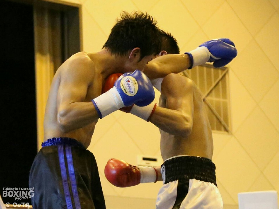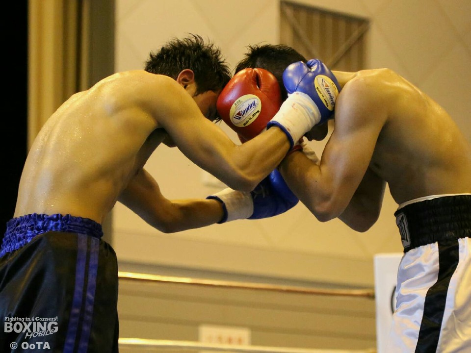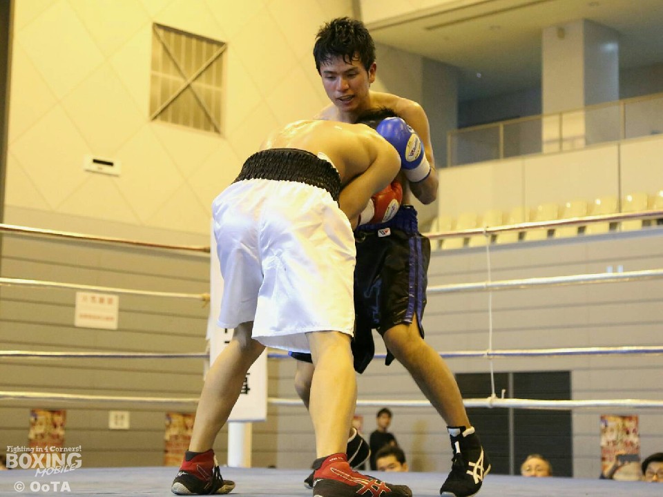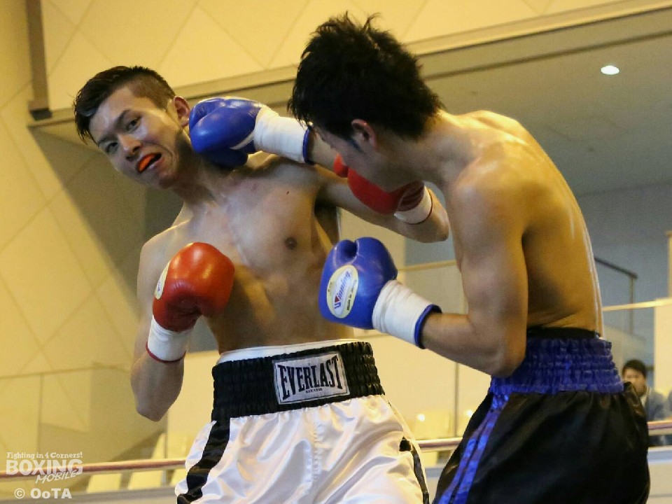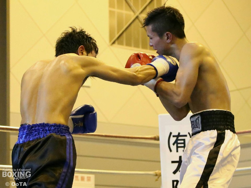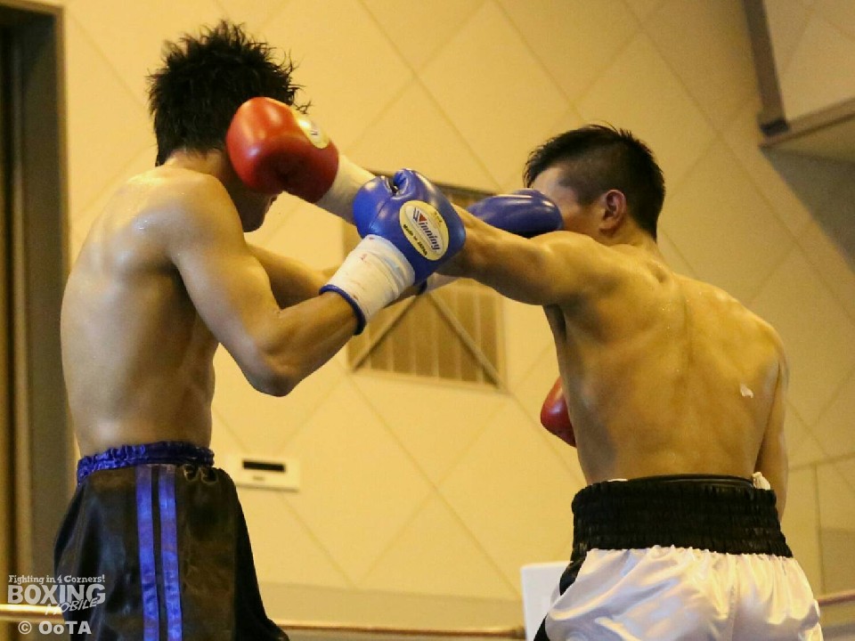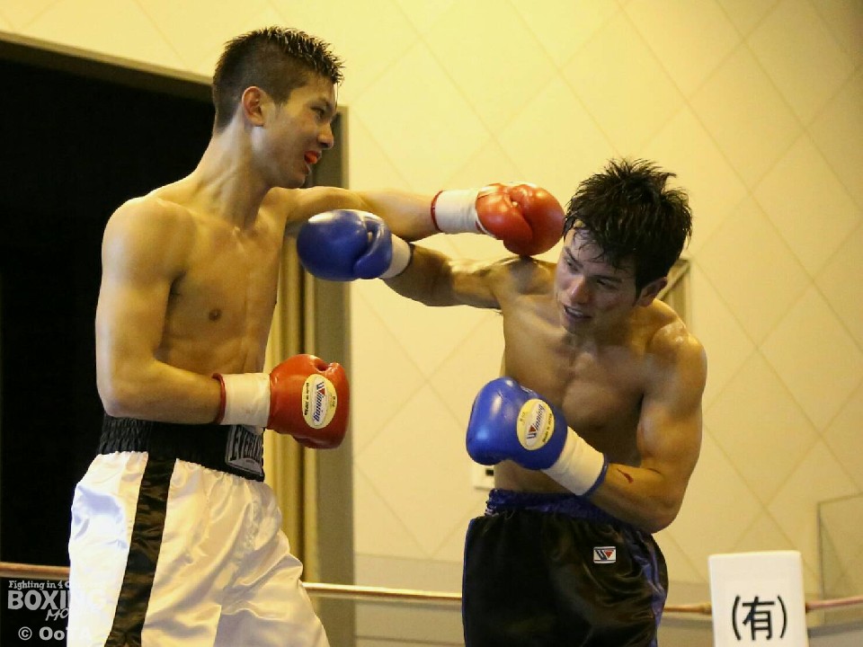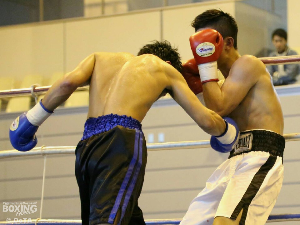 2回にはパワーに勝る星野が一気に連打で詰めにかかるが、富永も懸命にガードを固め右のオーバーハンドとボディを狙って行く。